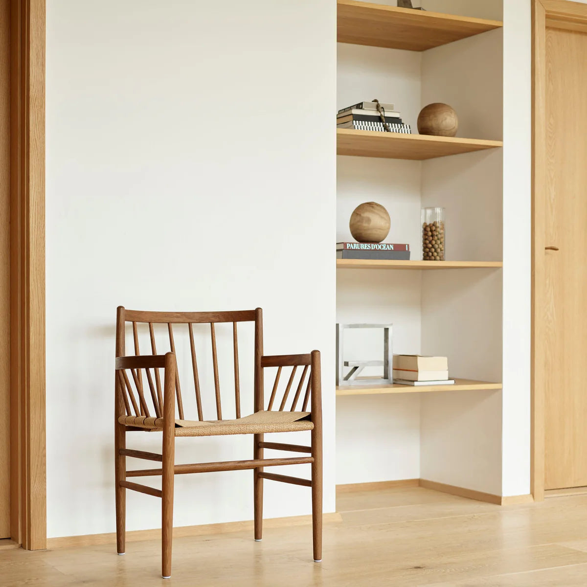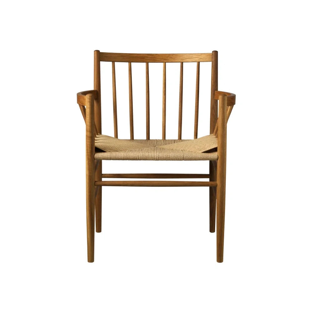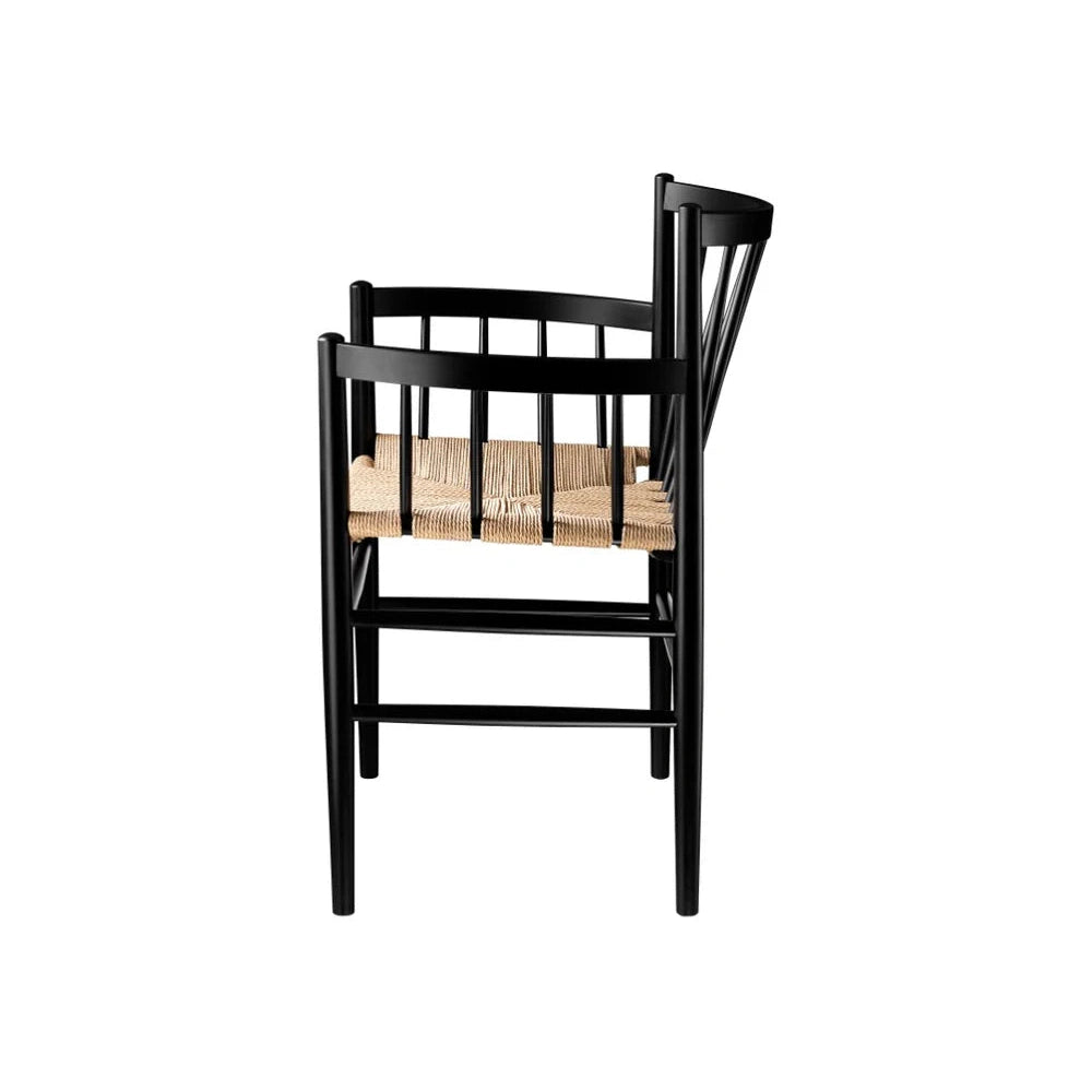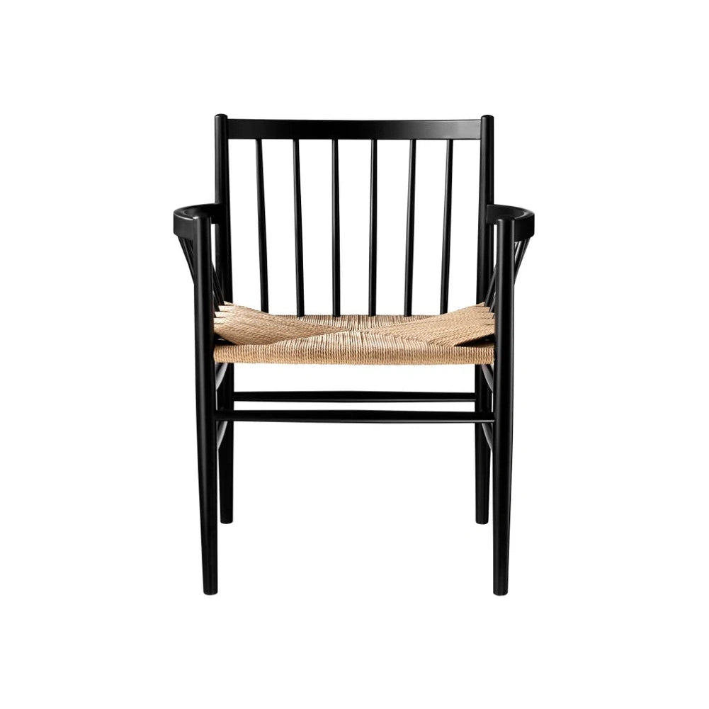 J81 er en klassisk spisebordsstol fra den ikoniske Fletteserien designet av Jørgen Bækmark på 1950-tallet. Denne versjonen, med armlener, er både funksjonell og elegant, og kan brukes som en frittstående stol i ethvert rom. Med sitt tidløse design og utmerkede sittekomfort har J81 overlevd tidens tann og forblir et populært valg for moderne hjem.