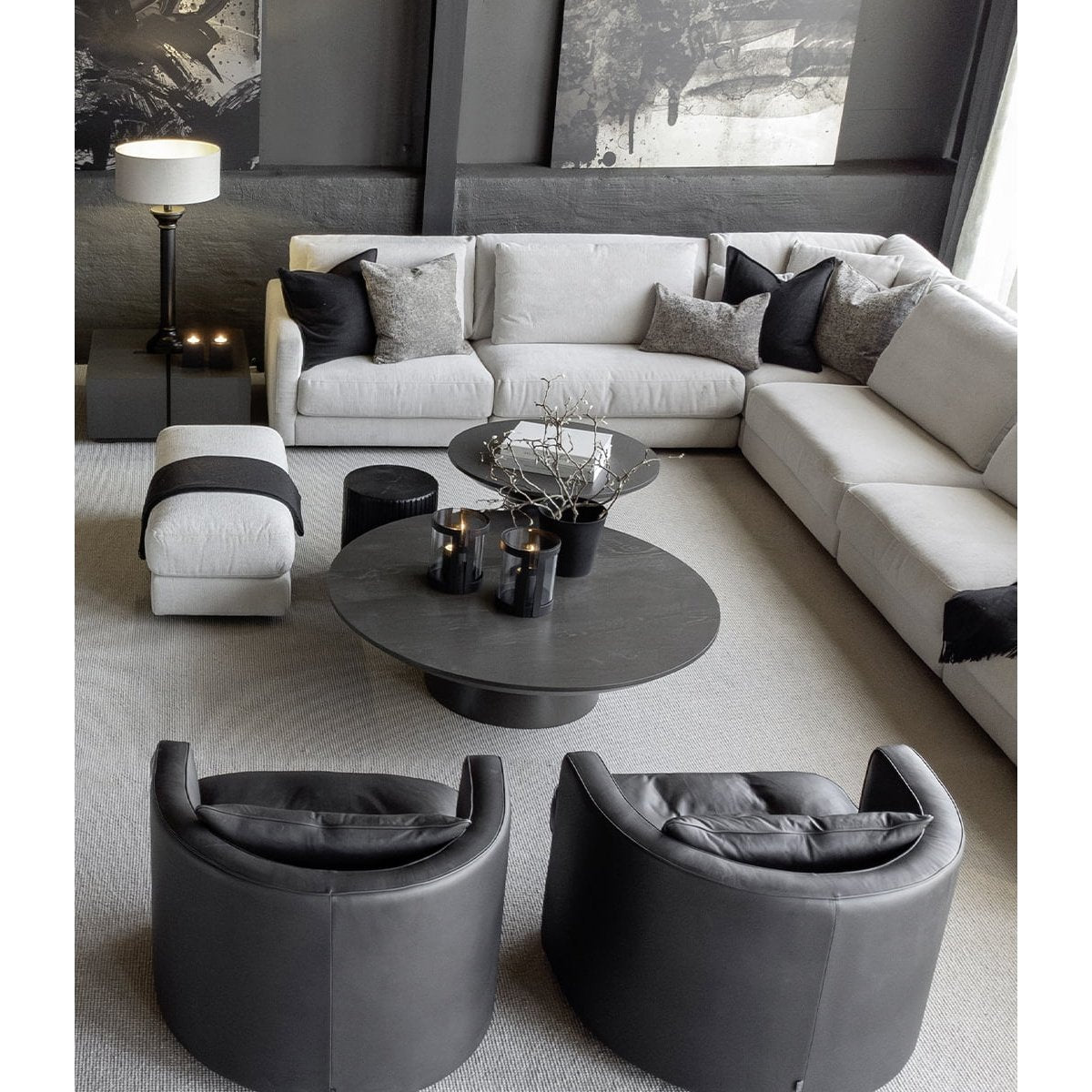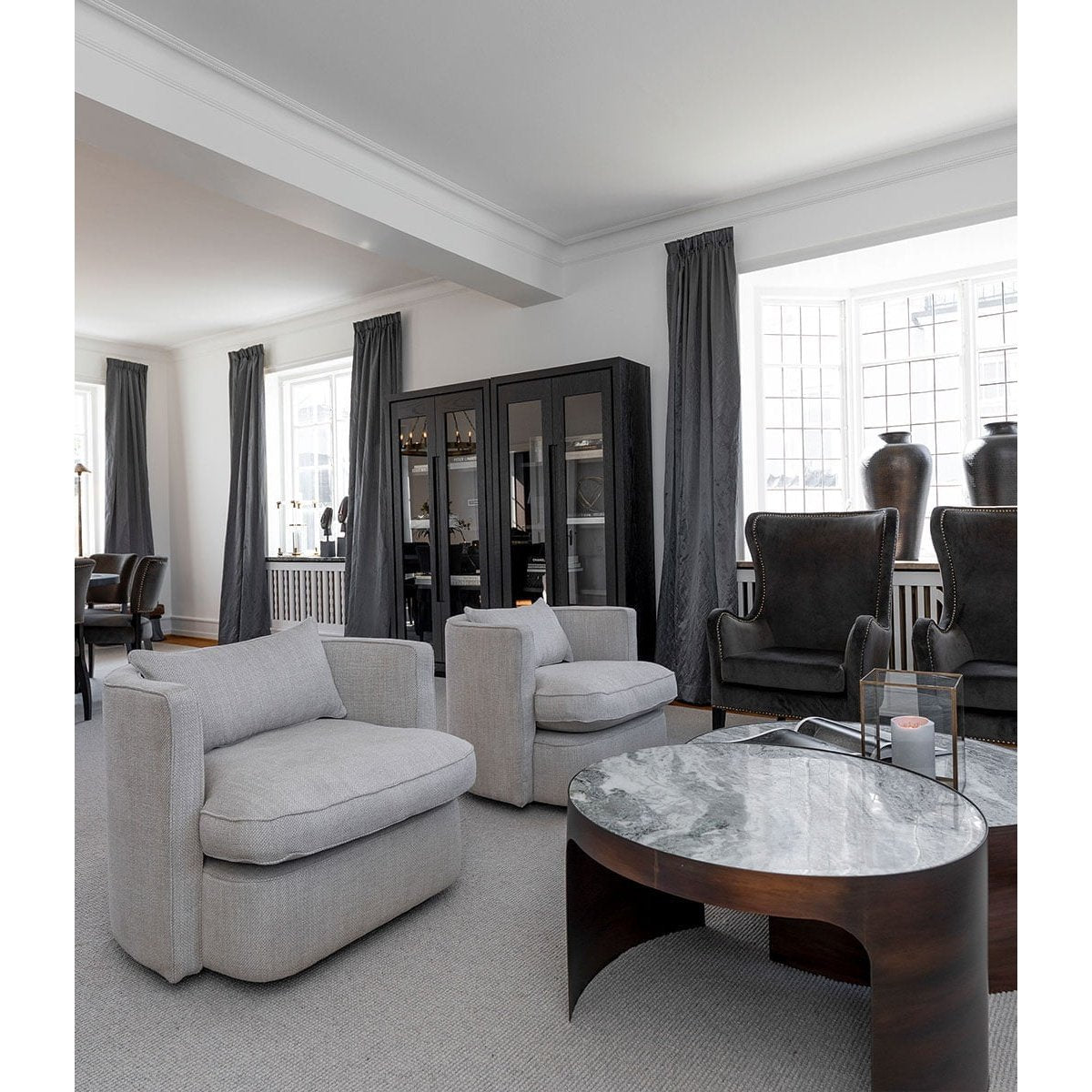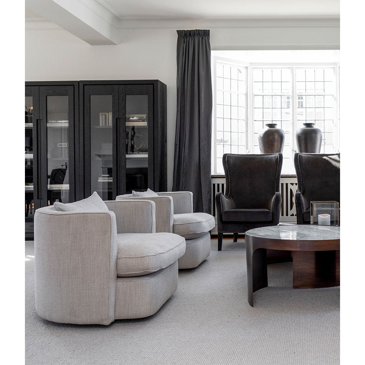 Joan er en svingbar lenestol med høy komfort og elegante former, som enkelt passer inn i ulike interiørstiler. Laget av førsteklasses italiensk og søramerikansk fullkornsskinn, tilbyr den en myk og behagelig sitteopplevelse. Stolen har en solid base av svart metall, med ramme i massivt tre og kryssfiner, og er designet for langvarig bruk. Opplev stil og komfort med Joan.