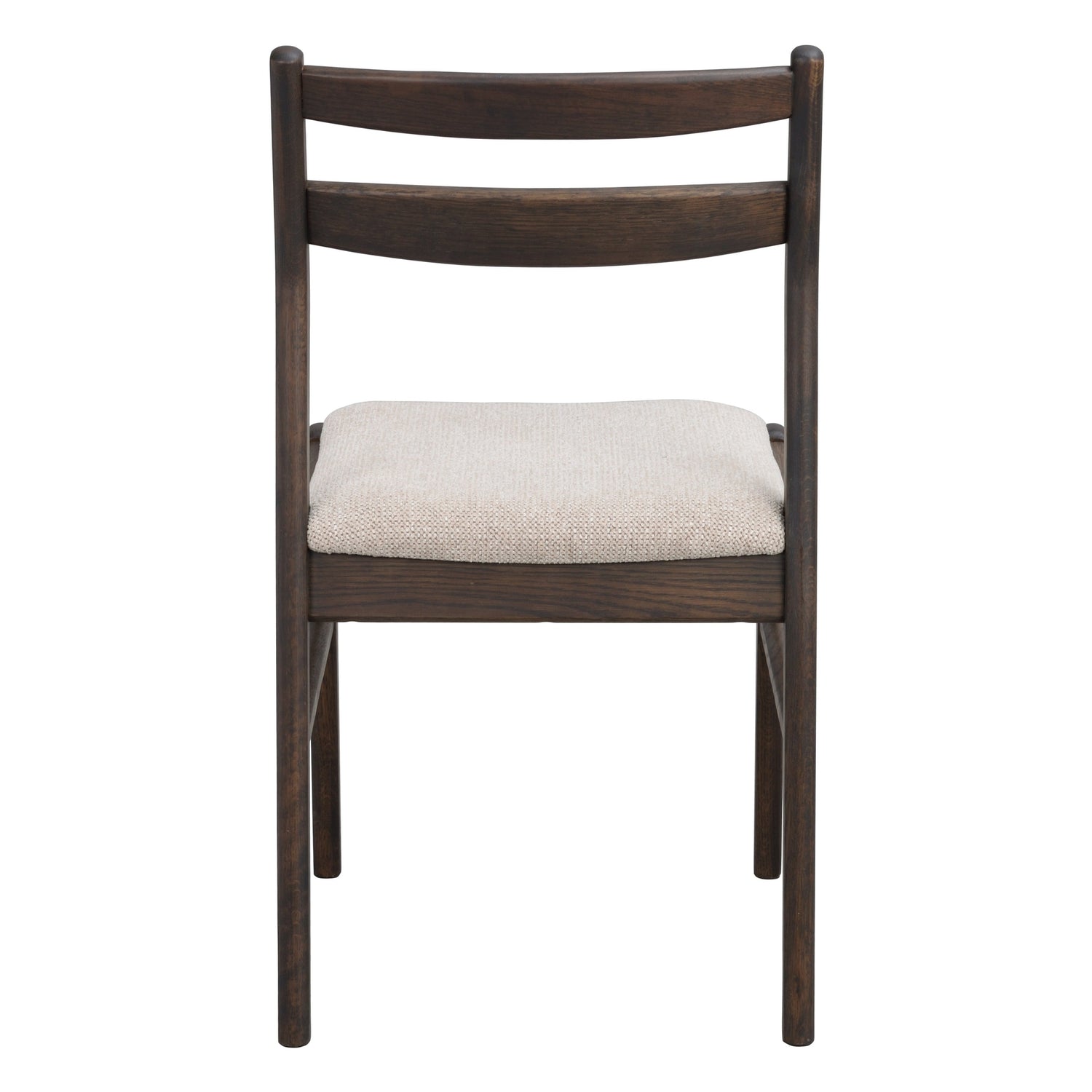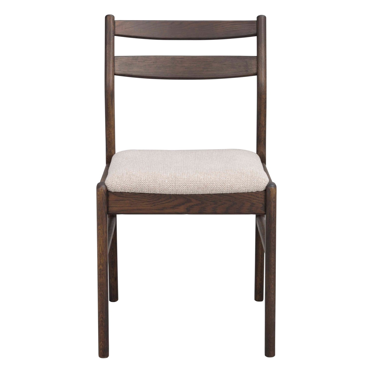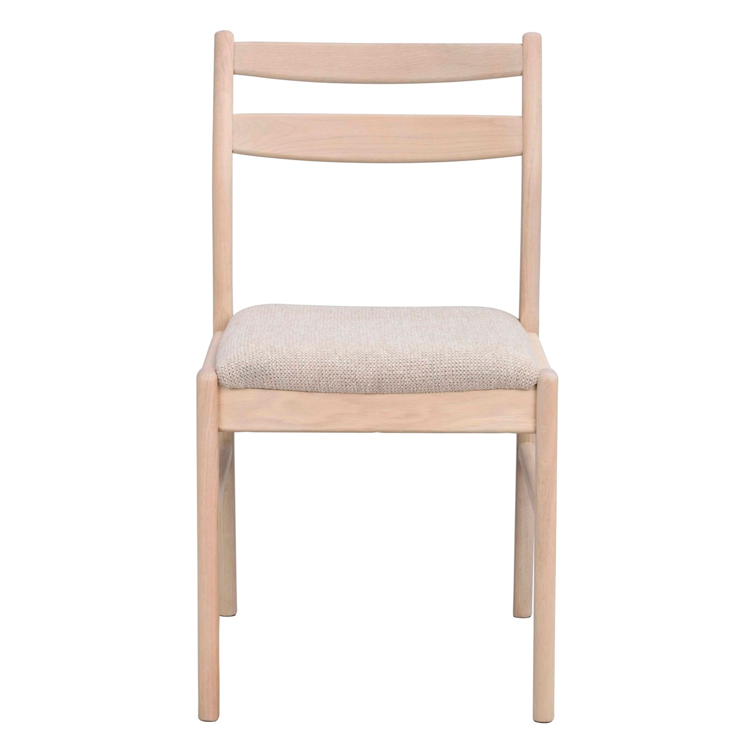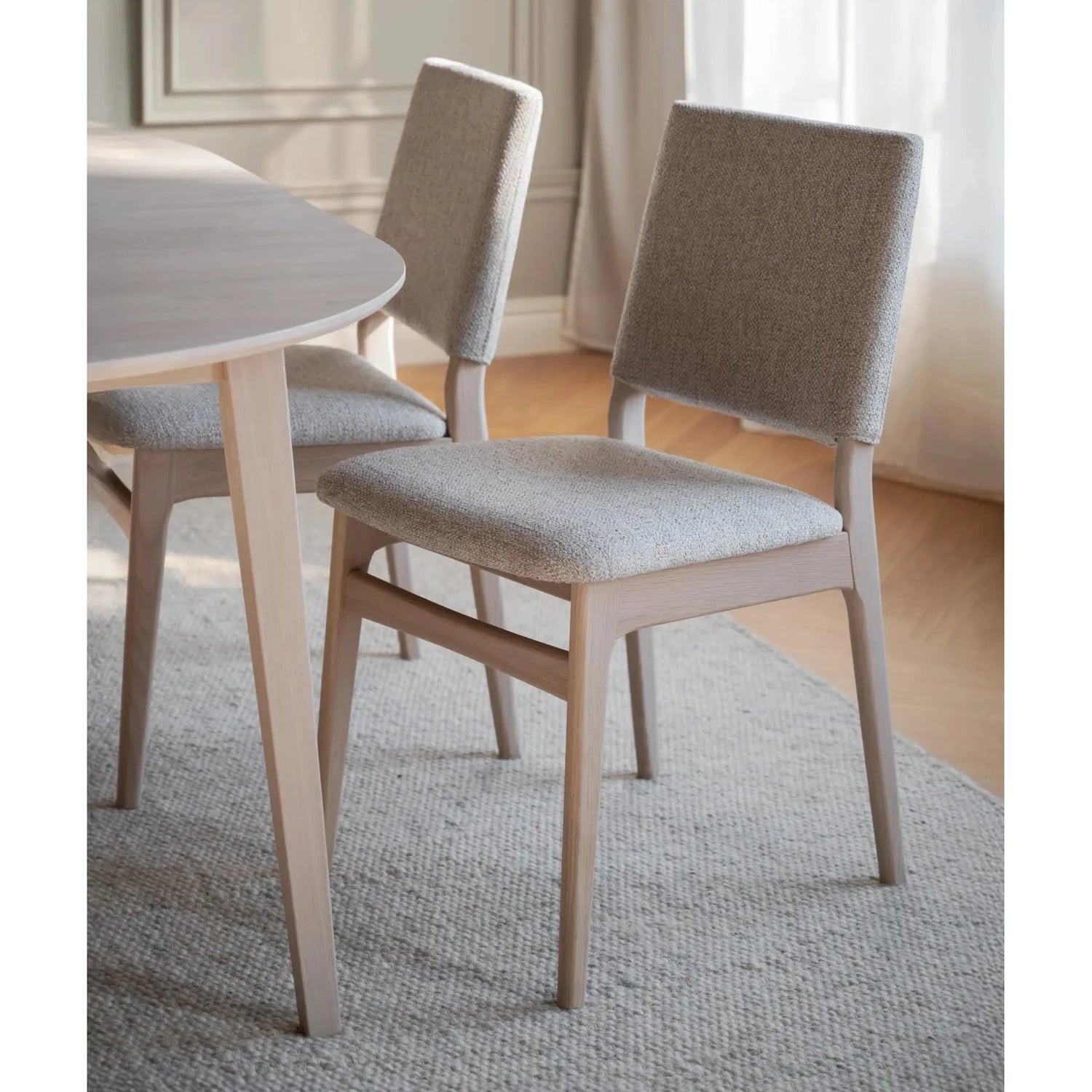 Setet er trukket i slitesterkt beige stoff som tilfører tekstur og et sofistikert uttrykk. Den solide konstruksjonen gir stabilitet, mens det smarte designet gjør stolen enkel å montere. Med sine nøye utformede detaljer er Kerwin en moderne klassiker med skandinavisk preg – en spisestol som gir hjemmet ditt karakter og stil.