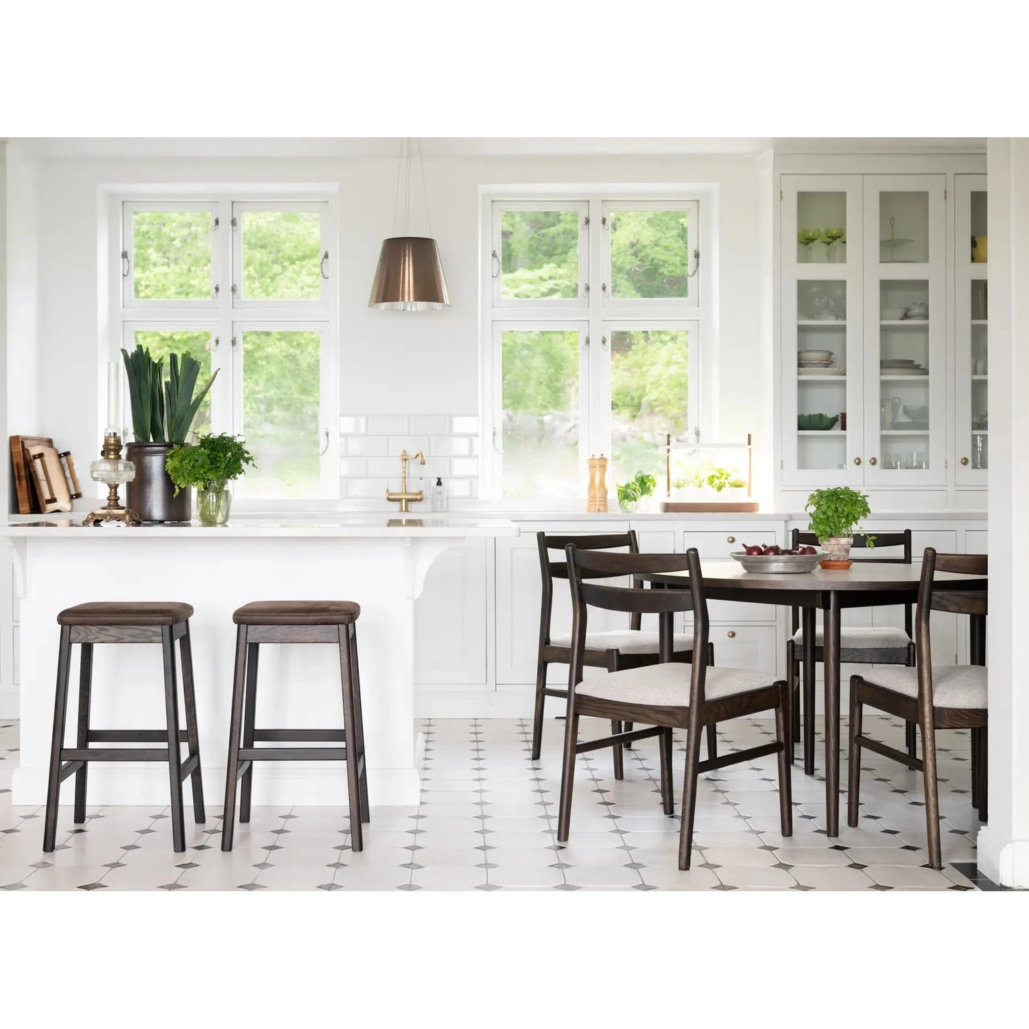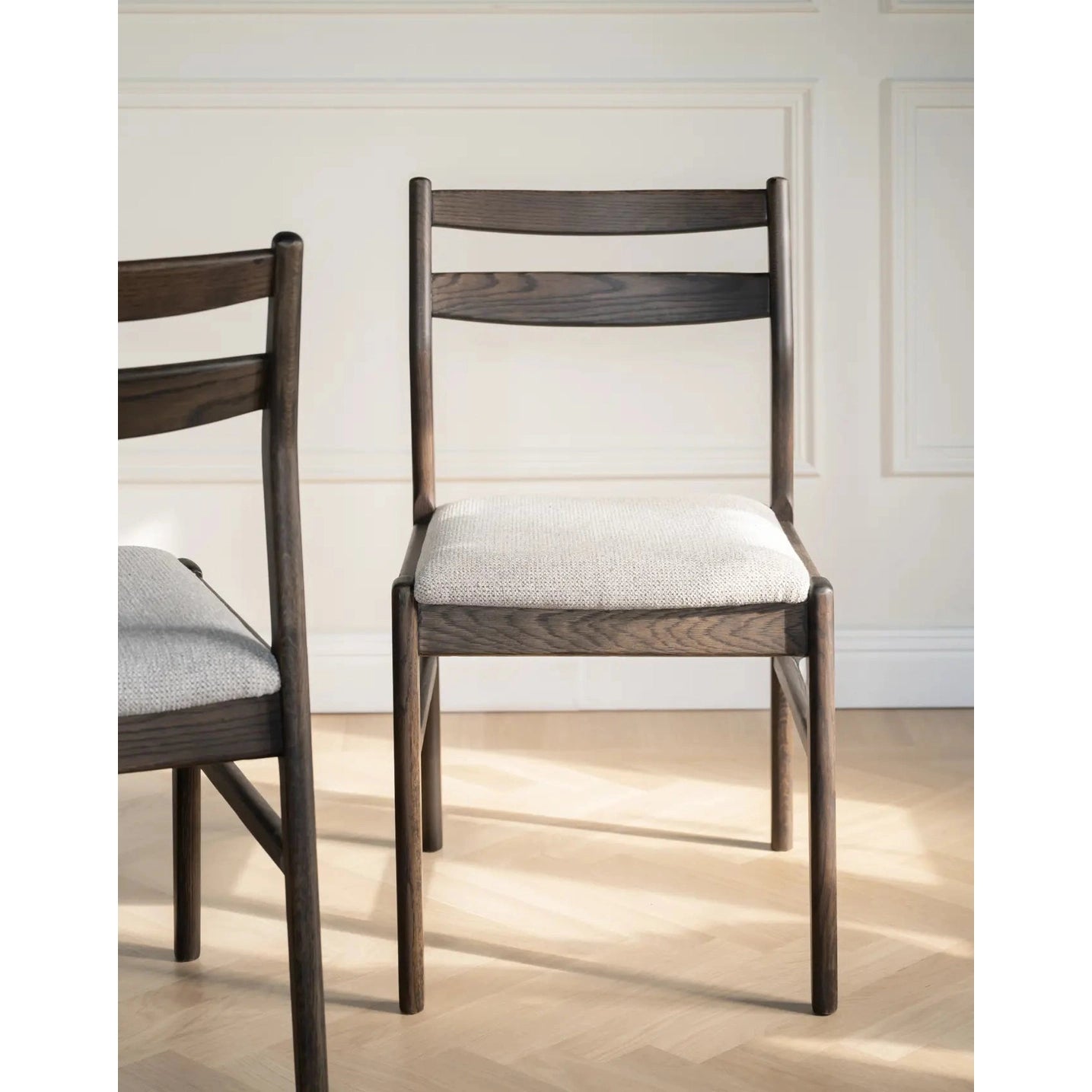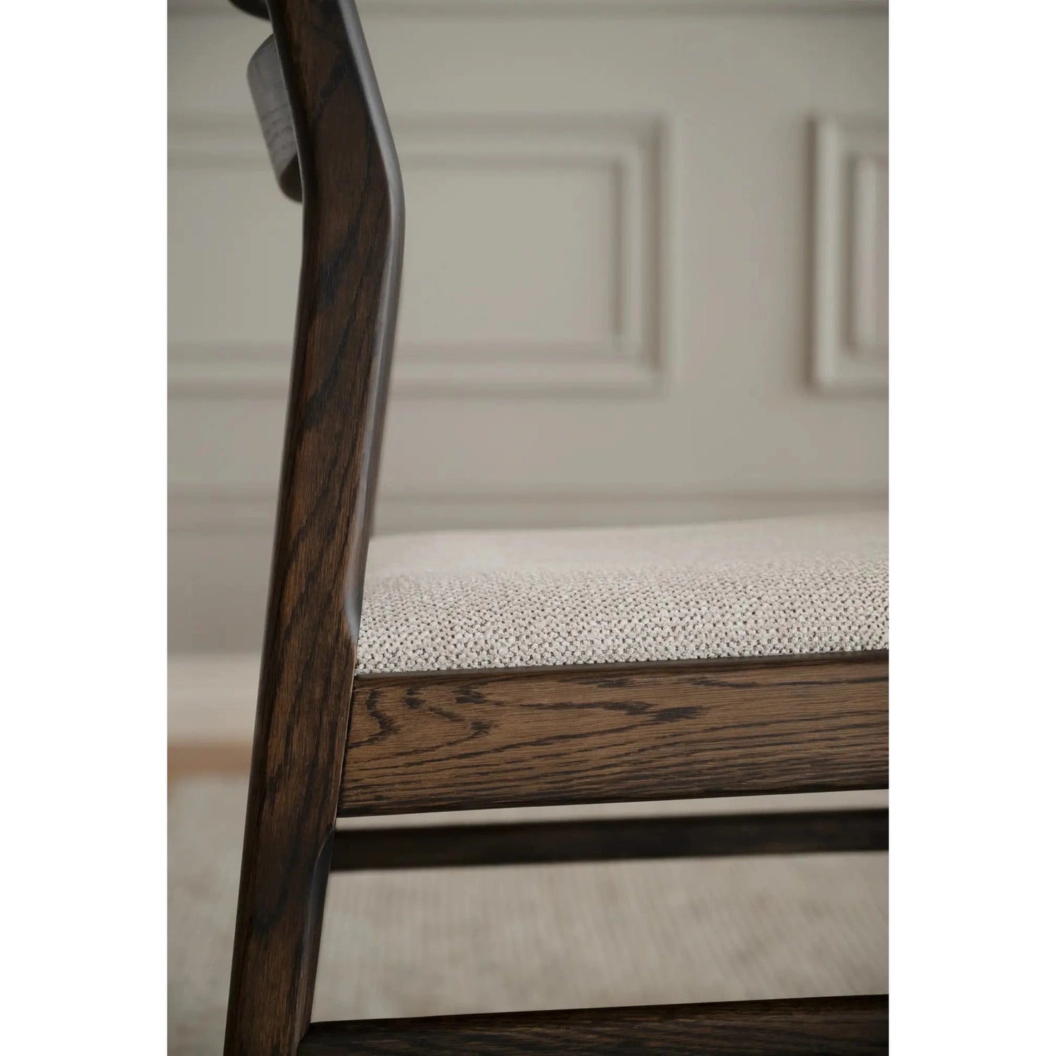 Kerwin spisestol i eik er inspirert av dansk design fra 1950- og 60-tallet, og kombinerer tidløs eleganse med funksjonalitet. Stolen er laget i solid eik med en harmonisk balanse mellom avrundede former og rette linjer, noe som gjør at den passer like godt til runde som rektangulære spisebord. Det gjennomførte håndverket gir stolen et eksklusivt preg, samtidig som den er både praktisk og allsidig i bruk.