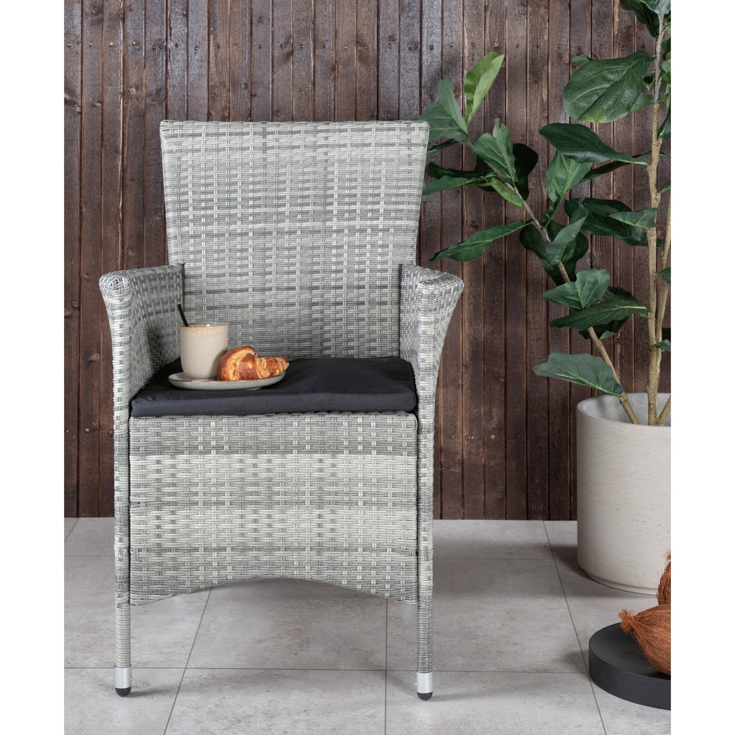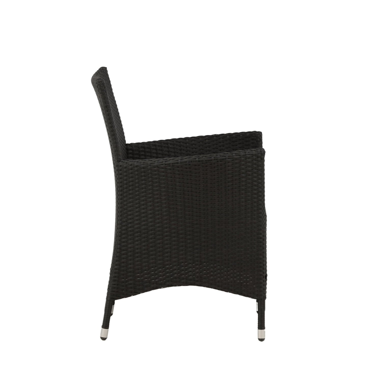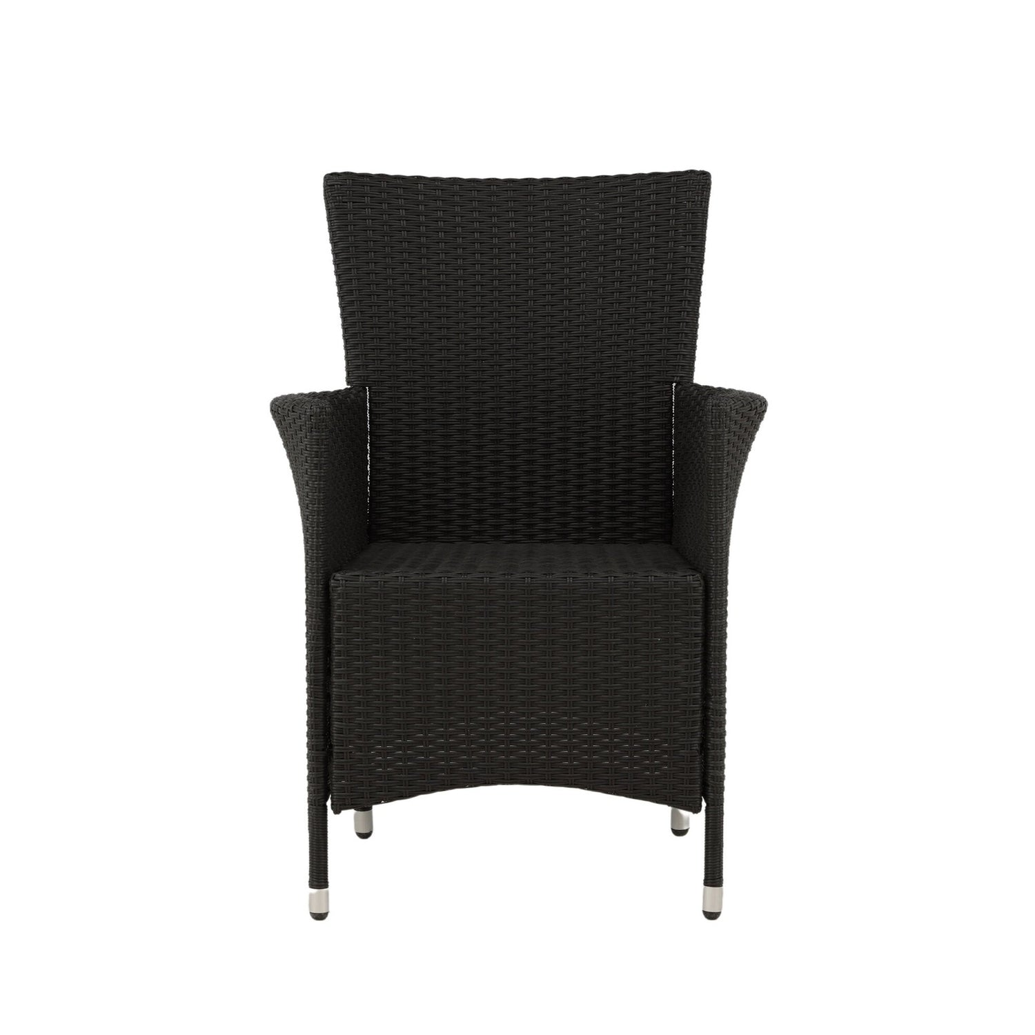 Sitt komfortabelt denne sommeren i våre tidløse stoler fra Knock-serien! En klassisk lenestol i svart kunstrotting - lett å matche og tidløs farge. Her får du virkelig en robust stol som du sitter komfortabelt i i flere timer. Utvid middagseinvitasjonene og nyt varme kvelder med venner i en hyggelig matgruppe, supplere stolen med et av våre stilige spisebord for utendørs bruk. Stolen er stablerbar.
