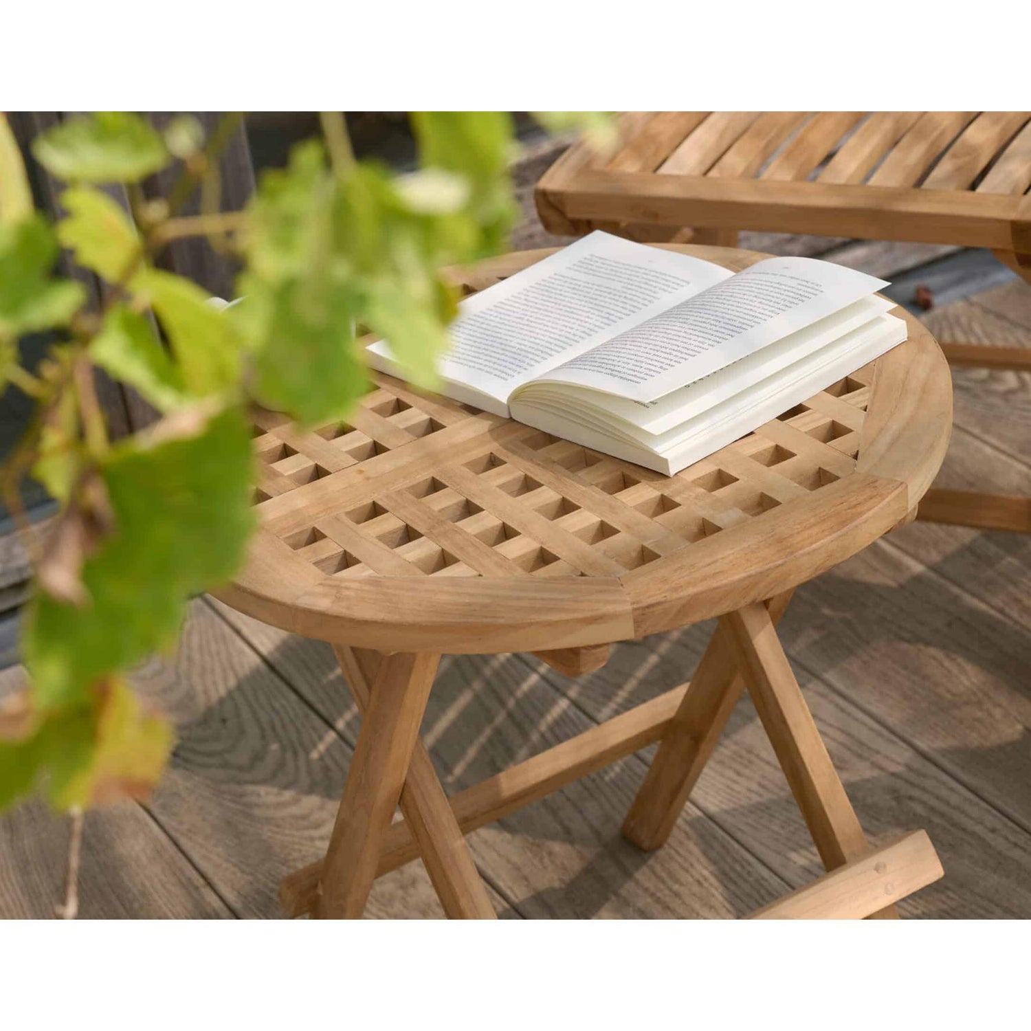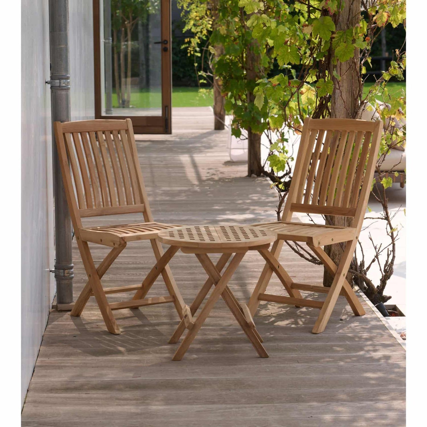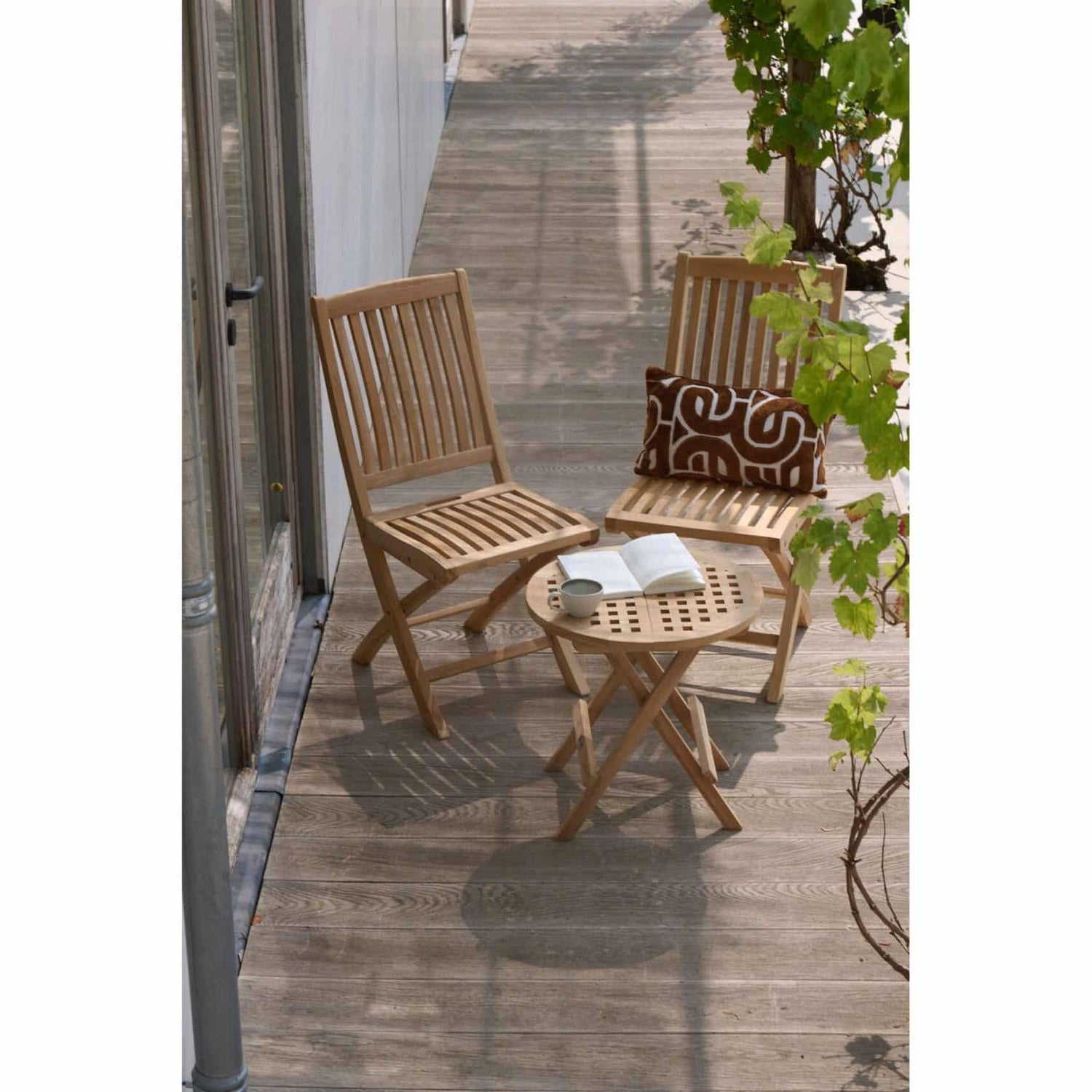Sammenleggbar stol i teak. Gjør seg godt som spisestol eller i et lite kafésett med to stoler og bord, for eksempel Fredrikshavn bistrobord. Teaken er sertifisert og kommer fra godkjente plantasjer i Indonesia.