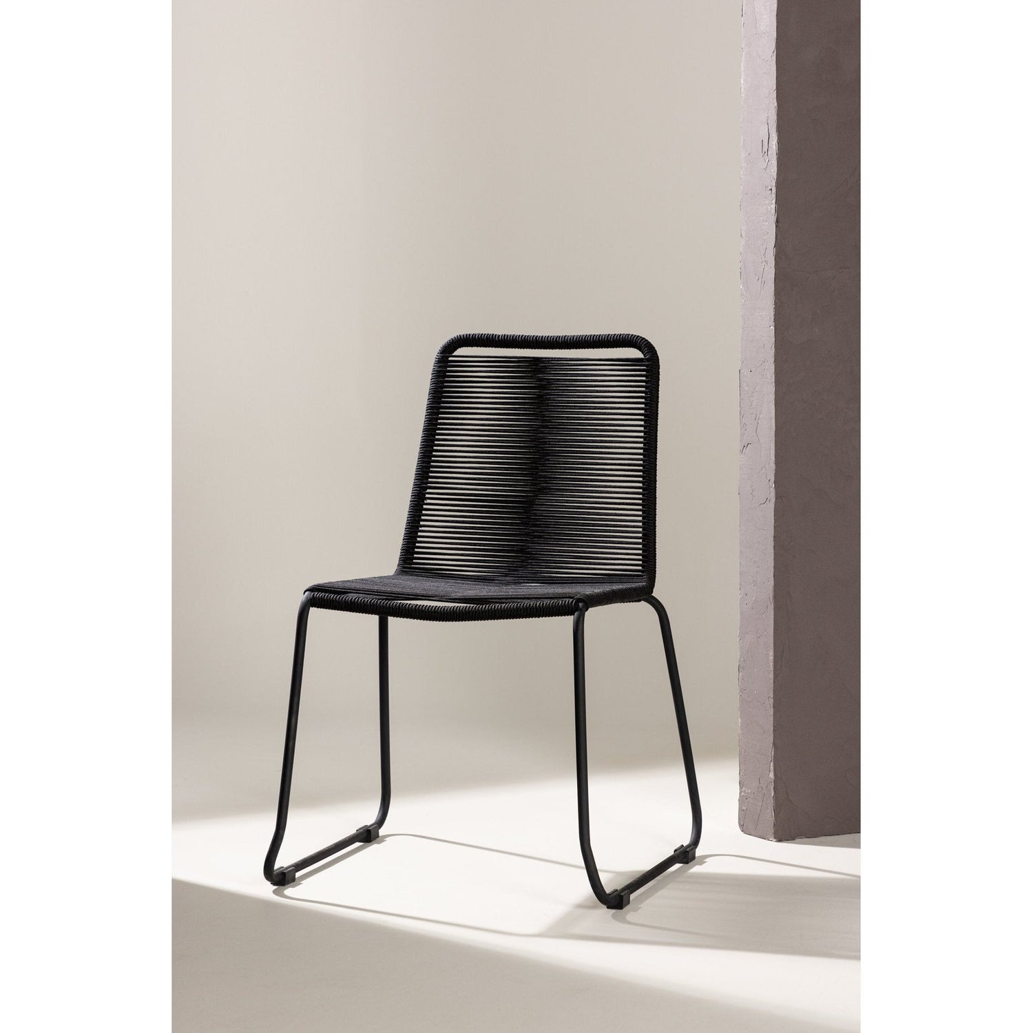Holdbare materiale i tau og tidløse svarte farger, har den blitt en favoritt i mange husholdninger. Match med et deilig spisebord og nyt måltider utendørs denne sommeren! Stolen er stablebar. Pleieanbefaling: Våre tau er kvalitets -spunnet polyester tau som er lett å rengjøre. Møblene er behandlet for å passere 500-2000 timer. Vi anbefaler såpe og vann for rengjøring. La det lufttørke. For områdene som er vanskeligere å komme til, kan en liten børste brukes forsiktig. Bruk aldri høytrykksvasker eller sterke kjemikalier for å rengjøre tauet.