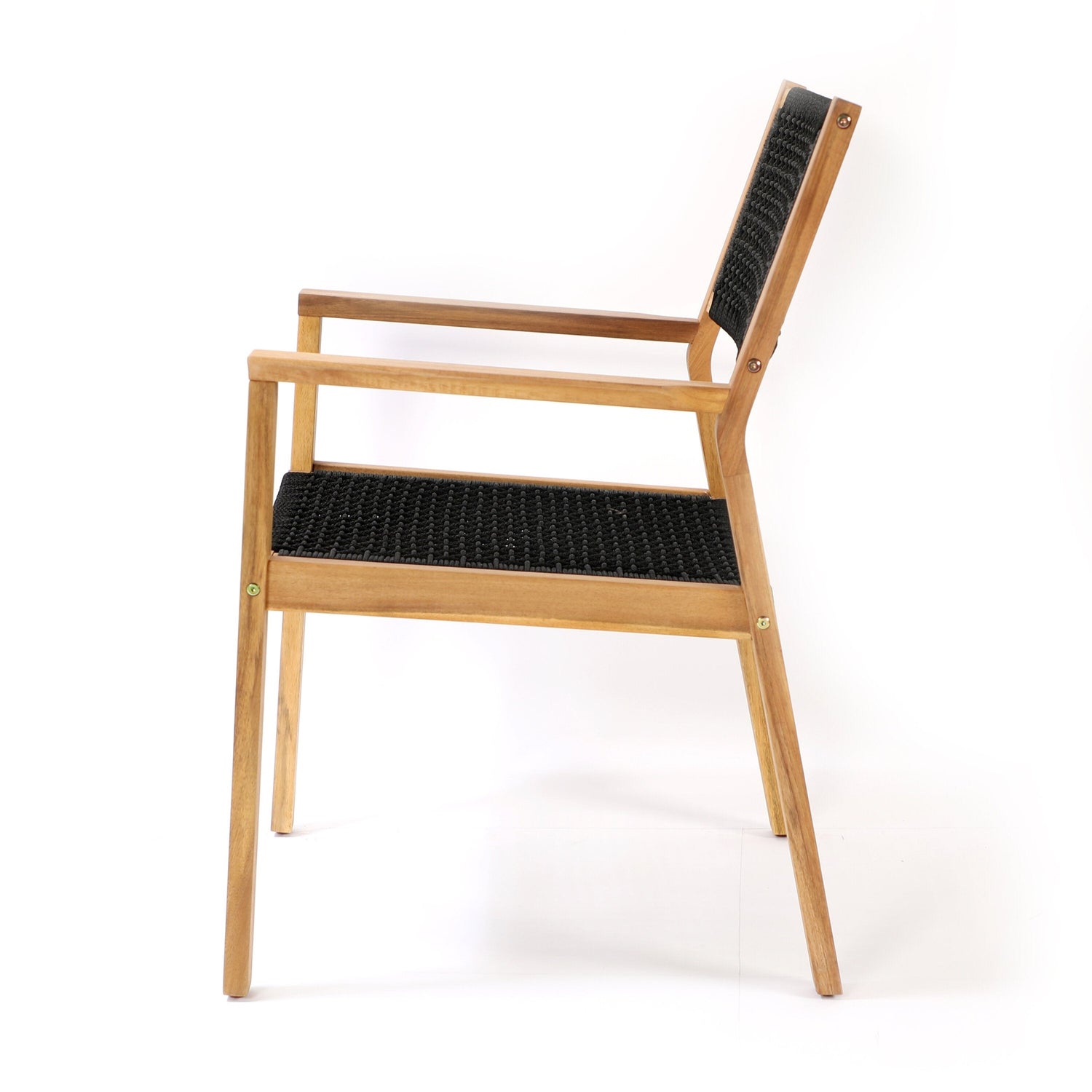 Å matche svart og tre føles bare riktig! Vår Little John-serie spisestol gir deg en robust spisestol med konstruksjon i akasie og sete i slitesterk tau i deilig svart farge. La terrassestolene bli en fin detalj!