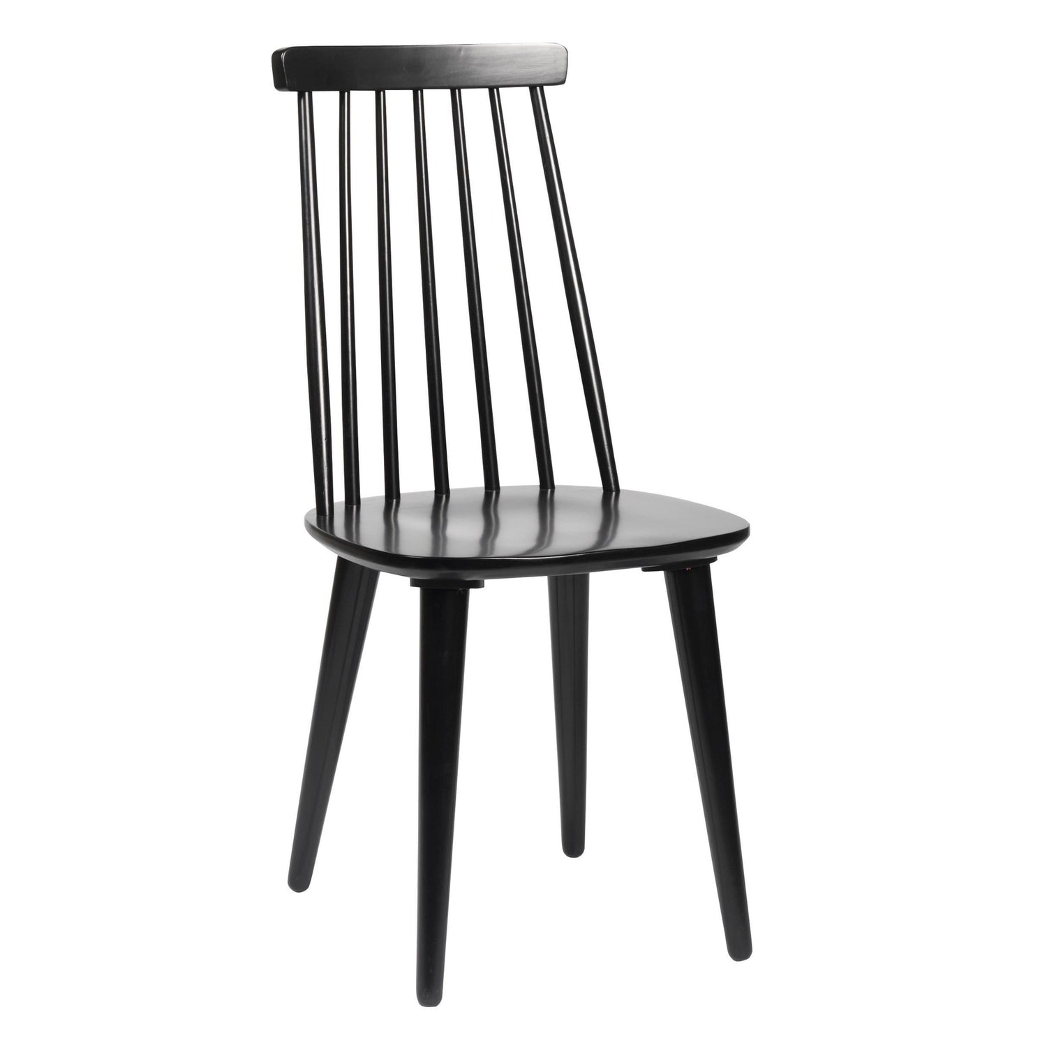 Lotta-stolen i sort lakkert tre er en tidløs klassiker som passer perfekt inn i ethvert hjem. Denne pin-stolen har en solid konstruksjon med fire ben som enkelt kan skrus på for hånd, noe som gjør den både praktisk og brukervennlig. Den lett buede setet gir ekstra komfort, noe som gjør den ideell for både middagsselskap og hverdagsbruk.