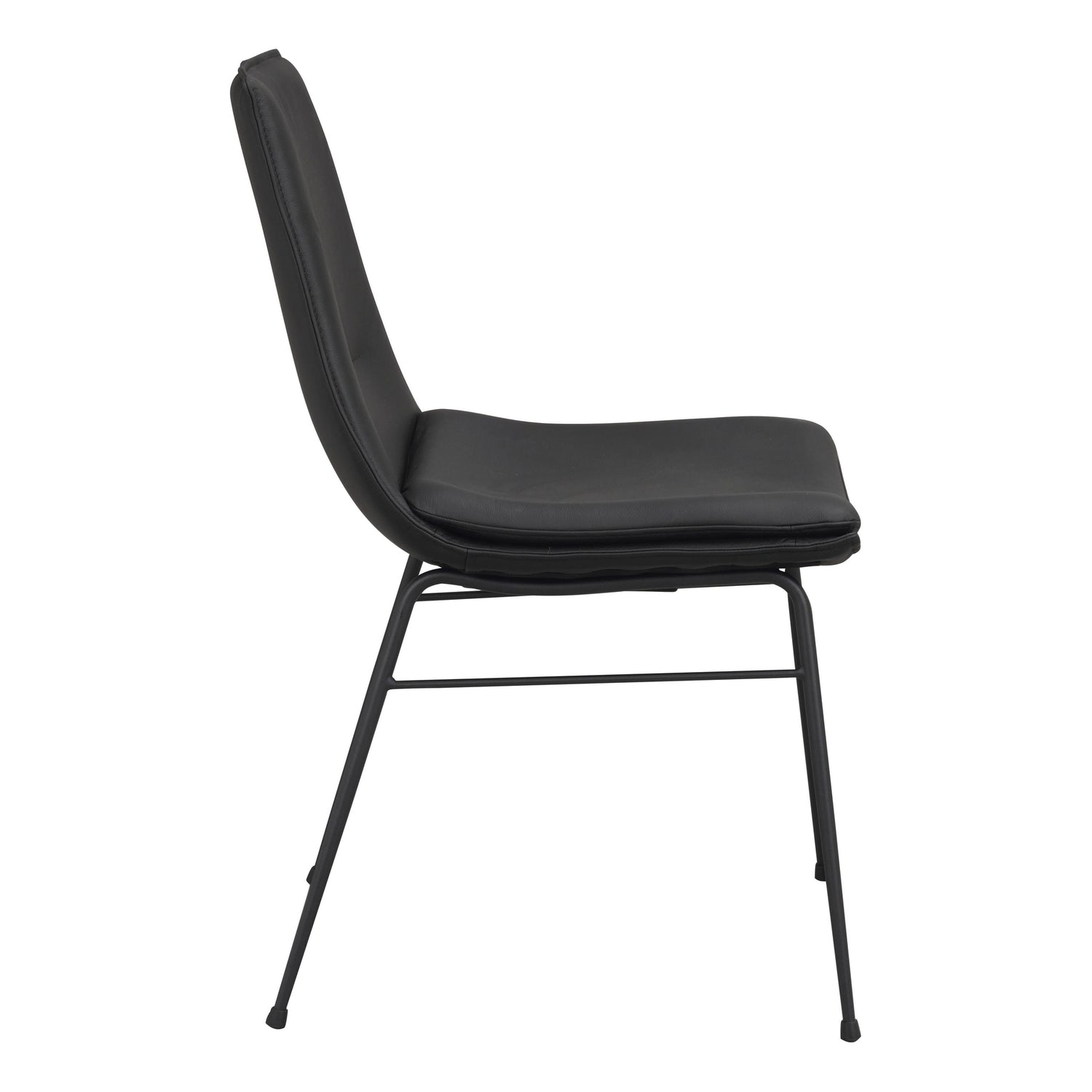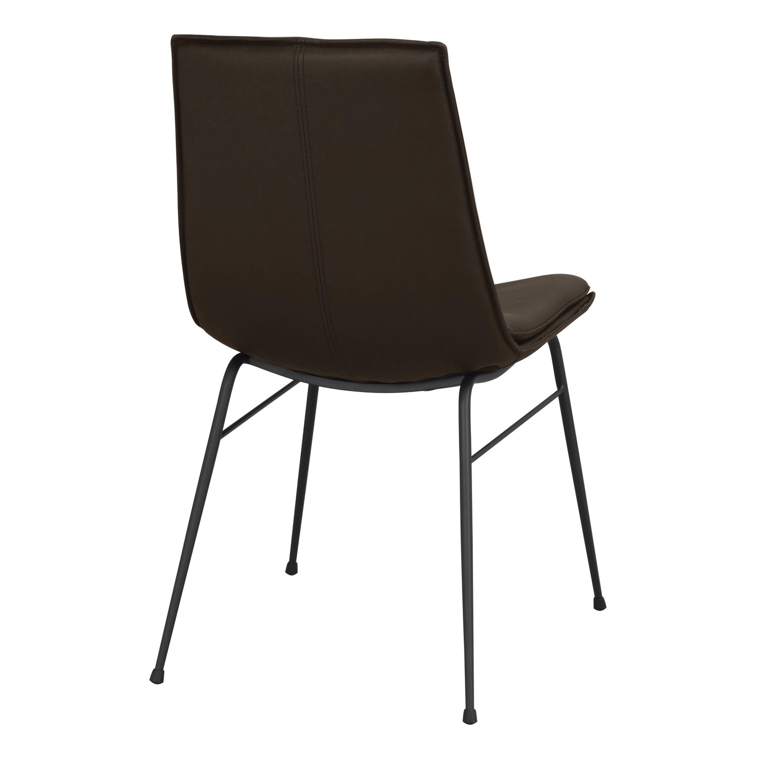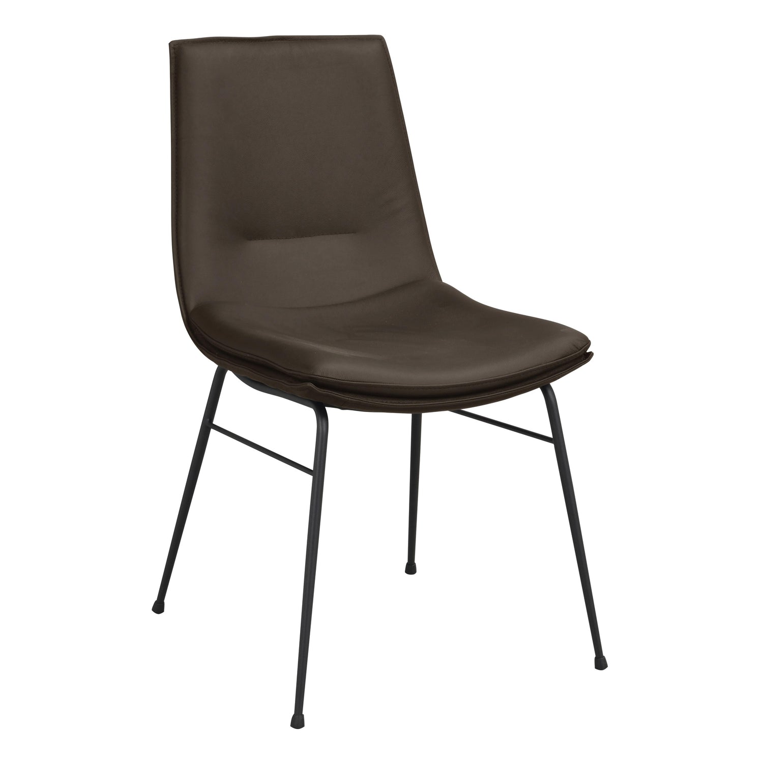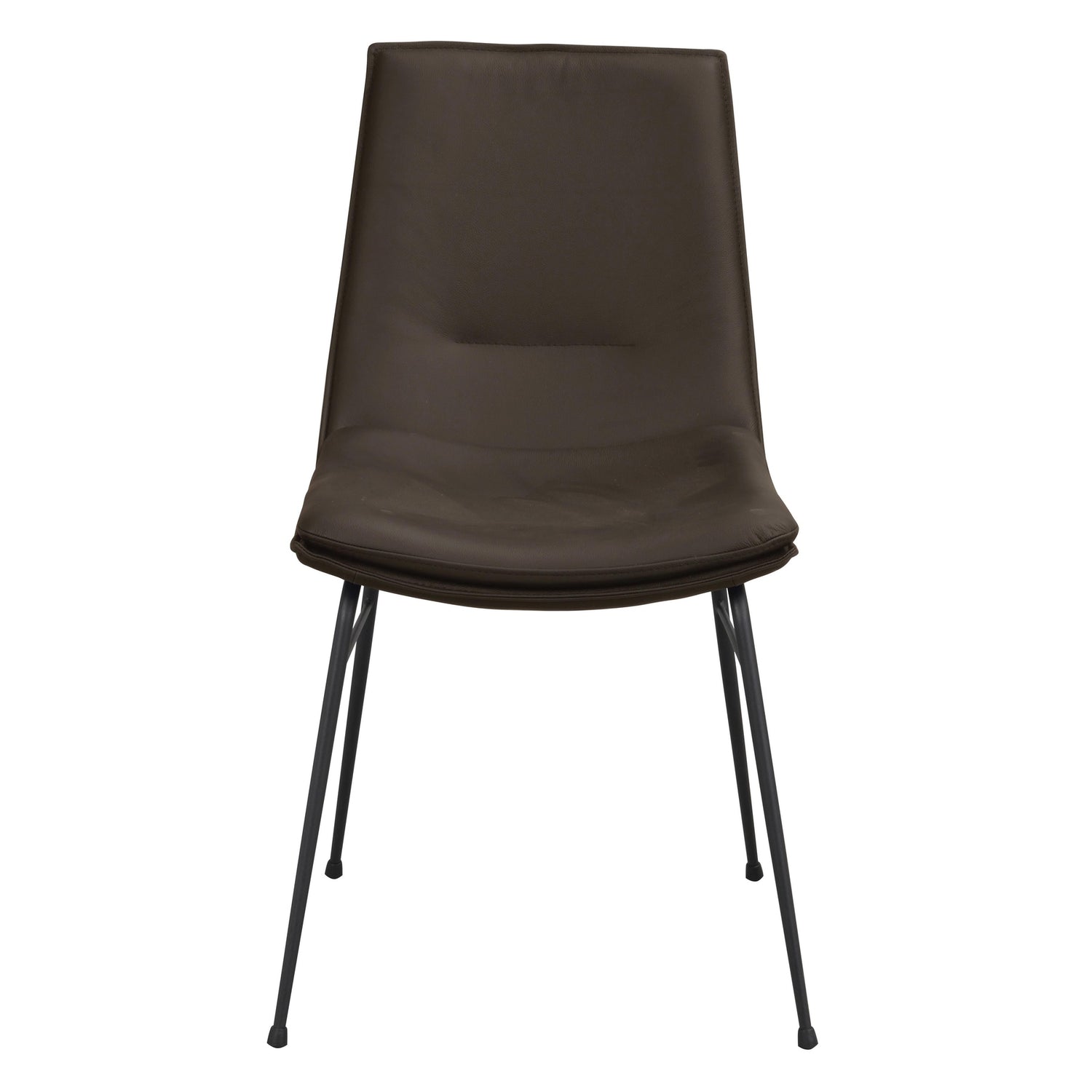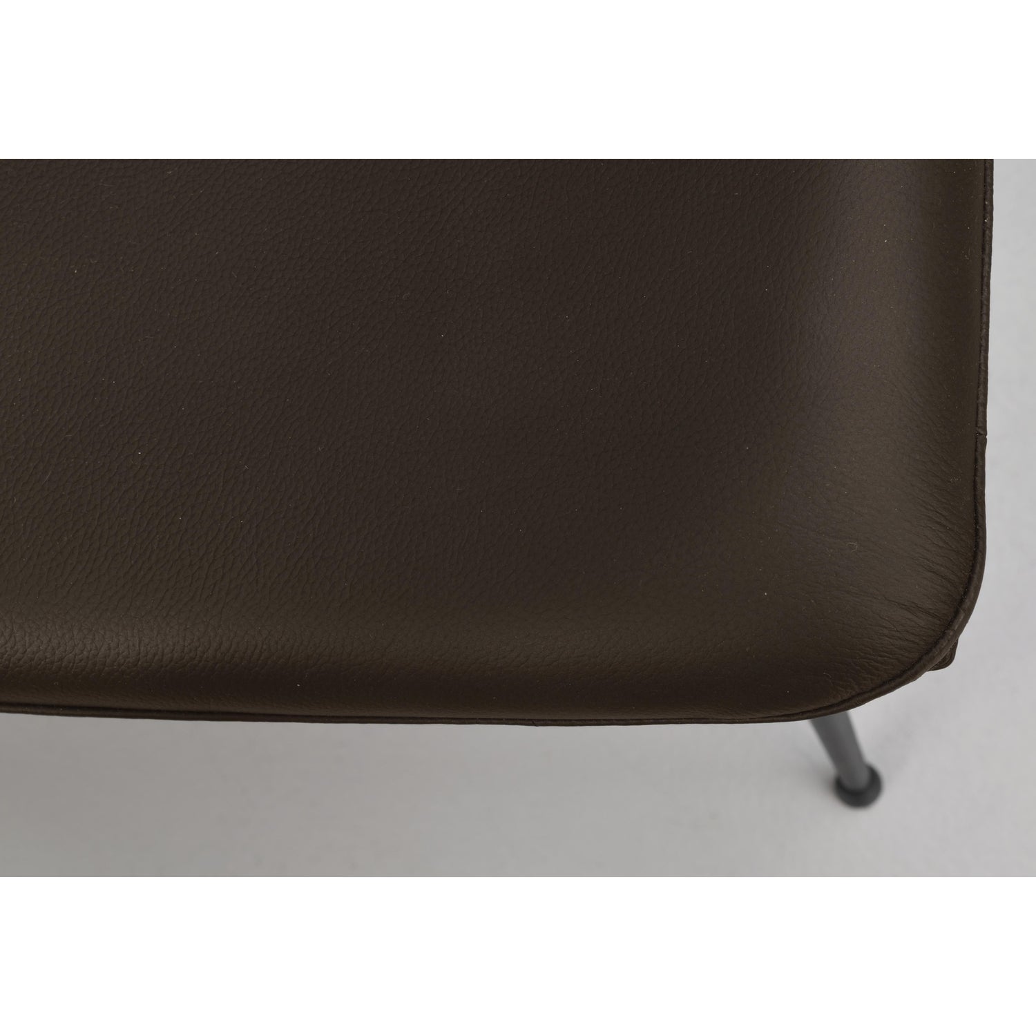 Materiale: Polstret stol med ekte lær på kryssfiner ramme, ben i pulverlakkert metall med sandstruktur. Føtter i plast.