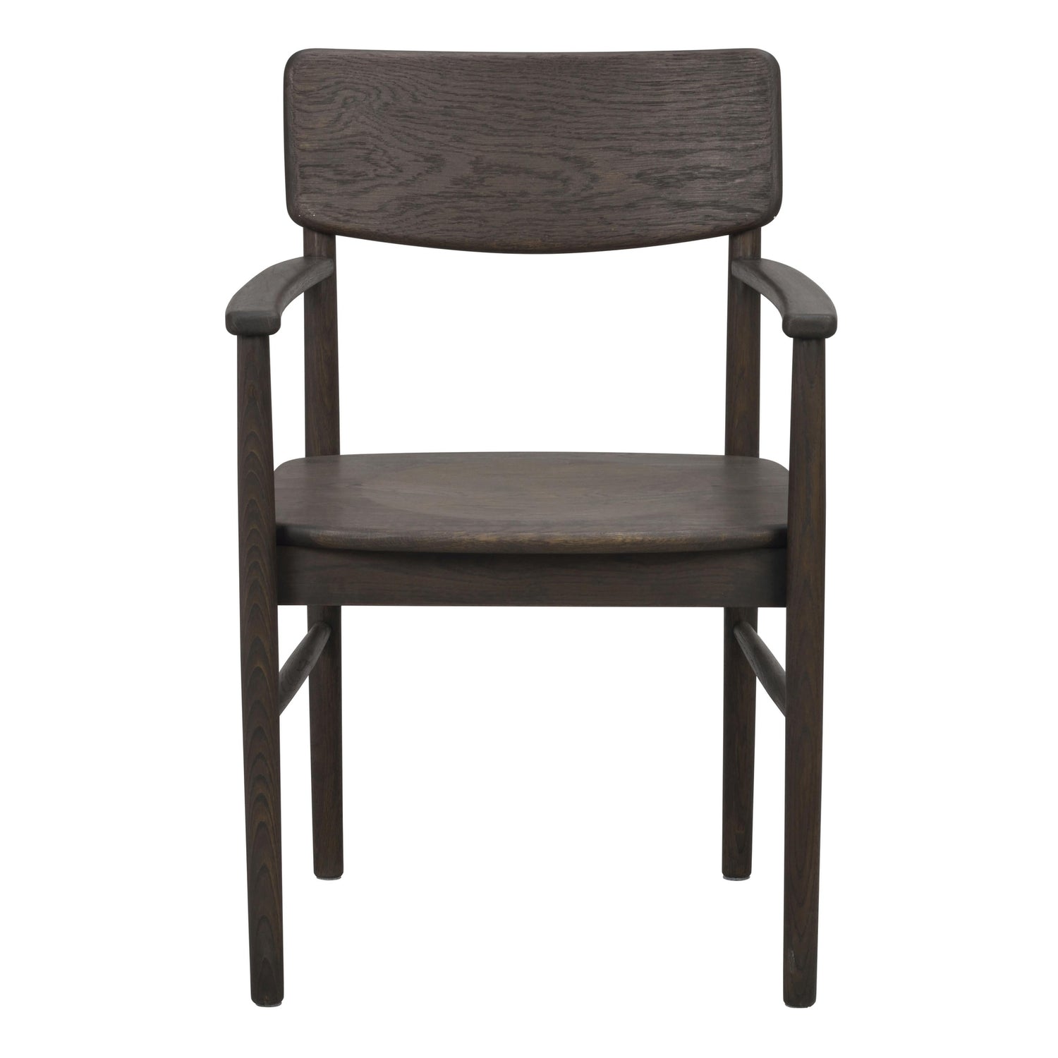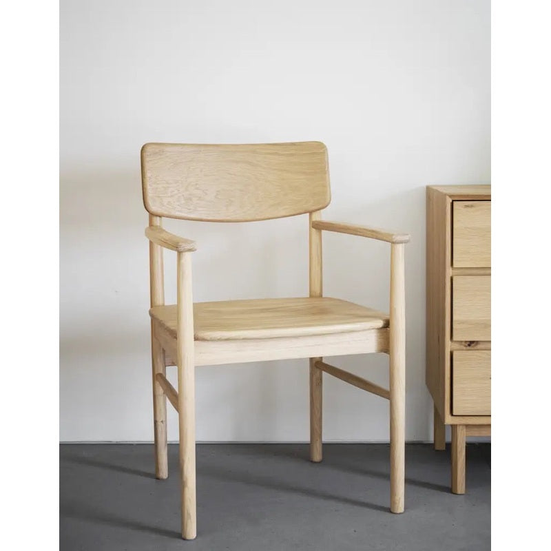 Materiale: Massiv eik, i ben, ramme, armlene, ryggstøtte og sete.
