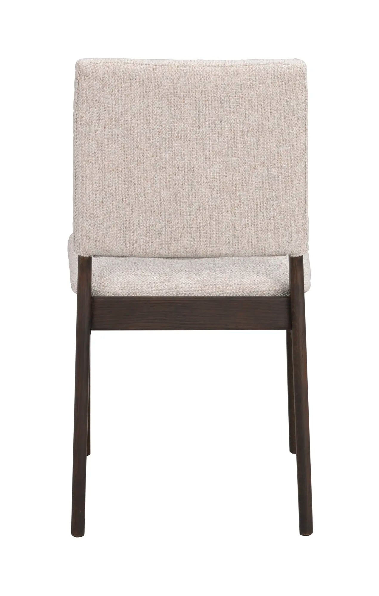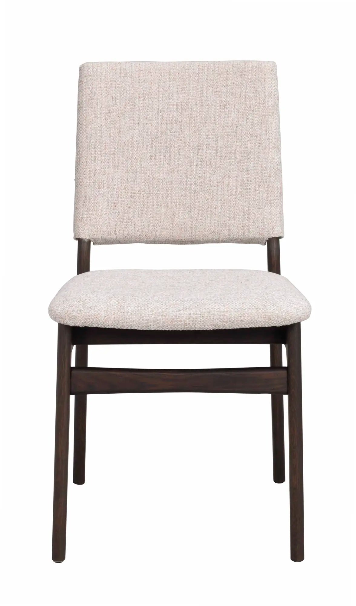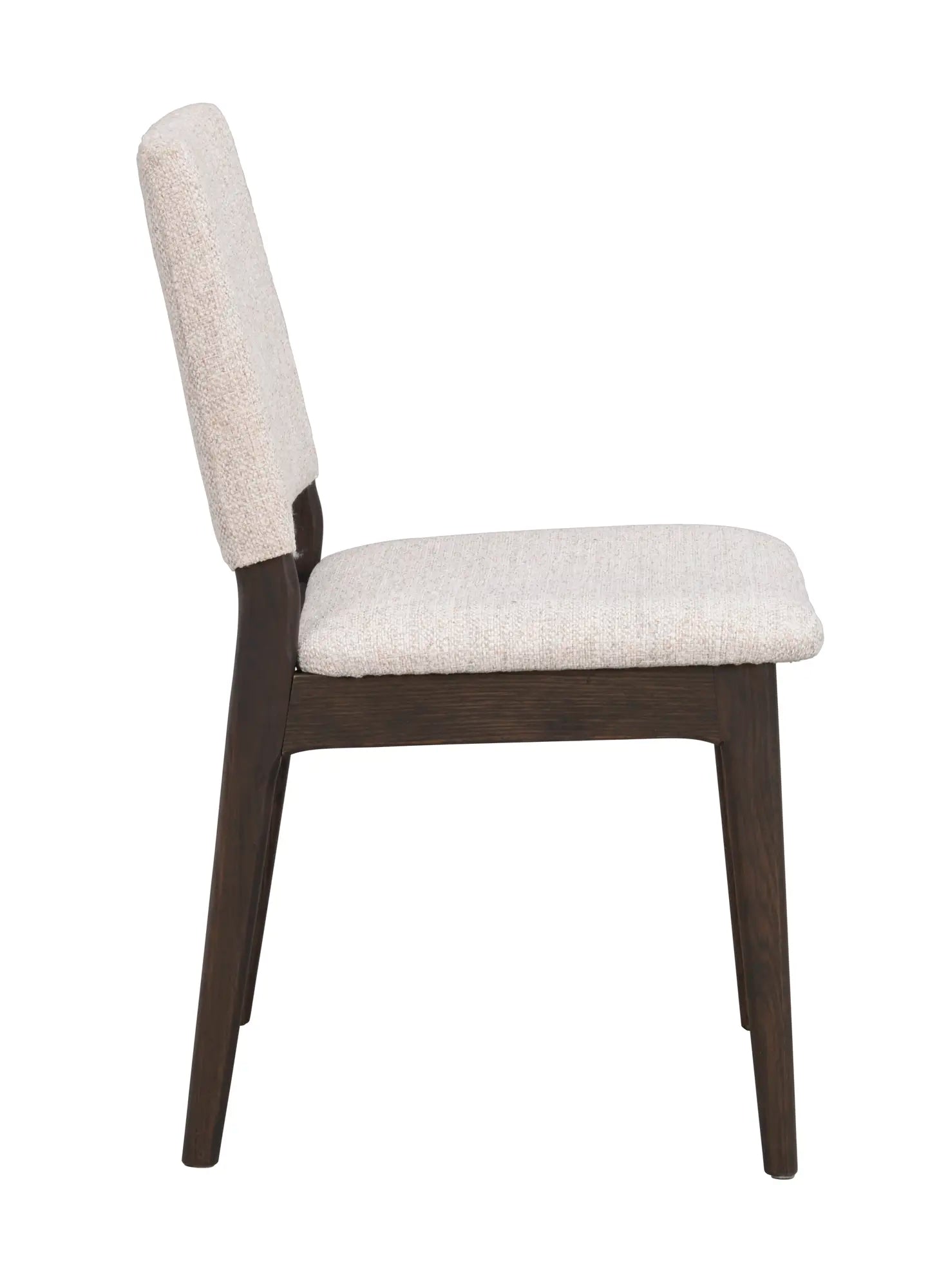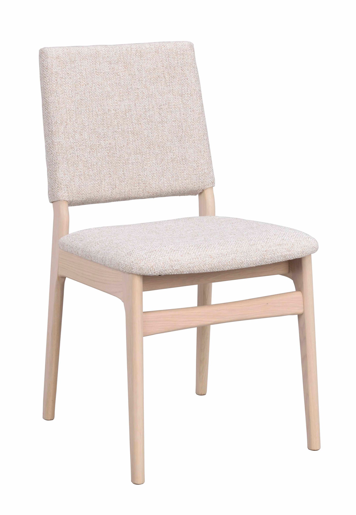 Elegant spisestol utført i solid eik og polstret stoff, med en slank og luftig konstruksjon som gir et stilrent uttrykk. Den balanserte kombinasjonen av myke, avrundede former og rette linjer skaper et harmonisk design som passer like godt i moderne interiør som i mer klassiske hjem. Den rene silhuetten gjør at stolen enkelt kan kombineres med ulike spisebord og øvrige møbler i hjemmet.