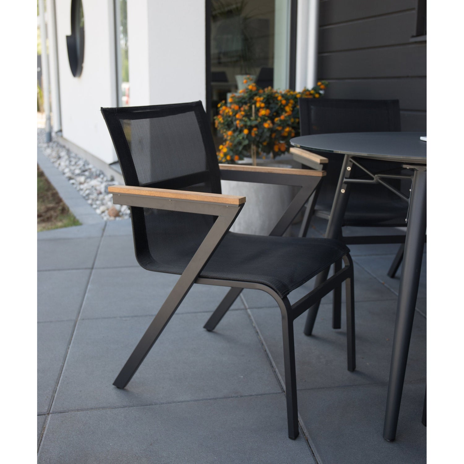 Møblene våre i tekstil kombineres vanligvis med teak eller aluminium. Textilene er et syntetisk stoff laget av PVC-behandlet polyester. Materialet er vannavstøtende og UV-behandlet for å motvirke solens bleking.