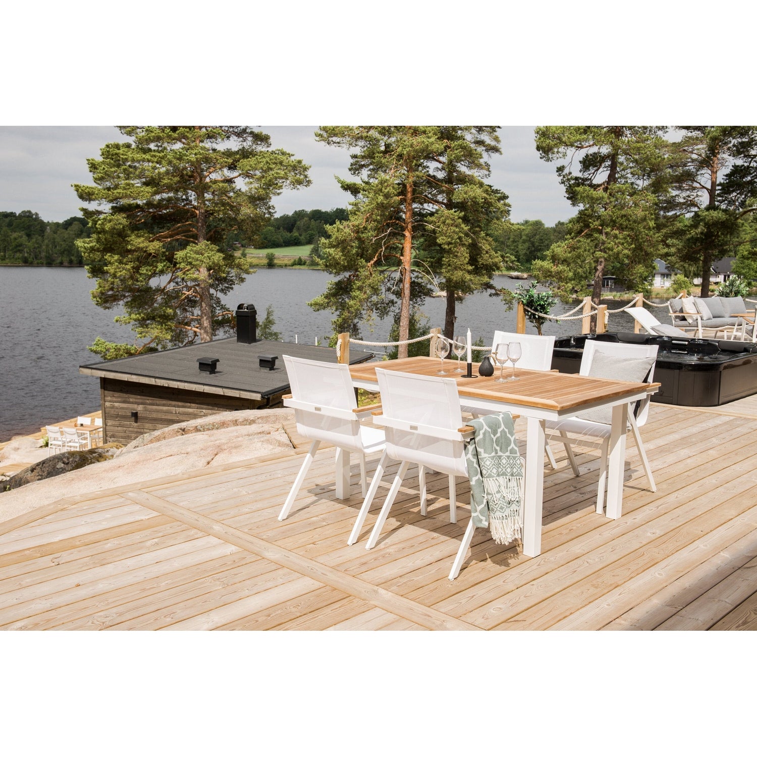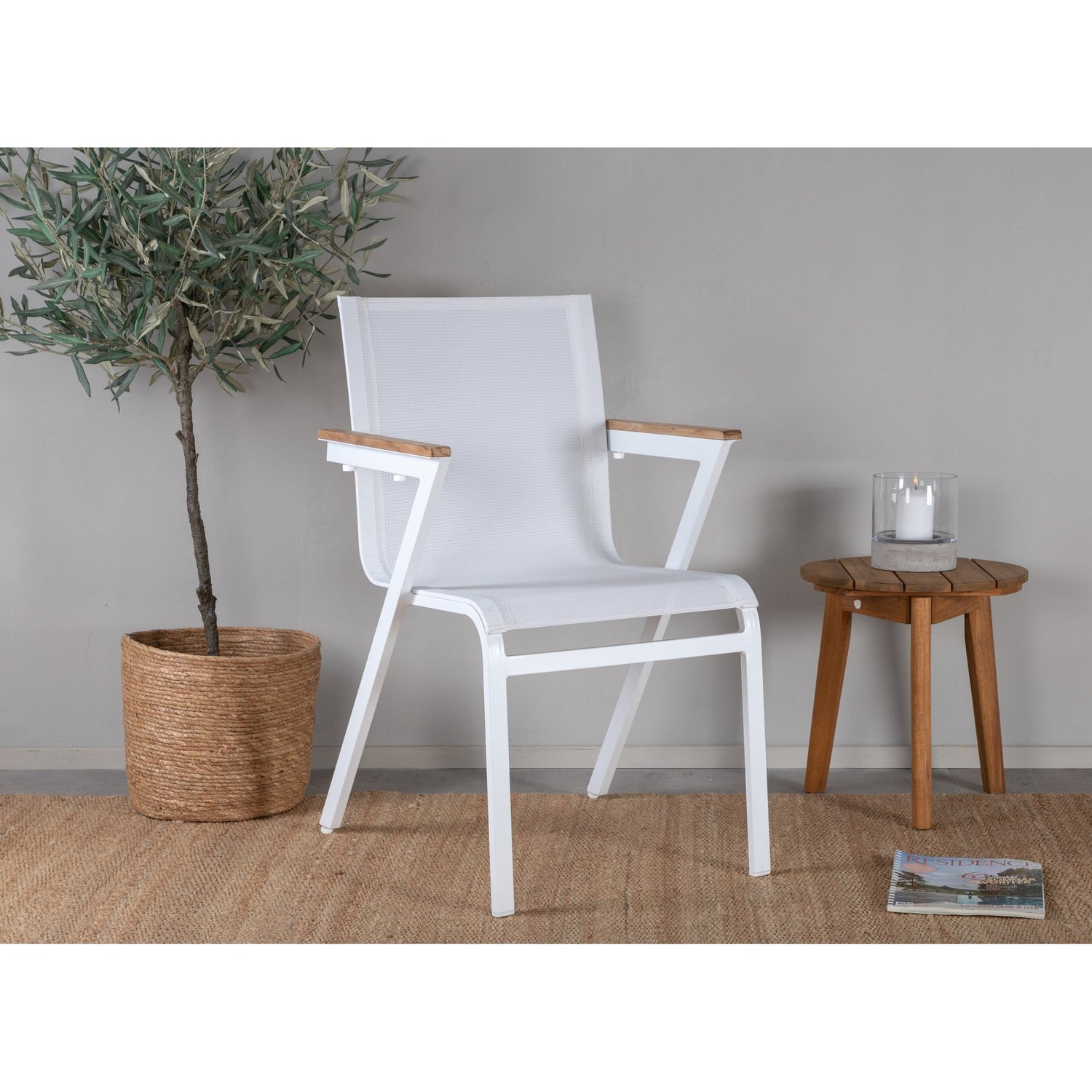 Gjør deg klar for sommerens natteliv med en tidløs spisestol fra Mexico-serien. En smakfull spisestol som passer perfekt til både moderne og klassiske spisebord. Armlenene er laget av teak, noe som skaper en fin detalj for det hvite setet. Stolen er stablerbar, noe som gjør den enkel å oppbevare. Sitt komfortabelt og nyt hyggelige måltider utendørs!