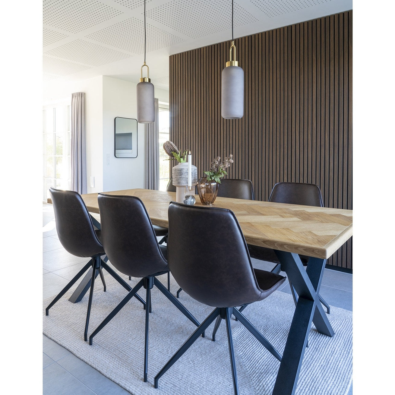 Opplev komfort og stil med vår spisebordsstol i PU med dreiefot. Denne stolen kombinerer moderne design med funksjonalitet, og er perfekt for både hverdagsbruk og spesielle anledninger. Setet er trukket i slitesterkt PU-materiale som gir en luksuriøs følelse, samtidig som det er lett å rengjøre. Dreiefoten gir ekstra fleksibilitet og bevegelsesfrihet, noe som gjør det enkelt å snu seg og reise seg fra bordet. De sorte benene gir en elegant kontrast og sikrer stabilitet og holdbarhet. Denne spisebordsstolen er et ideelt valg for deg som ønsker å tilføre et sofistikert preg til spisestuen din.