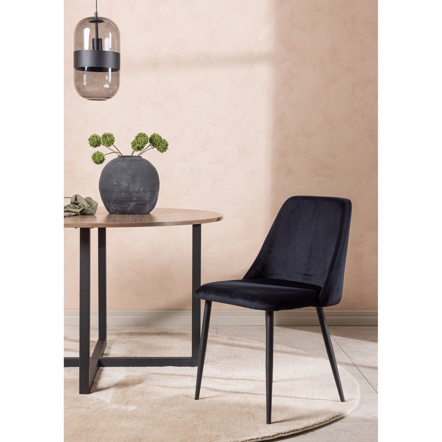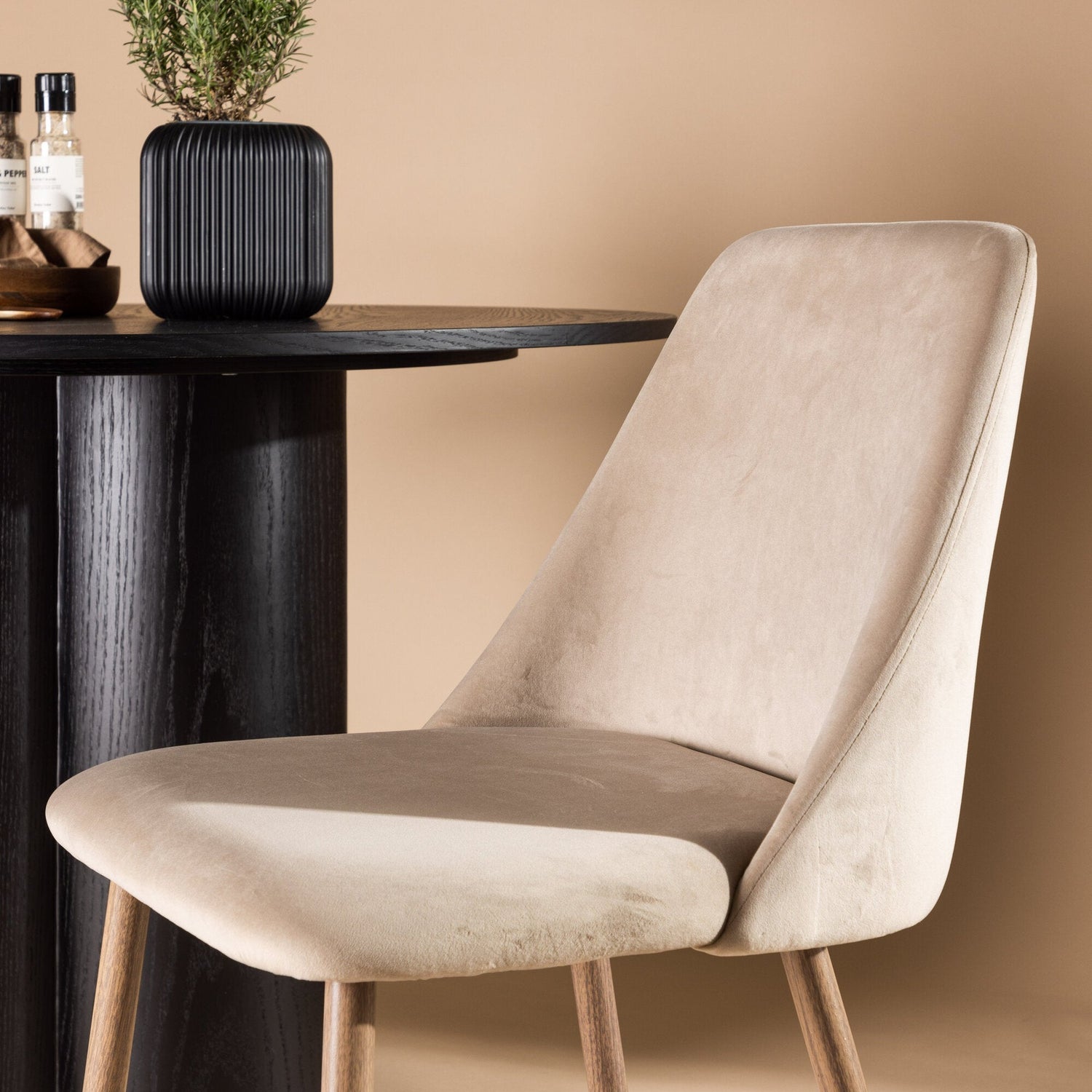 Spisestolen fra NIGHT-serien er like komfortabel som stilig! Stolen har et fullt påkledt sete i fløyelsstoff. Her får du en spisestol som skaper en luksuriøs glans til rommet og bidrar til en innbydende og motebevisst atmosfære. Det bør føles fint å sette seg ned for et velsmakende måltid!
