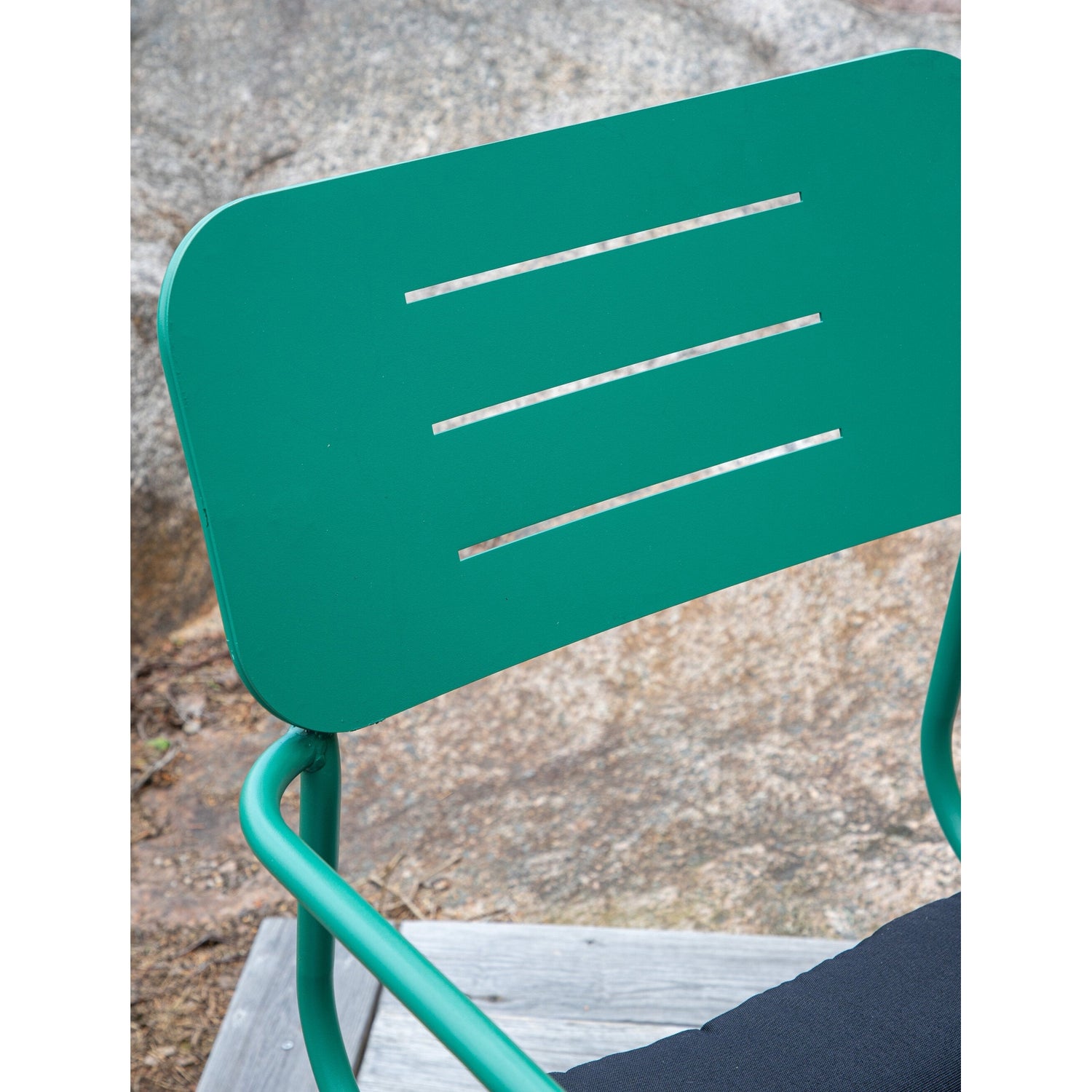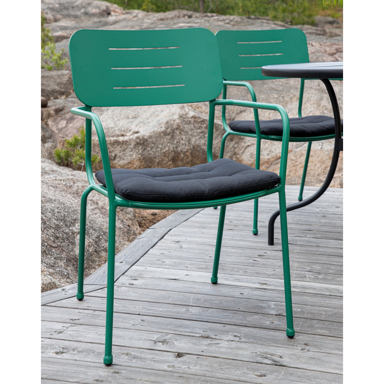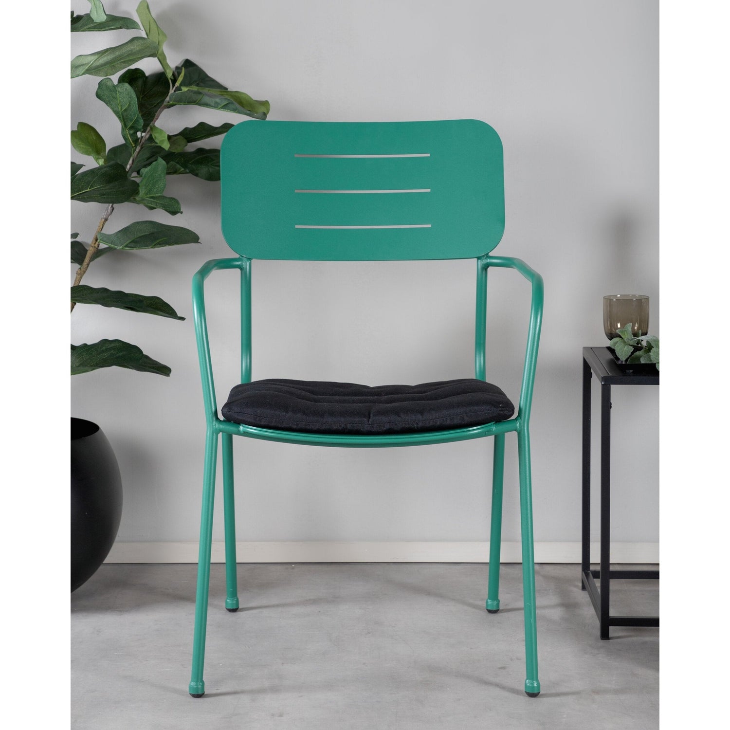 Nicke er en pen og fargerik stol i strålende grønn farge, som passer til alle typer spisebord. En stol i slitesterk stål som lyser opp terrassen så vel som hagen. Skap en koselig følelse på terrassen med en slank fargeklikk og stilrent design. Puter er tilgjengelige for kjøp. Stolen er stablerbar.