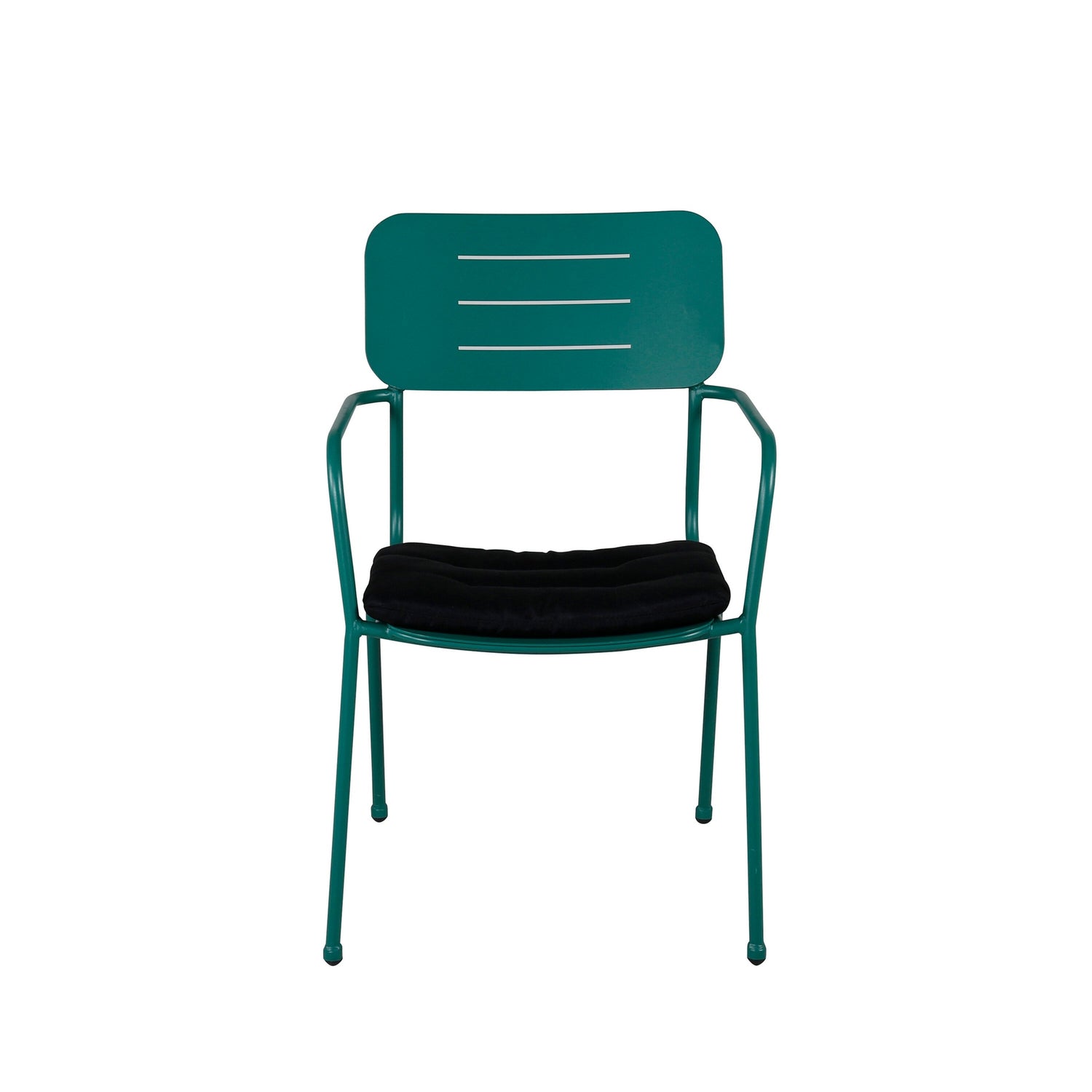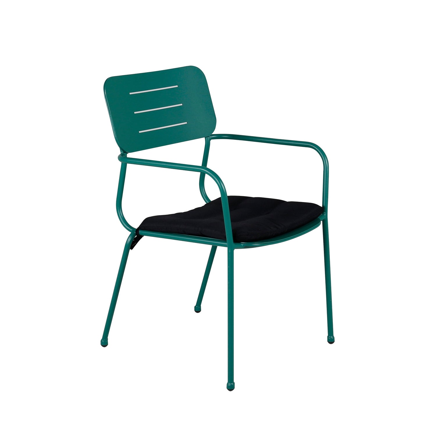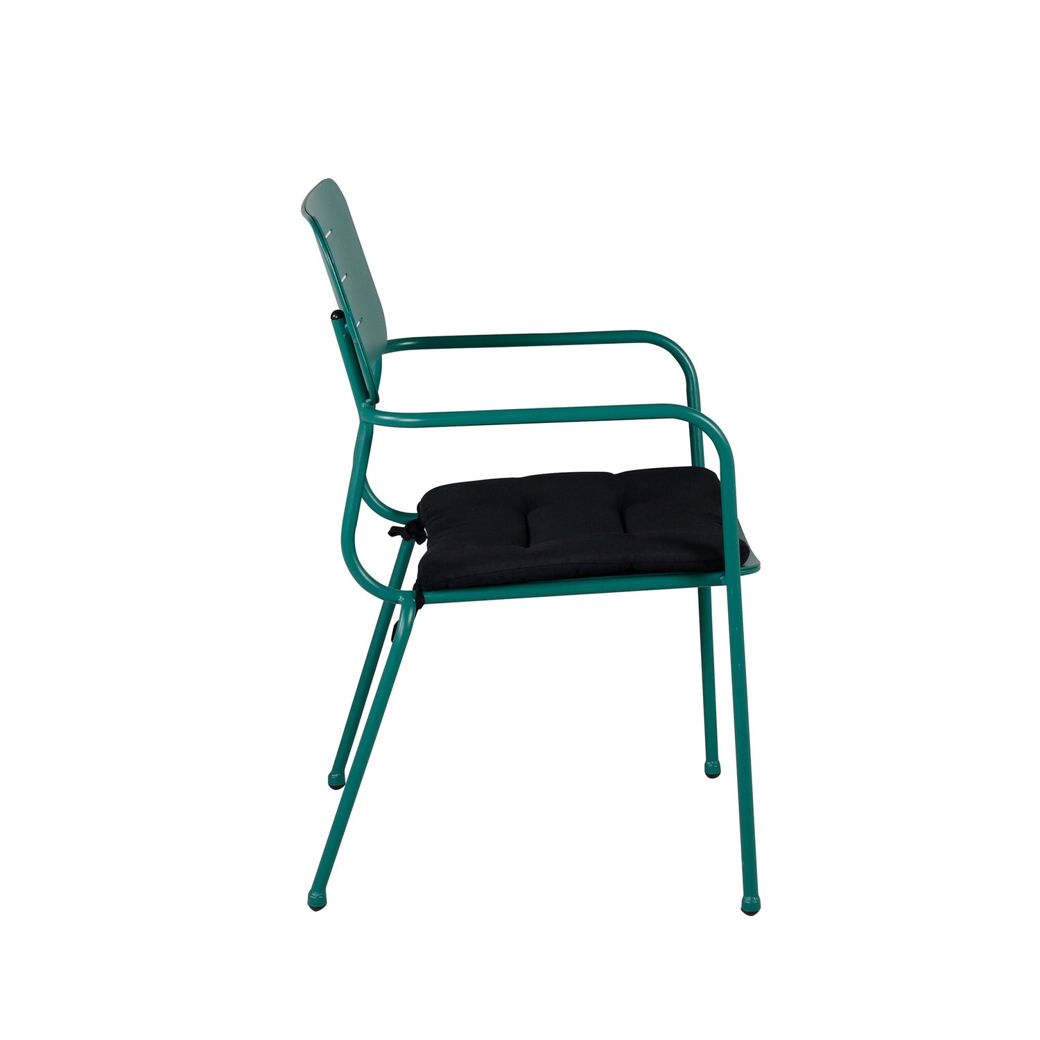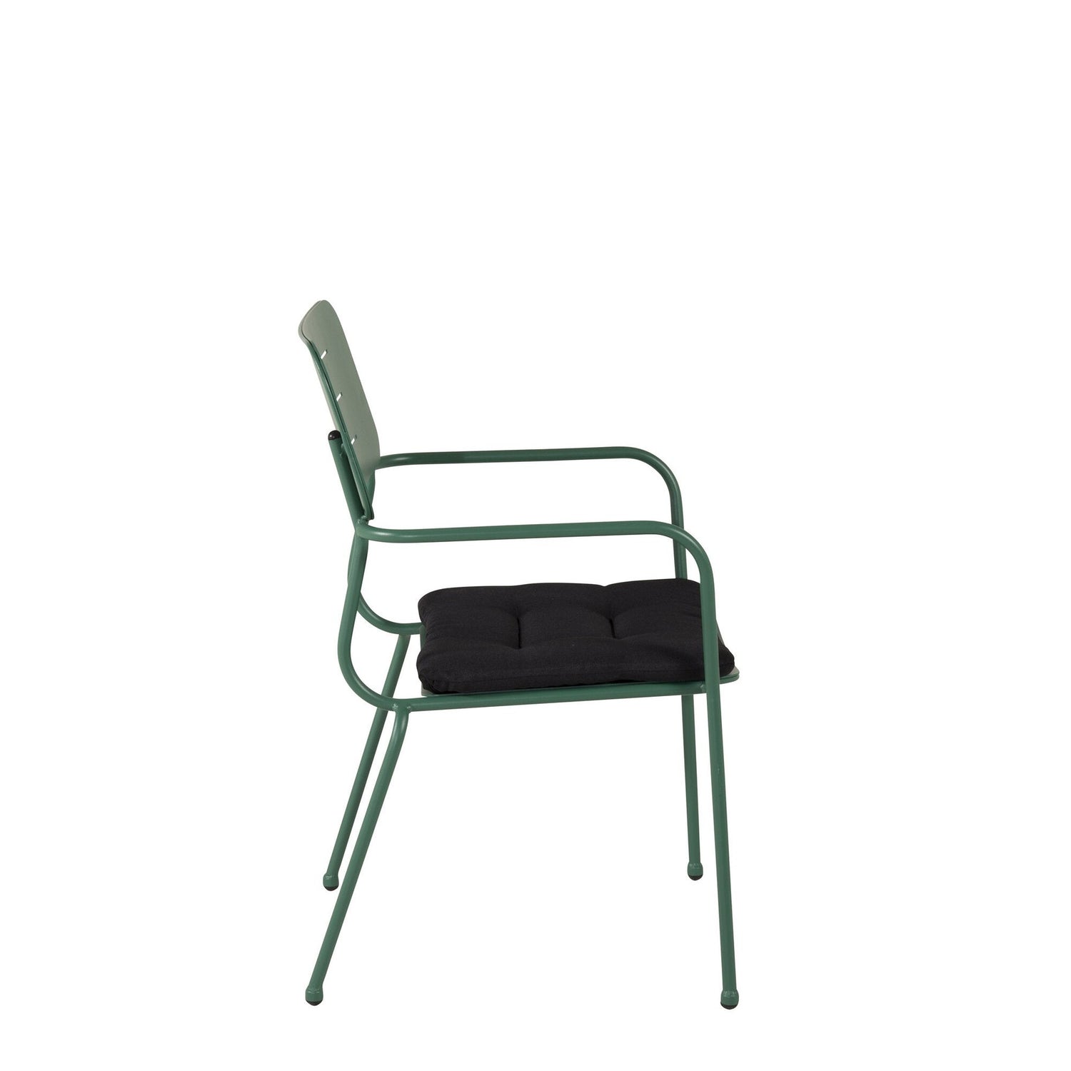 Nicke er en pen og fargerik stol i strålende grønn farge, som passer til alle typer spisebord. En stol i slitesterk stål som lyser opp terrassen så vel som hagen. Skap en koselig følelse på terrassen med en slank fargeklikk og stilrent design. Puter er tilgjengelige for kjøp. Stolen er stablerbar.