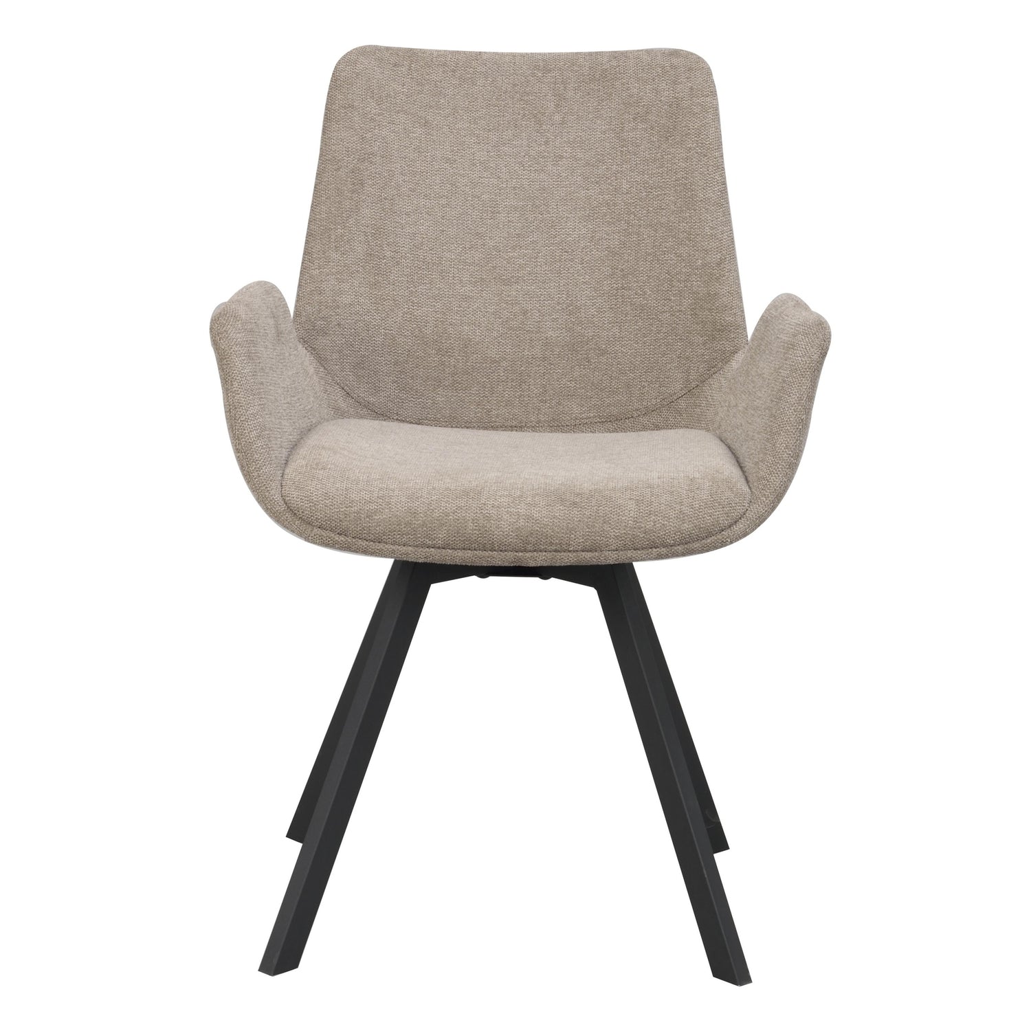 Materiale: Polstret stol i stoff, sete i bøyd kryssfiner. Ben i pulverlakkert metall, i sandstruktur. Svingefunksjon 360 grader.