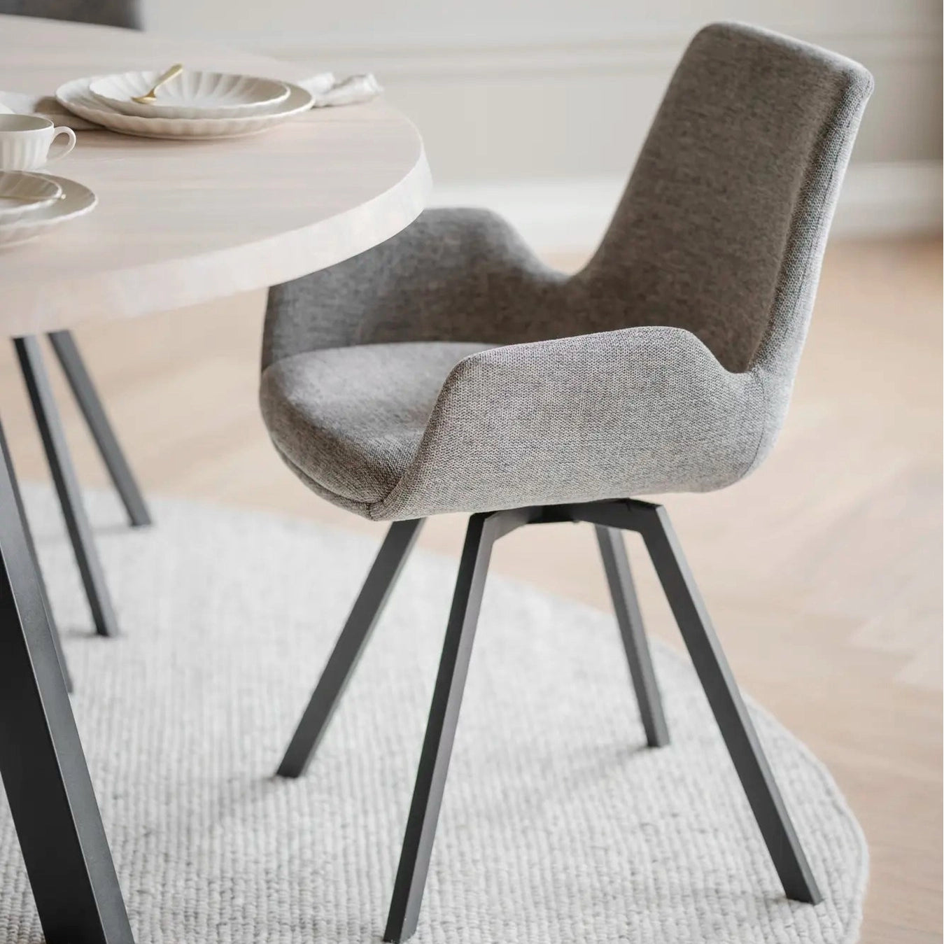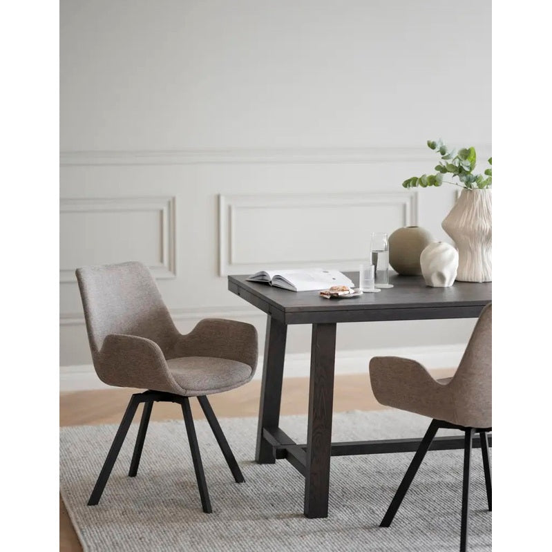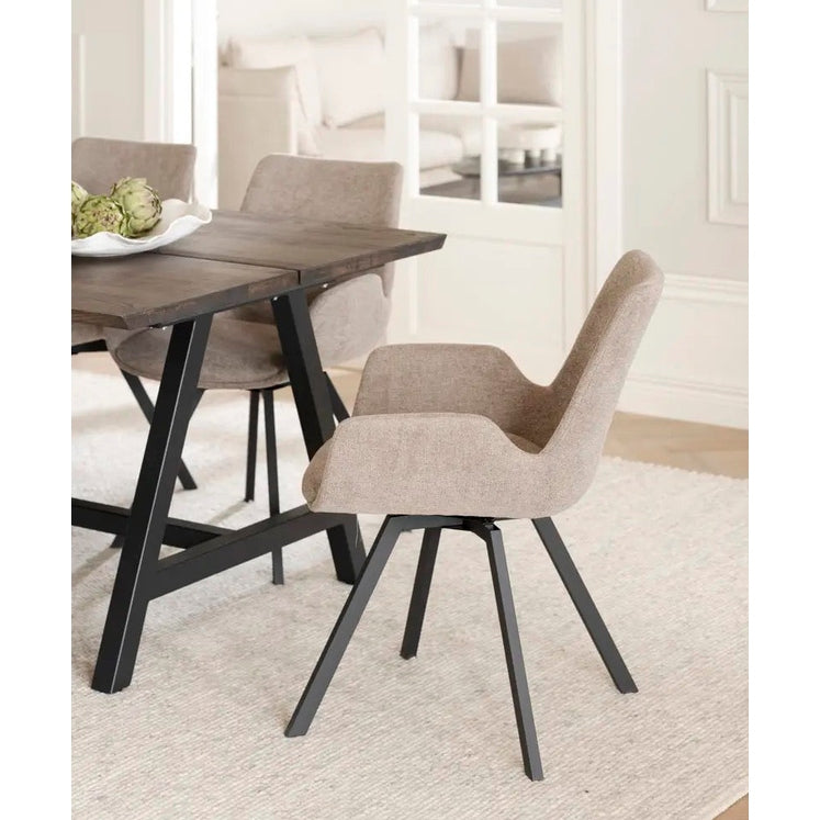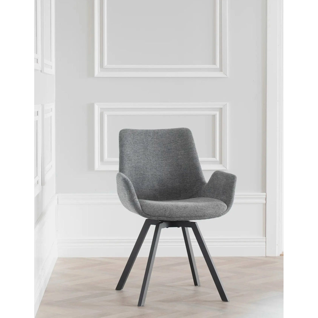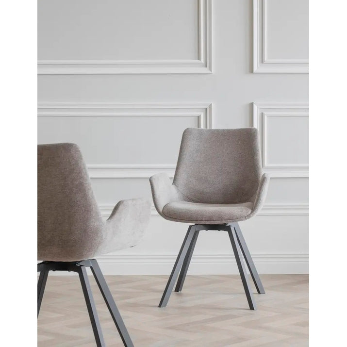 Norwell lenestol med svingfunksjon er en moderne og komfortabel stol som passer perfekt inn i ethvert hjem. Denne lenestolen er designet med fokus på både stil og funksjonalitet, og gir deg muligheten til å nyte en avslappende sitteopplevelse. Med sine fleksible ben kan du enkelt rotere stolen 360 grader, noe som gir deg frihet til å bevege deg og tilpasse deg omgivelsene dine. Benene er laget av slitesterk svart metall, som gir et elegant preg og sikrer stabilitet. Norwell lenestolen er et utmerket valg for stuen, kontoret eller lesekroken, og vil bli et attraktivt blikkfang i ethvert rom. Oppdag den perfekte kombinasjonen av komfort og stil med Norwell lenestolen.