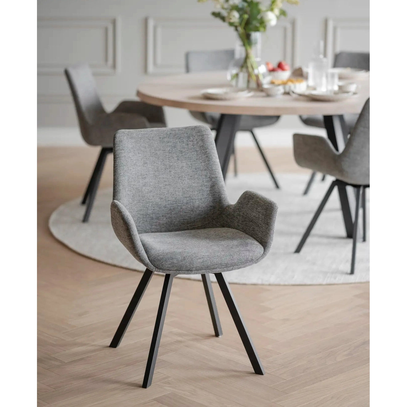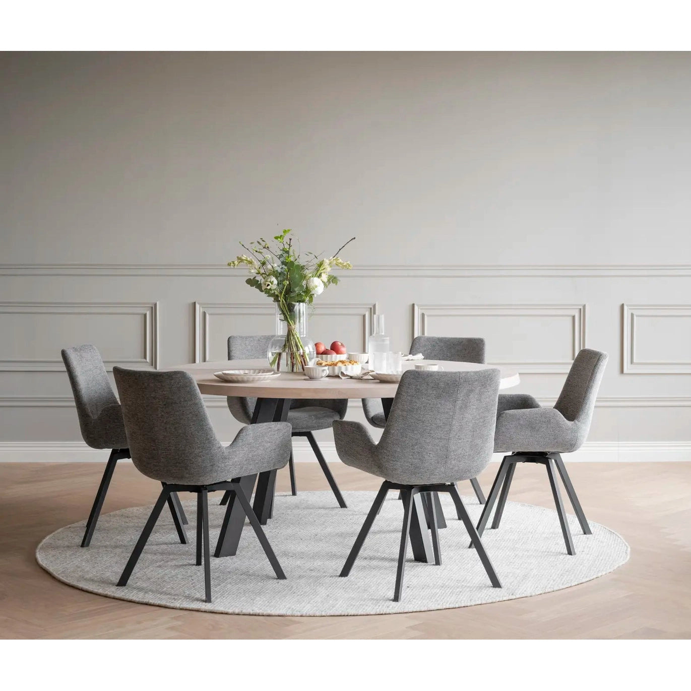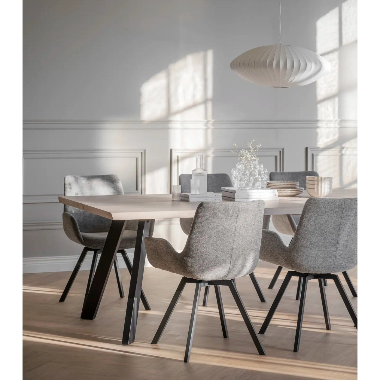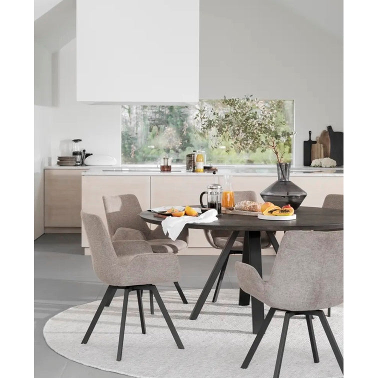 Norwell lenestol med svingfunksjon er en moderne og komfortabel stol som passer perfekt inn i ethvert hjem. Denne lenestolen er designet med fokus på både stil og funksjonalitet, og gir deg muligheten til å nyte en avslappende sitteopplevelse. Med sine fleksible ben kan du enkelt rotere stolen 360 grader, noe som gir deg frihet til å bevege deg og tilpasse deg omgivelsene dine. Benene er laget av slitesterk svart metall, som gir et elegant preg og sikrer stabilitet. Norwell lenestolen er et utmerket valg for stuen, kontoret eller lesekroken, og vil bli et attraktivt blikkfang i ethvert rom. Oppdag den perfekte kombinasjonen av komfort og stil med Norwell lenestolen.