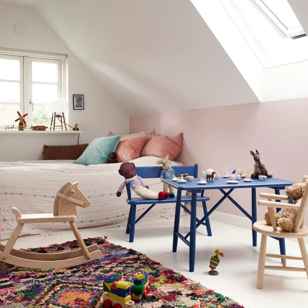 Børge Mogensens benker, som er blitt en institusjon i seg selv, var naturligvis også en del av den første lanseringen av barnemøblene på slutten av 1940-tallet. Benken gir en hyggelig og praktisk sitteplass som kombinerer det koselige med en hyllest til en ekte designklassiker.
