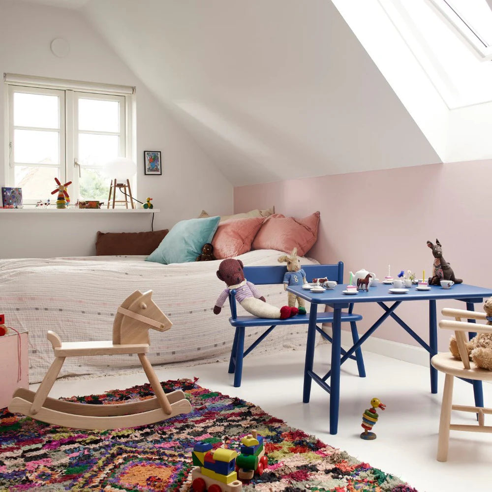 Gyngehesten kombinerer lekenhet med skandinavisk designtradisjon og er både en praktisk og estetisk skatt for barnerommet.