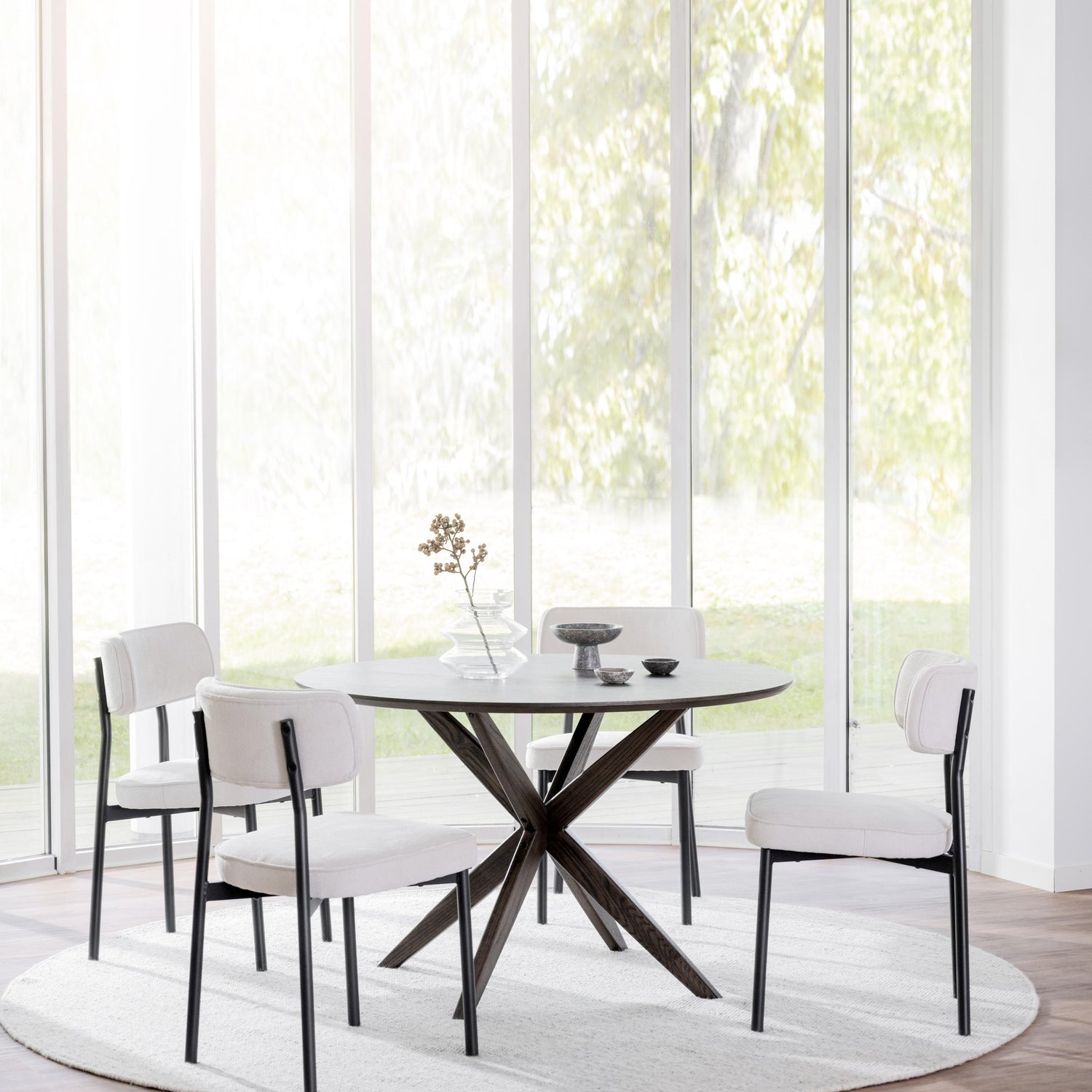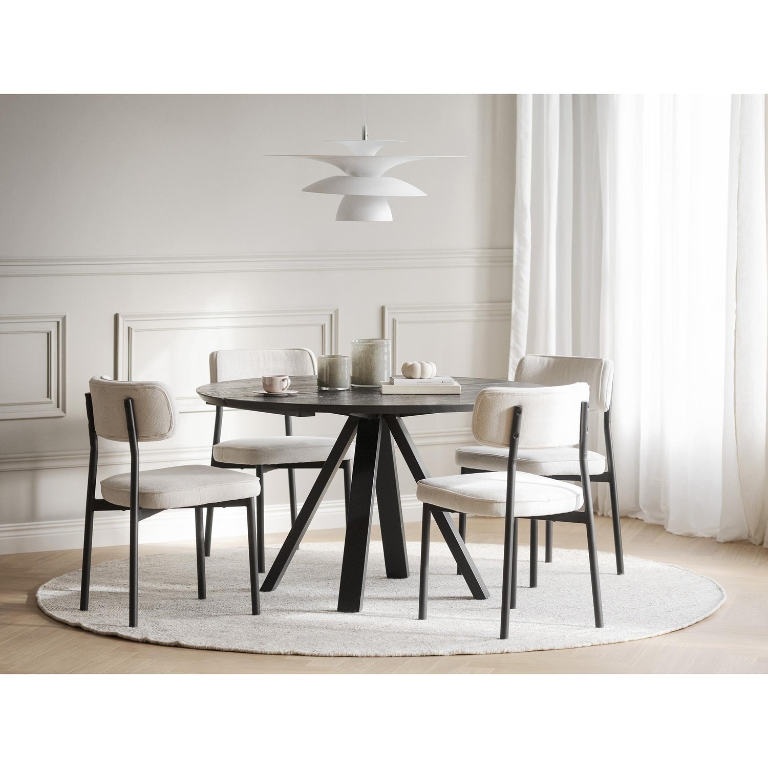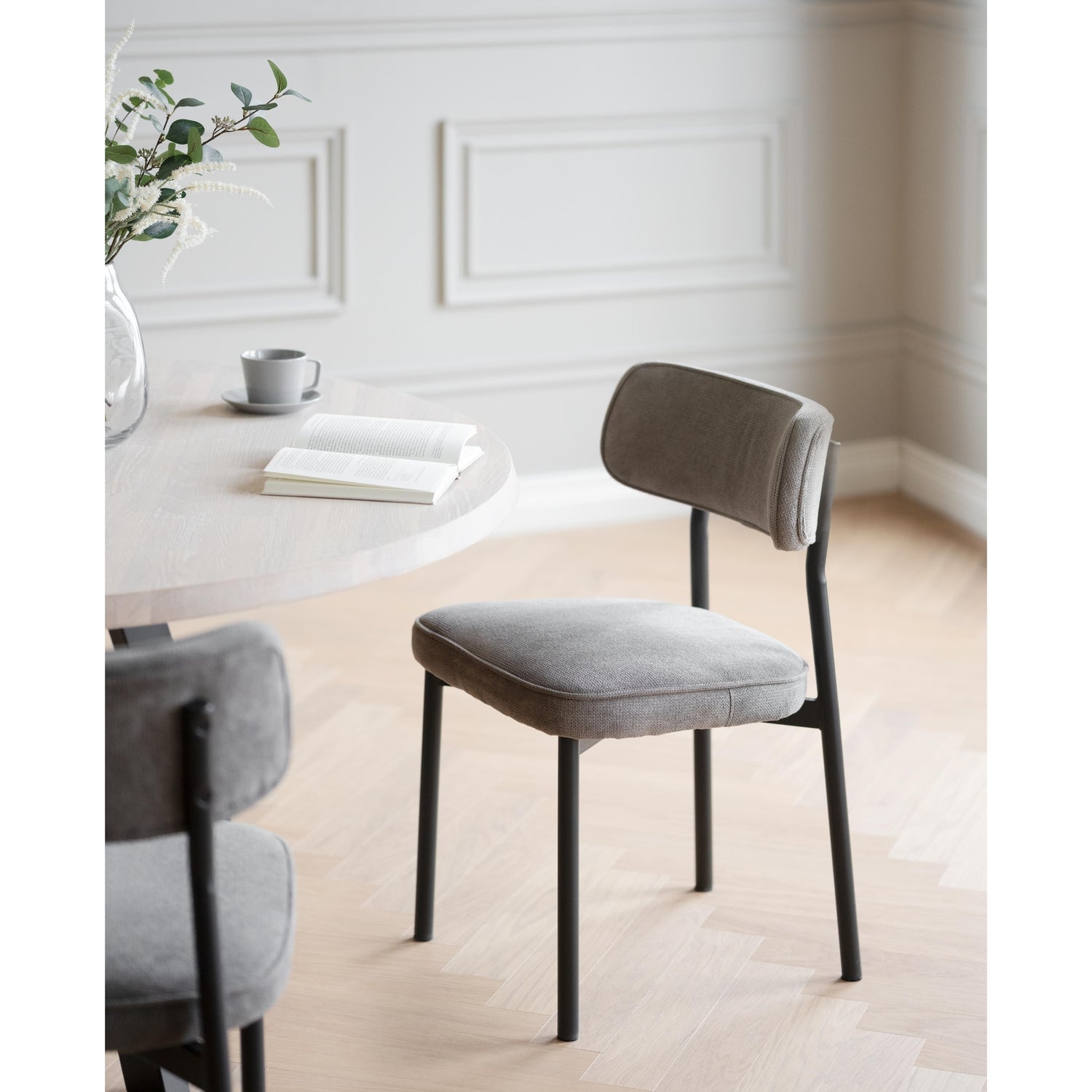 Den avrundede ryggstøtten gir en utmerket sitteopplevelse, og de trendy, runde bena i svartlakkert metall gir stolen et unikt uttrykk som passer perfekt til de fleste spisebord. Velger du Paisley-stolen, tar du et bedre valg for miljøet samtidig som du får et stilfullt møbel til hjemmet ditt.