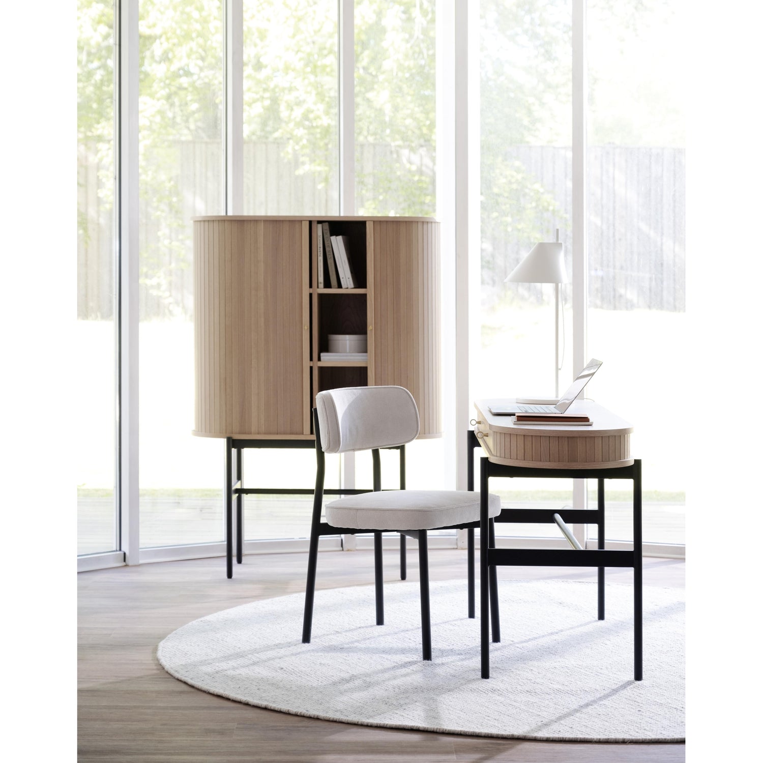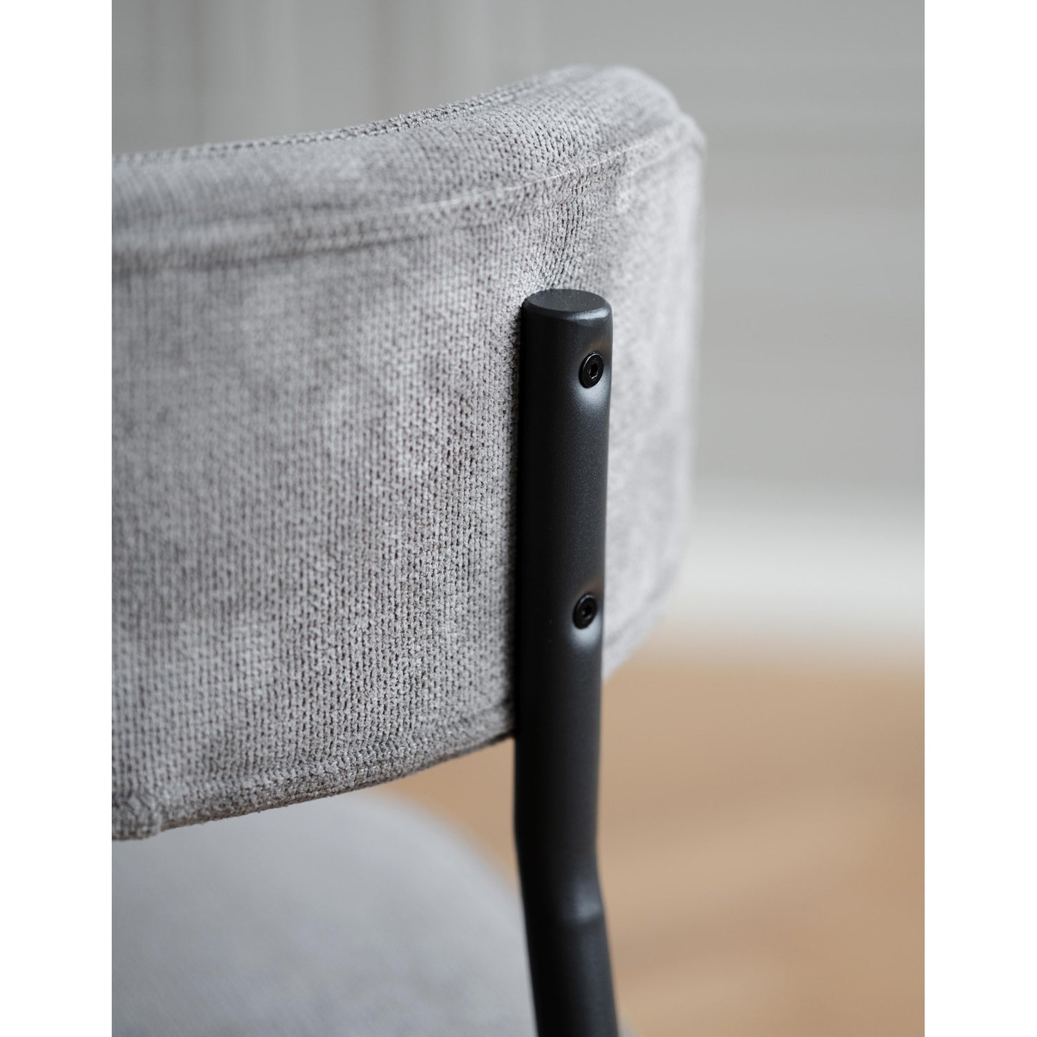 Materiale: Ramme og ben i pulverlakkert metall, i sandstruktur. Sete og ryggstøtte i kryssfiner, polstret med polyeter skum og stoff.