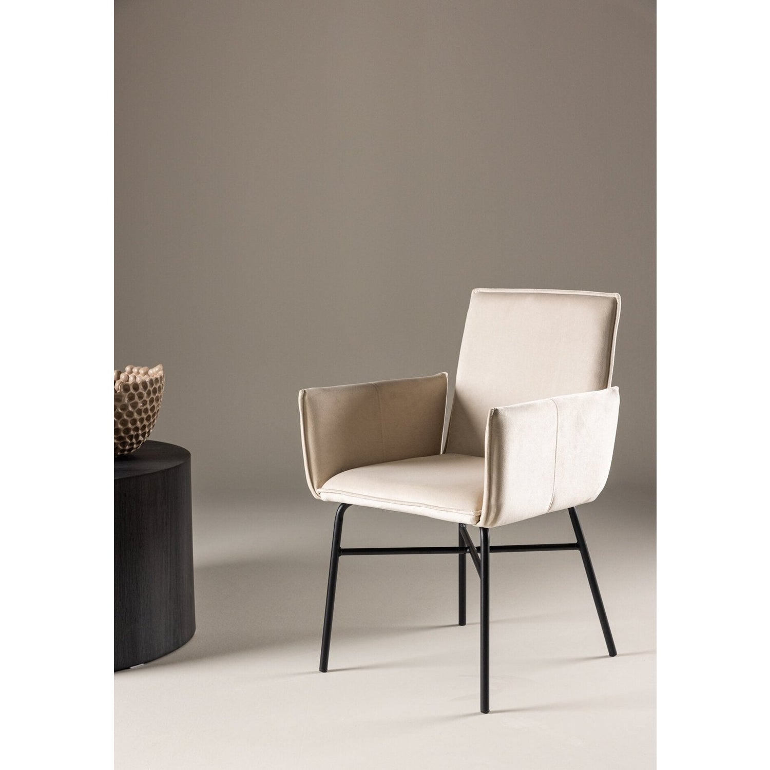 Utforsk elegansen og komforten i Petra Spisestol. Med sin vakre beige farge og svarte stålben er denne stolen både stilig og praktisk for spisebordet ditt. Petra-stolen er laget av polyesterfløyel for en myk og komfortabel sitteopplevelse. De solide stålbenene gir stabilitet, noe som gjør den ideell for daglig bruk. Det tidløse designet og nøytrale fargen gjør Petra-stolen til en allsidig interiørdetalj som passer inn i ulike stiler og rom. Enten det er for familiemiddager eller mer formelle anledninger, vil Petra-stolen være et verdsatt tillegg til spisebordet ditt. Gi spisestuen din den elegante touchen den fortjener med vår stilige og komfortable Petra-stol.