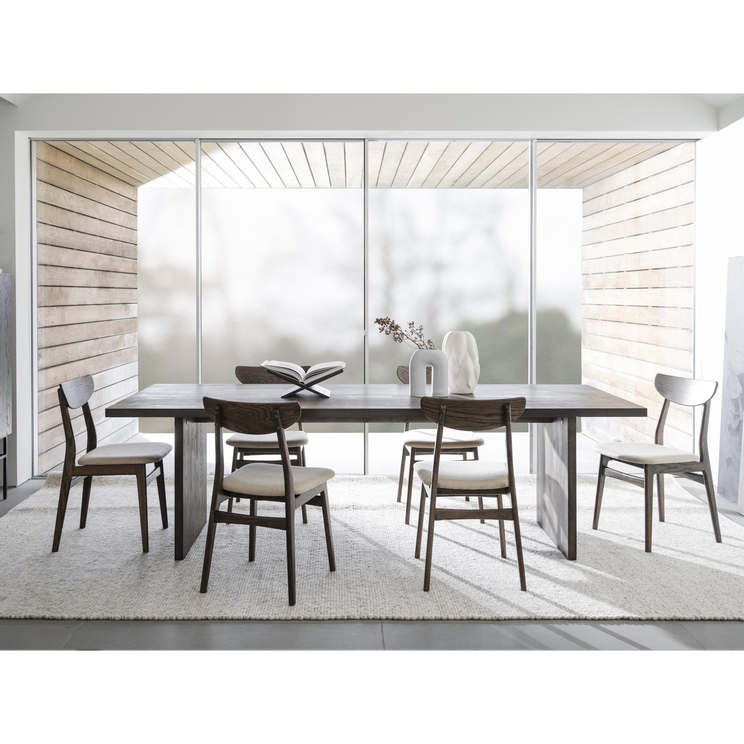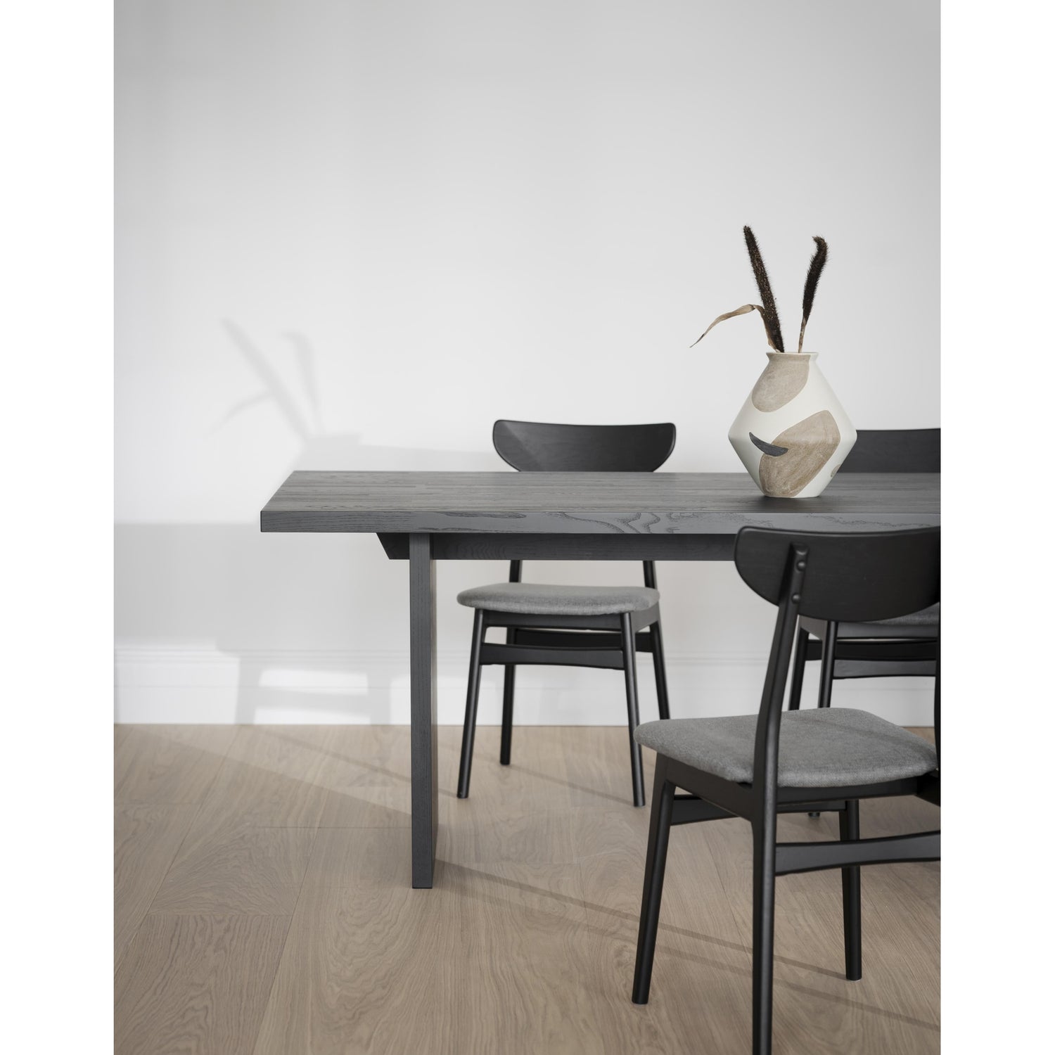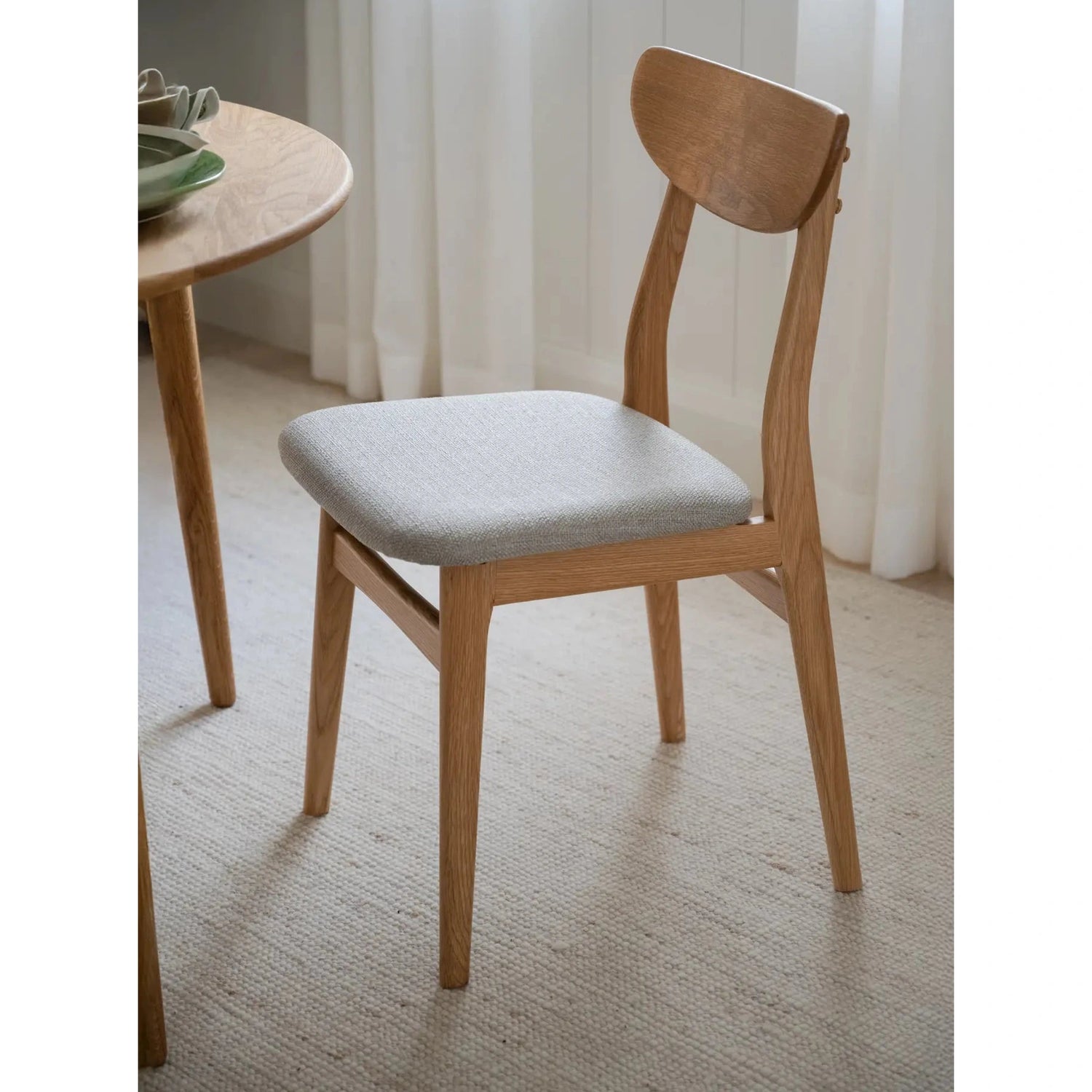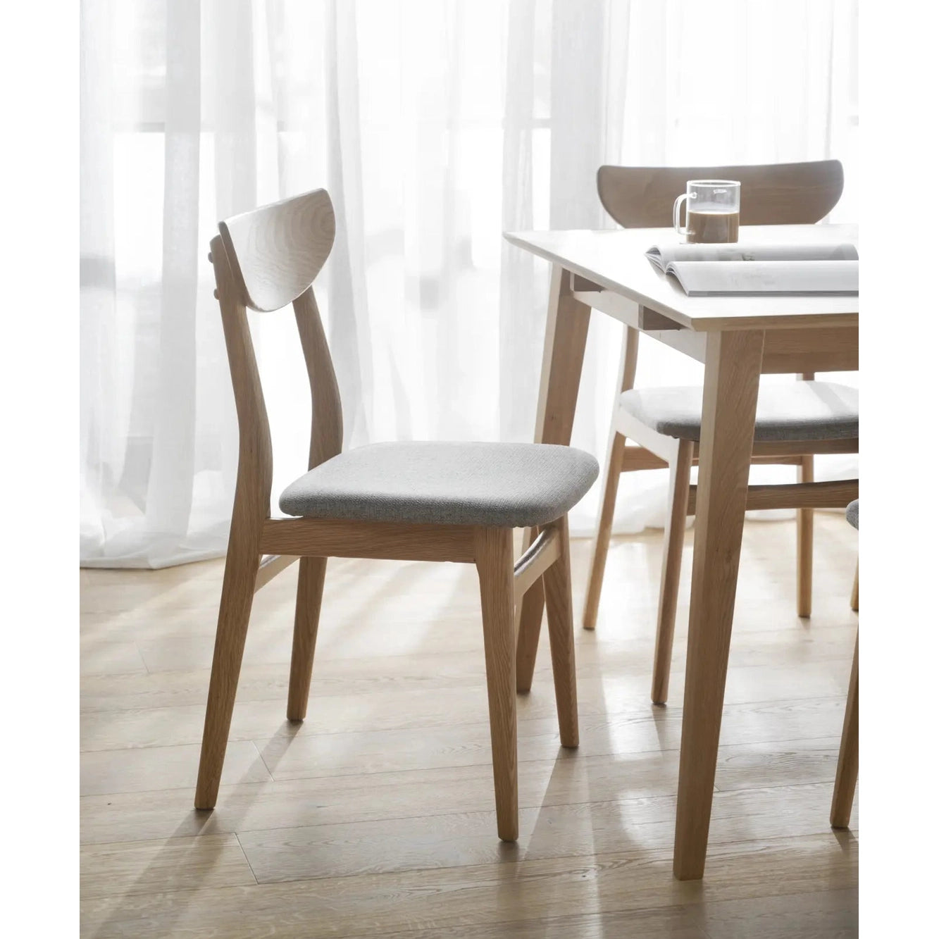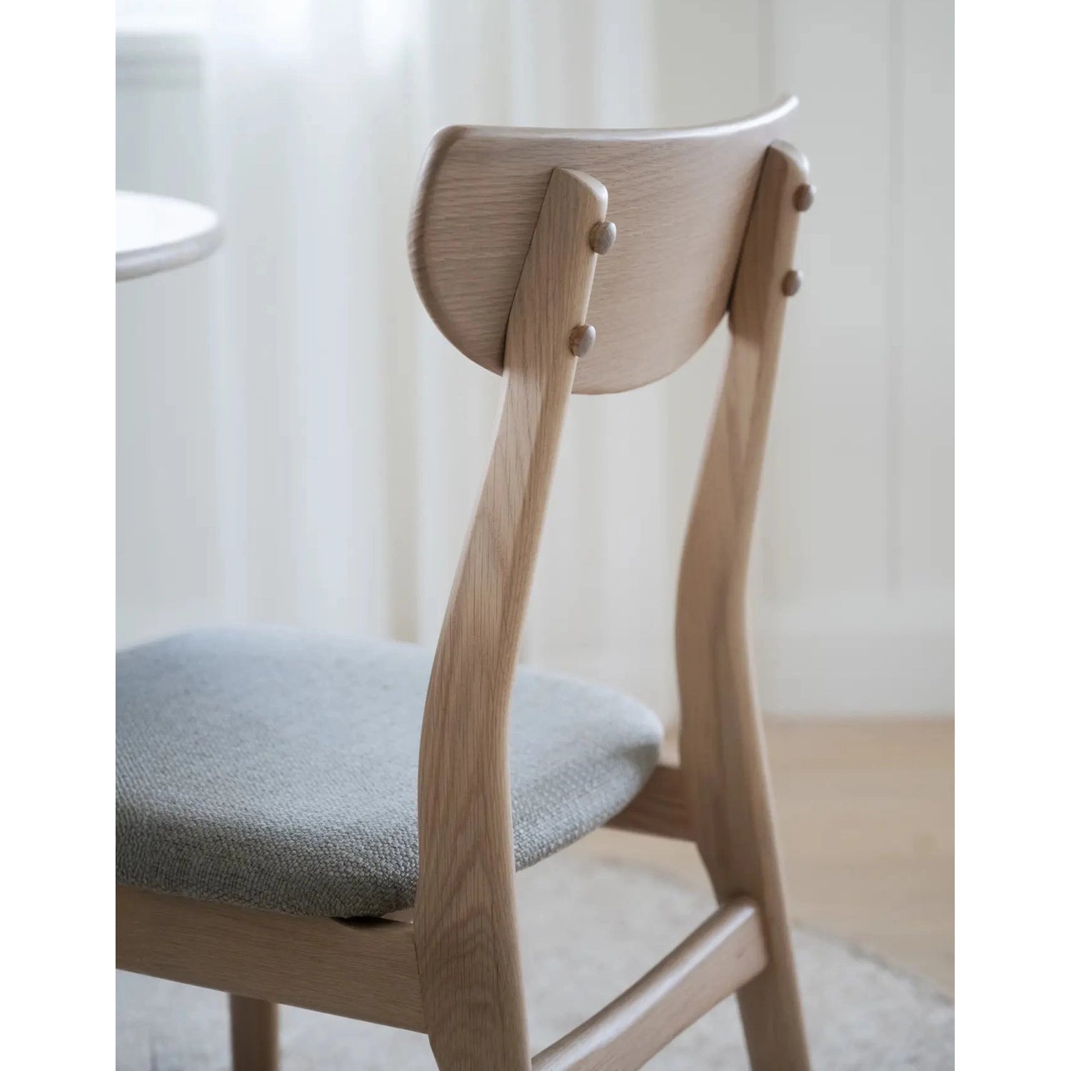 Rodham spisestol i brun eik med beige sete er en stilren og tidløs stol som kombinerer moderne design med klassisk eleganse. Stolen er laget av solid eik i både ramme og ryggstøtte, noe som gir høy kvalitet og lang holdbarhet. Det polstrede setet er kledd i et elegant stoff som gir god sittekomfort og et eksklusivt uttrykk. Rodham spisestol finnes i flere naturlige farger og passer perfekt sammen med spisebord som Tyler, Gardner Emmet og flere.