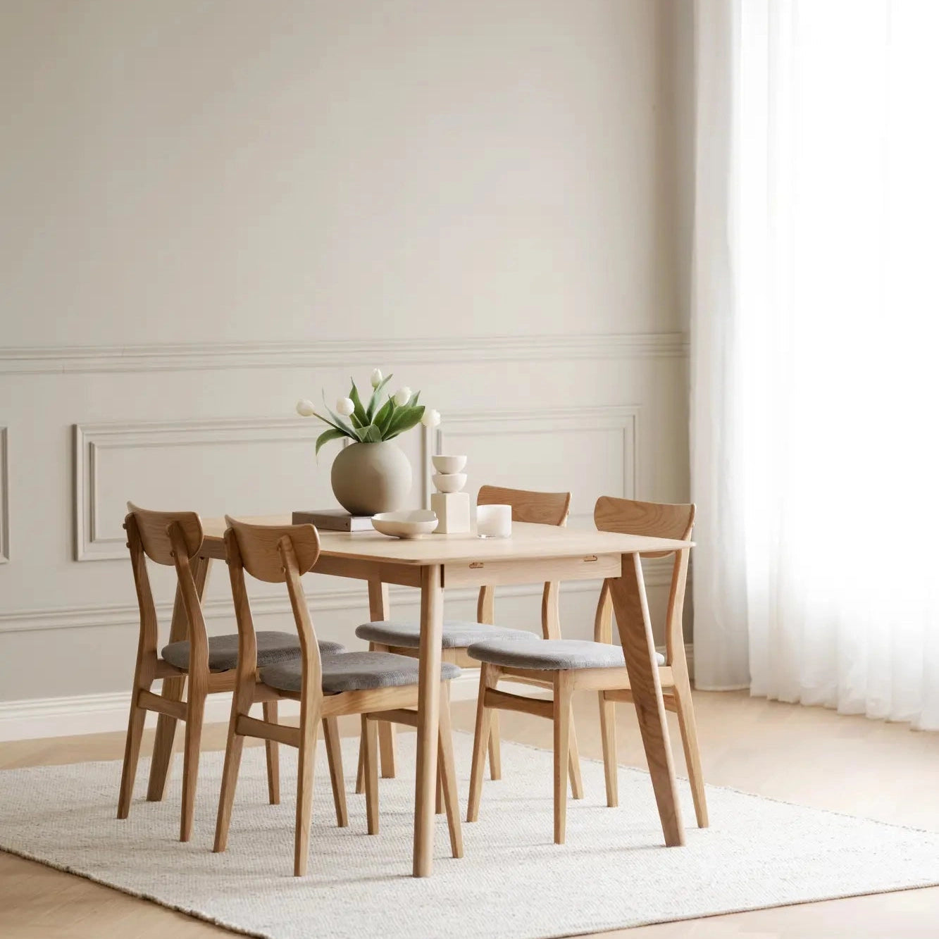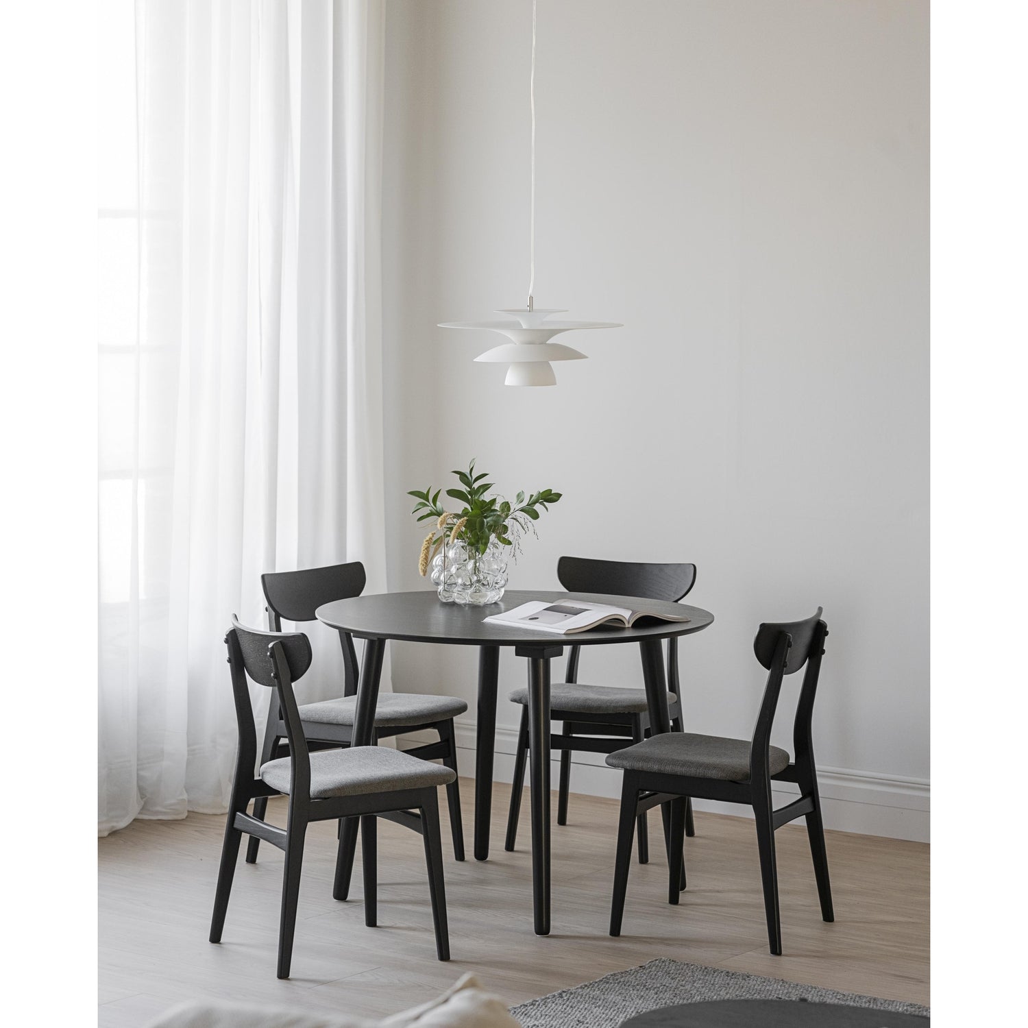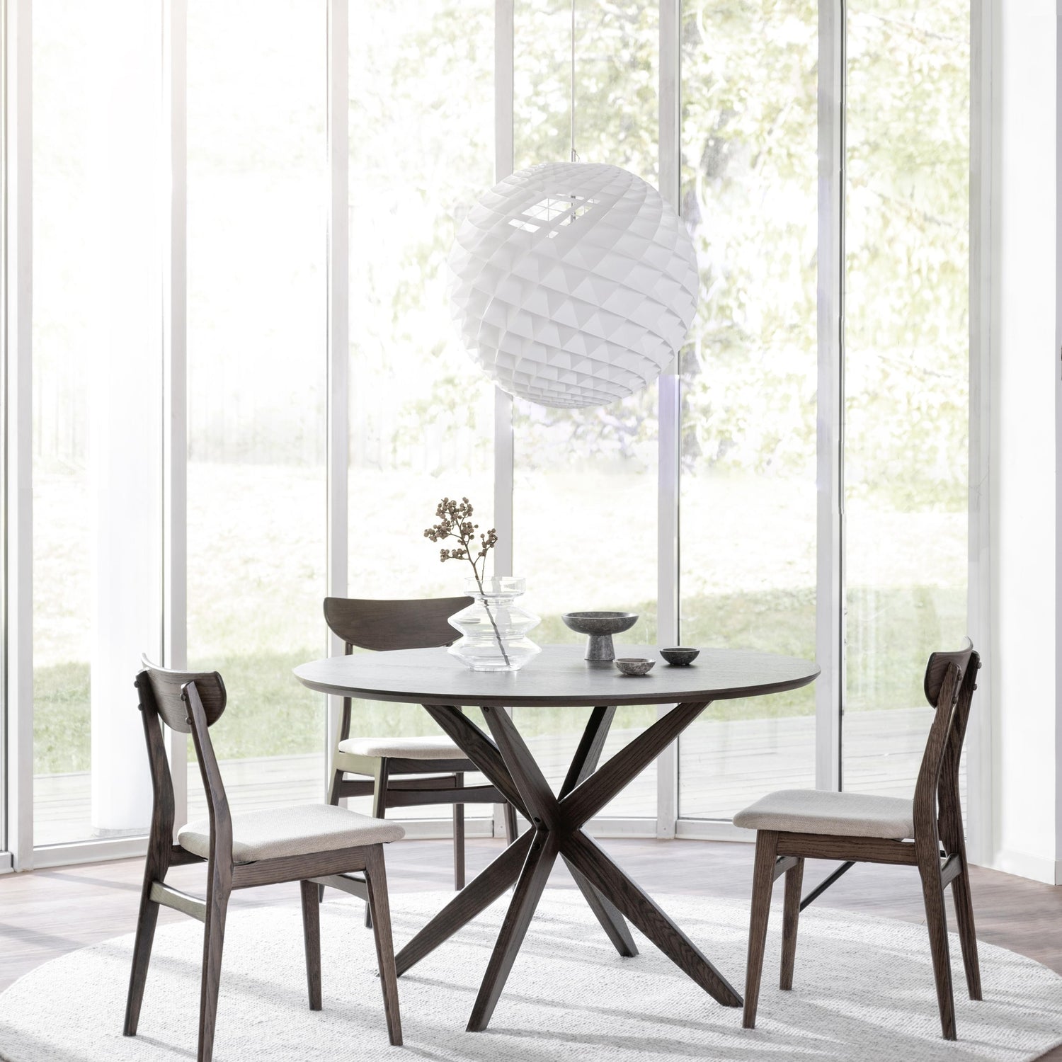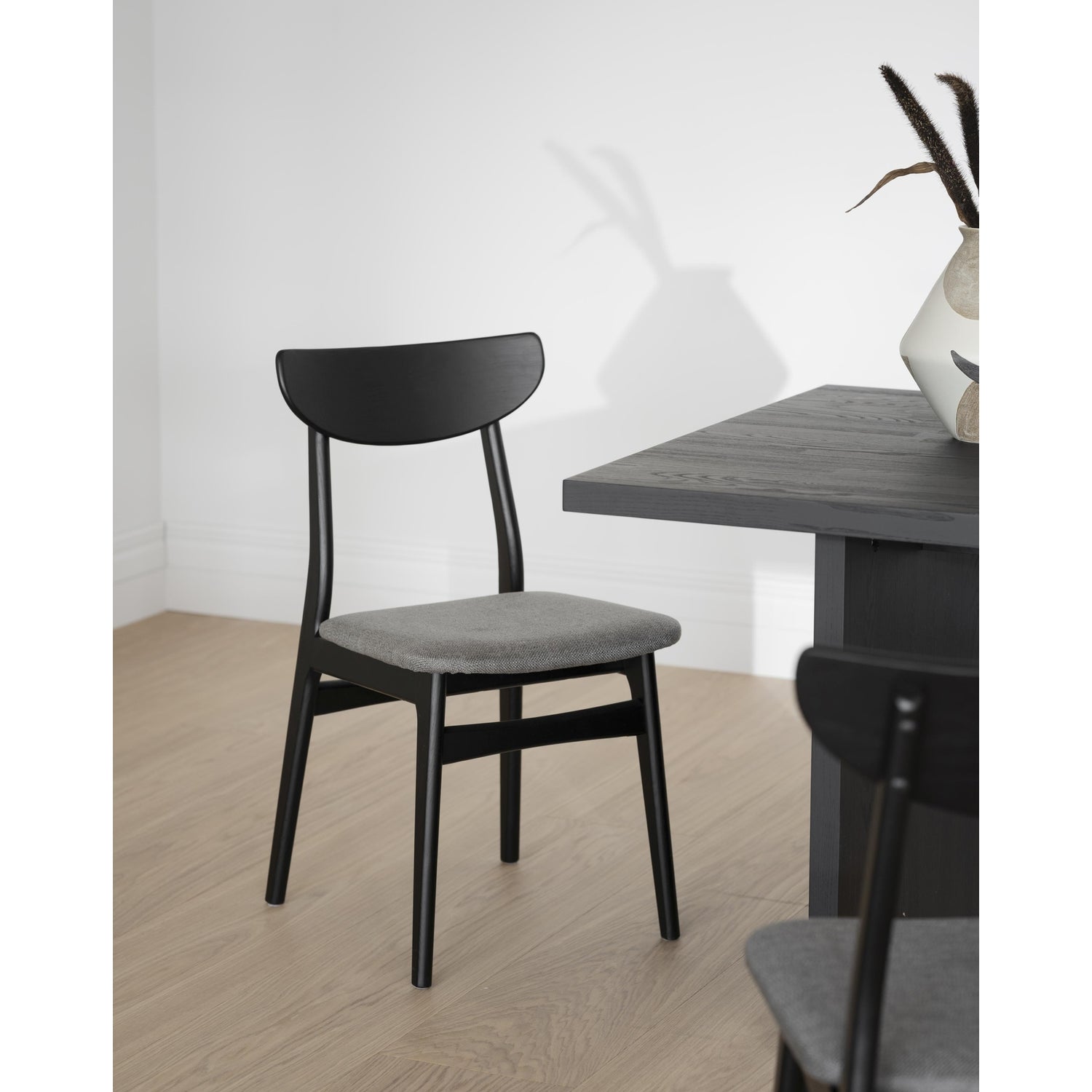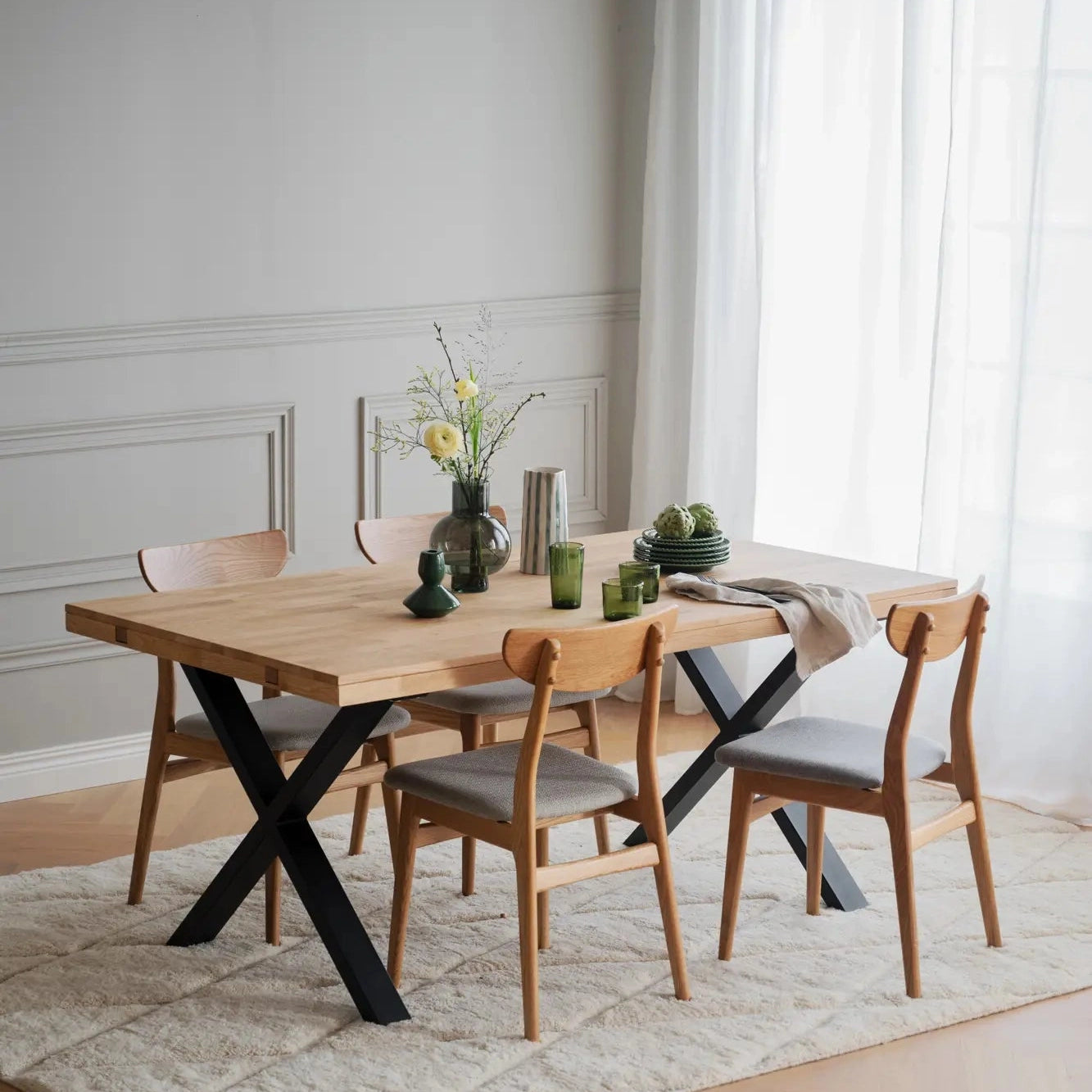Rodham spisestol i brun eik med beige sete er en stilren og tidløs stol som kombinerer moderne design med klassisk eleganse. Stolen er laget av solid eik i både ramme og ryggstøtte, noe som gir høy kvalitet og lang holdbarhet. Det polstrede setet er kledd i et elegant stoff som gir god sittekomfort og et eksklusivt uttrykk. Rodham spisestol finnes i flere naturlige farger og passer perfekt sammen med spisebord som Tyler, Gardner Emmet og flere.