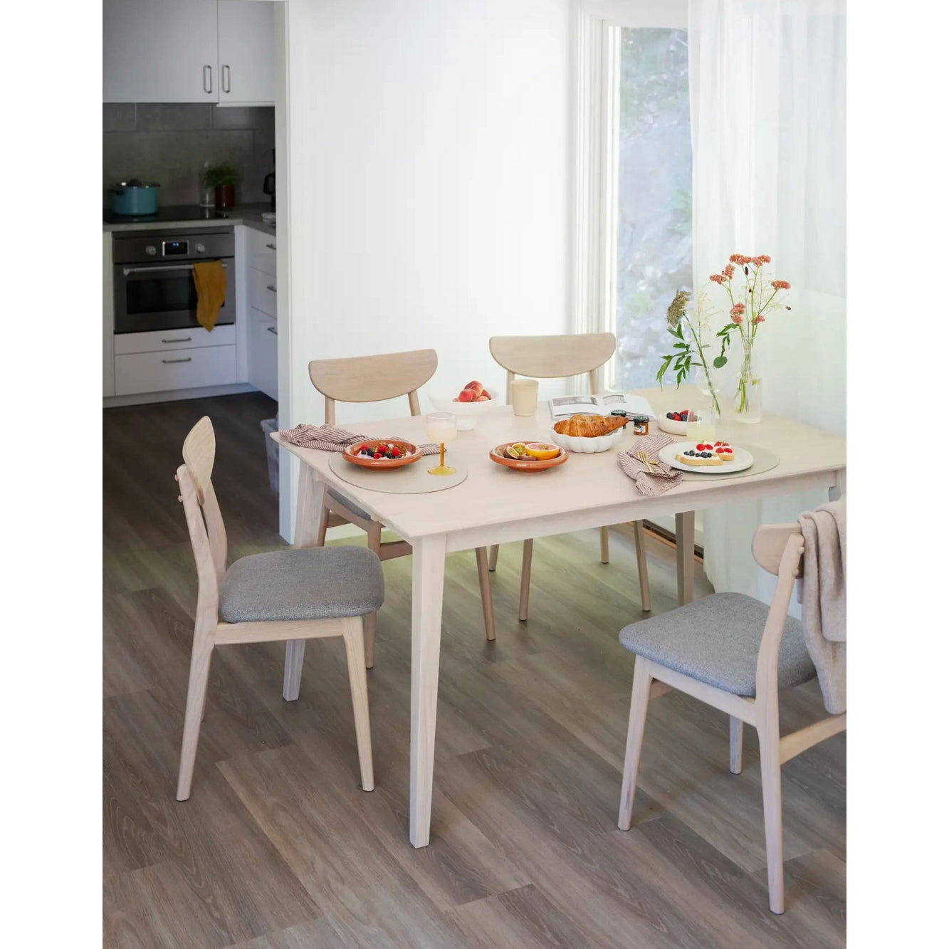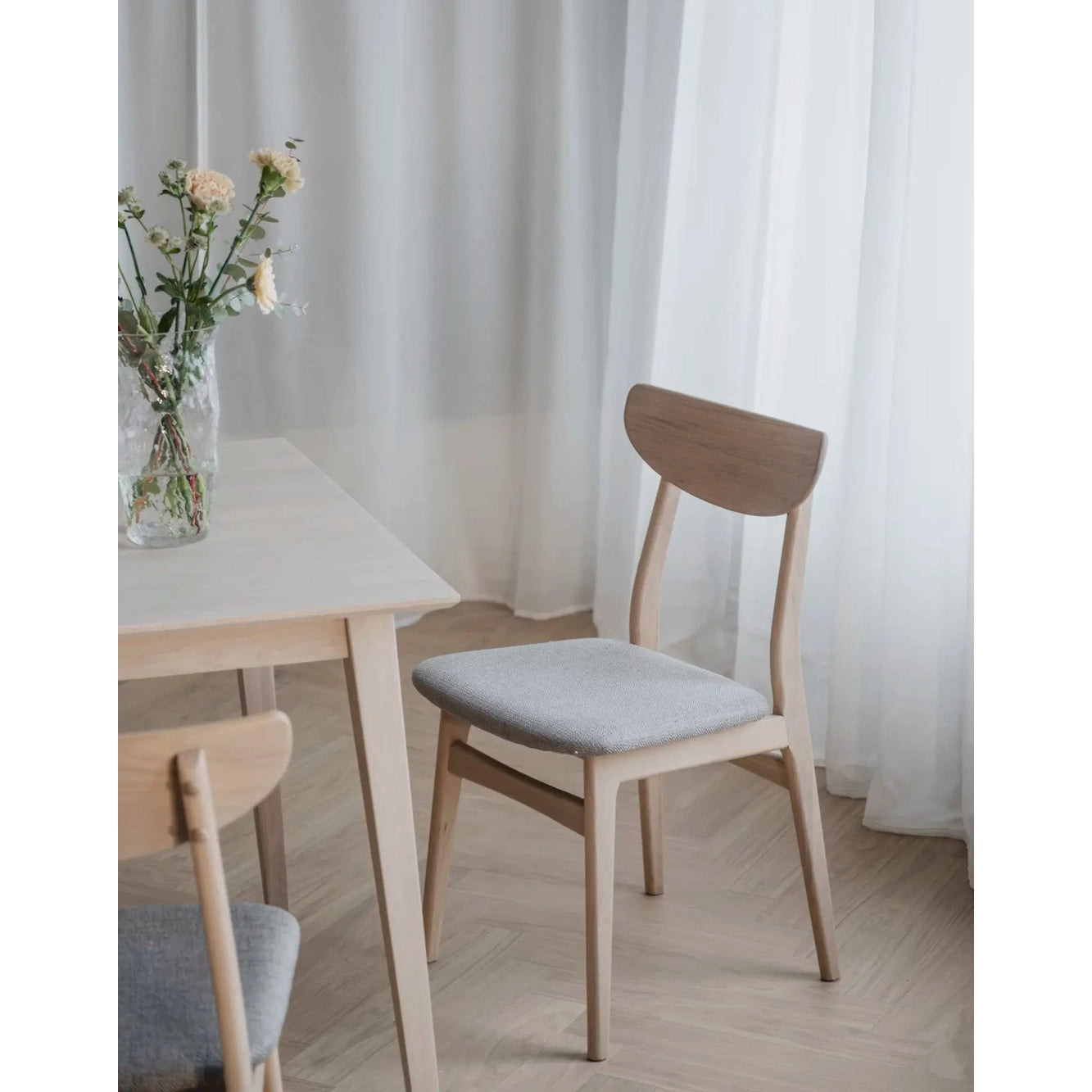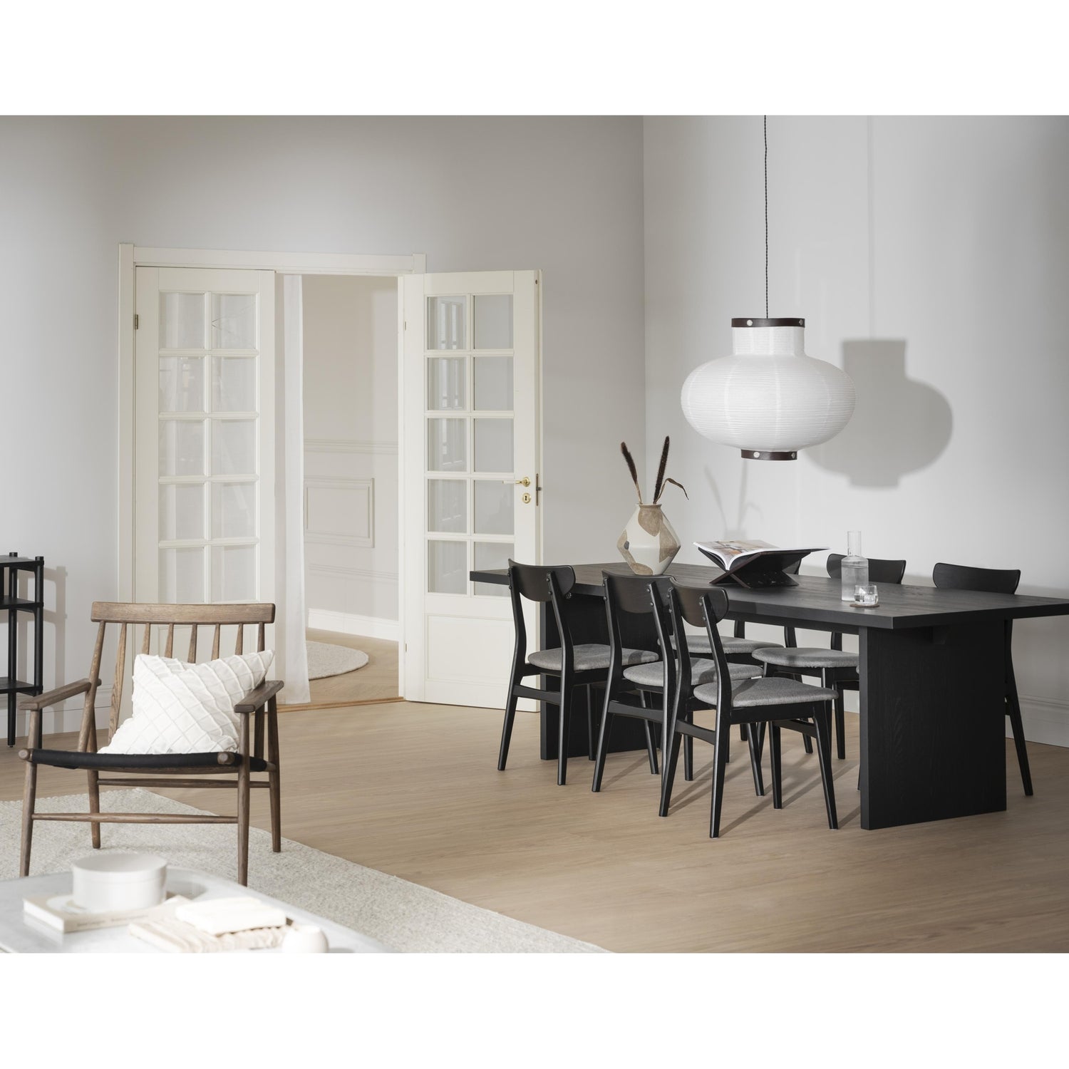 Materiale: Massiv eik i ramme og ryggstøtte. Sete i kryssfiner med polypropylenstoff.