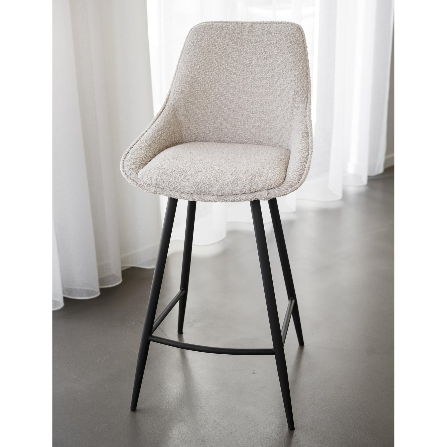 Sierra barstol i bouclé-stoff er den perfekte kombinasjonen av moderne design og komfort. Med sin høye rygg og fotstøtte gir denne barstolen en ekstra behagelig sitteopplevelse, enten du bruker den ved kjøkkenøya eller barbordet. Den stilige utformingen gjør at den passer inn i ethvert interiør, og den er ideell for både hjem og kommersielle miljøer.
