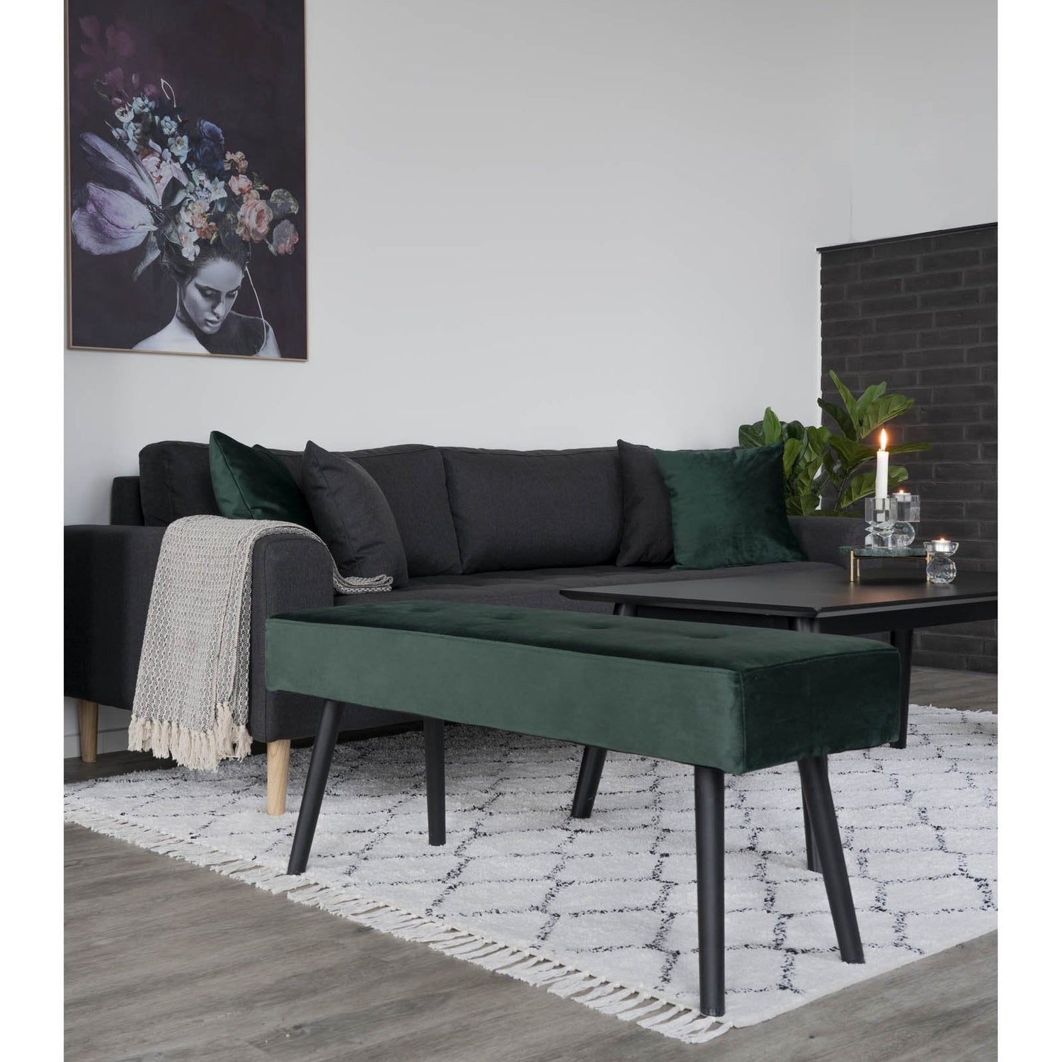 Denne elegante benken i velour kombinerer stil og komfort på en enestående måte. Med sitt luksuriøse trekk og sofistikerte design, blir den et blikkfang i ethvert rom. De sorte benene gir en moderne kontrast til det myke velourstoffet, og skaper en harmonisk balanse mellom klassisk og moderne estetikk. Perfekt for både entré, stue eller soverom, denne benken gir et snev av eleganse og funksjonalitet til ditt hjem.