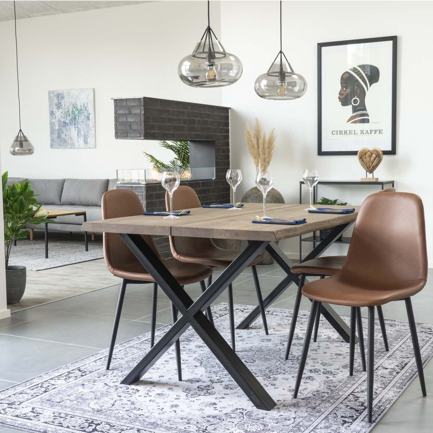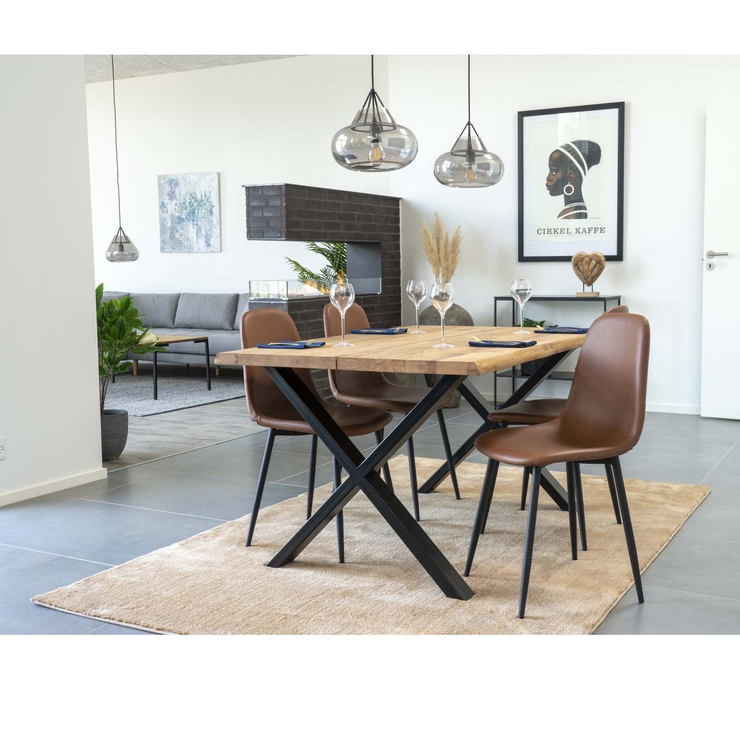 Denne spisebordsstolen kombinerer stil og komfort på en elegant måte. Setet er trukket i slitesterkt PU-materiale som gir en luksuriøs følelse og et vintage preg. De sorte benene gir en moderne kontrast og sikrer stabilitet og holdbarhet. Stolen er designet for å passe inn i ulike interiørstiler, fra klassisk til moderne, og vil være et flott tillegg til ethvert spiseområde. Med sitt ergonomiske design gir den god støtte og komfort, slik at du kan nyte lange måltider med familie og venner.