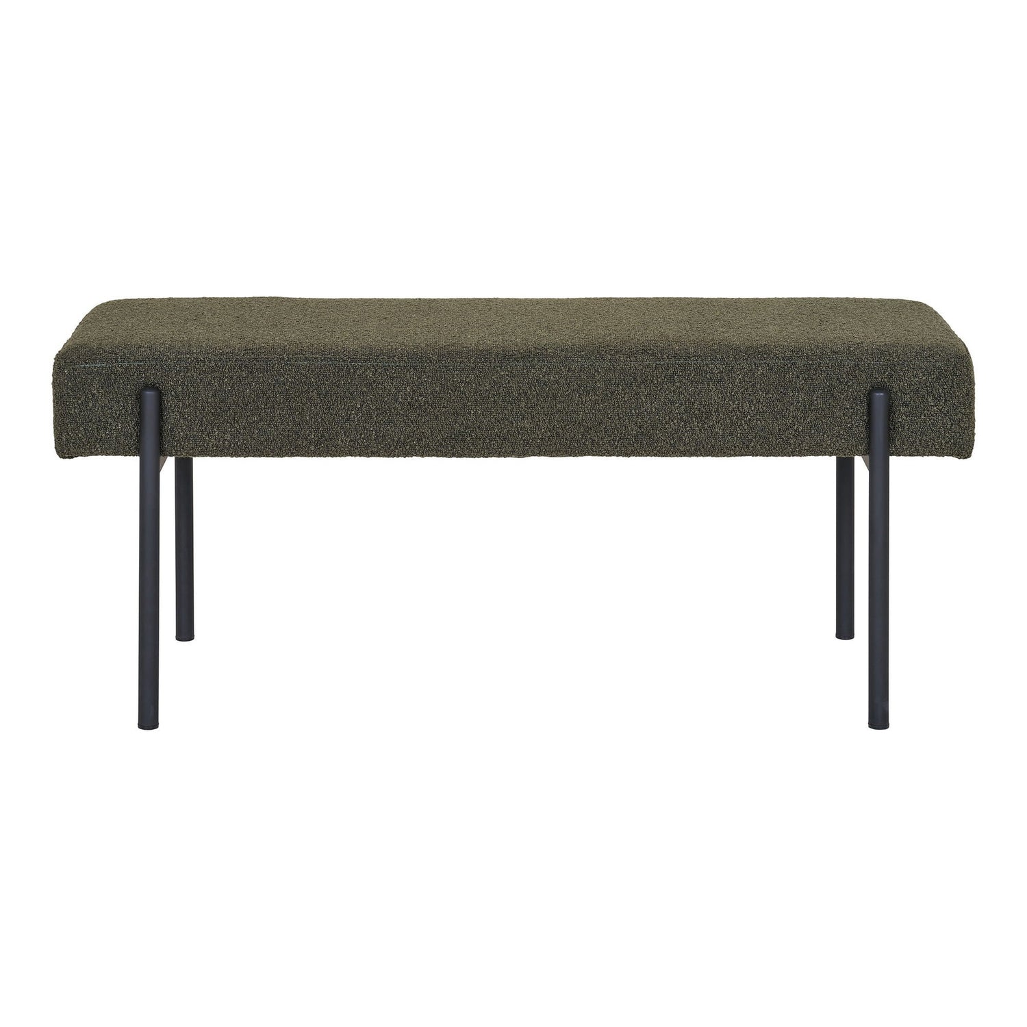 Oppdag Swindon benk i stilren bouclé med en dyp grønn farge og elegante svarte ben. Perfekt for stuen eller gangen, gir den et moderne preg til ethvert rom. En praktisk og stilfull løsning for ekstra sitteplasser. Gjør hjemmet ditt komplett!
