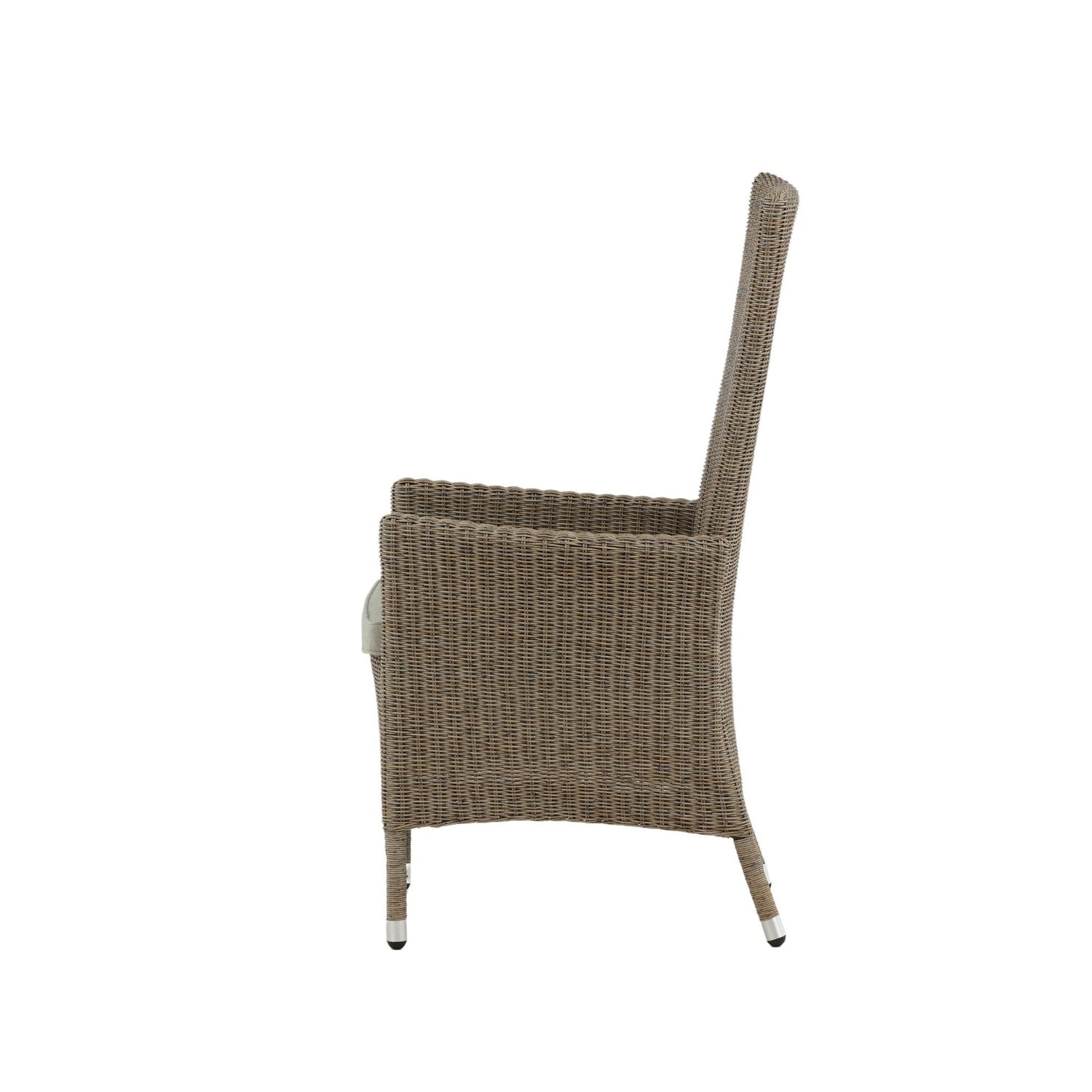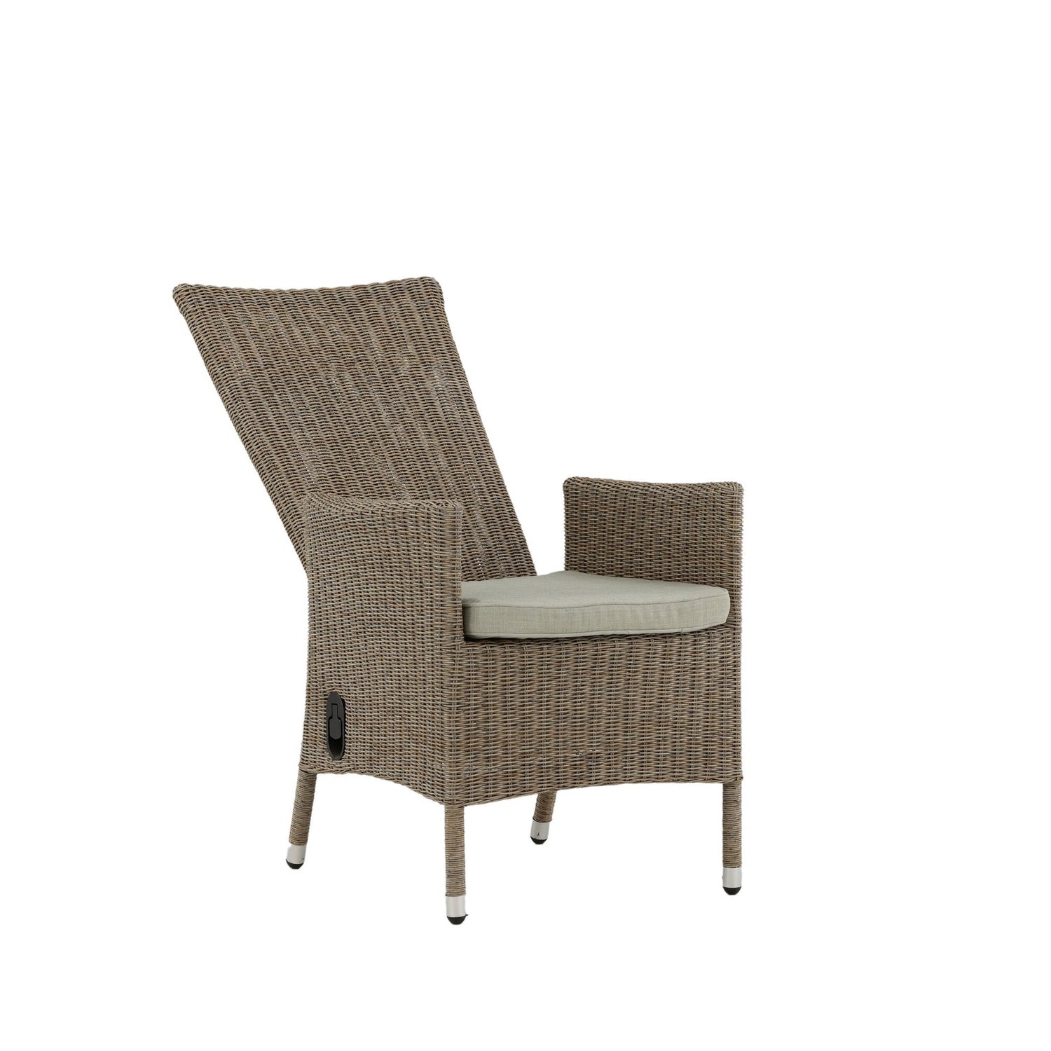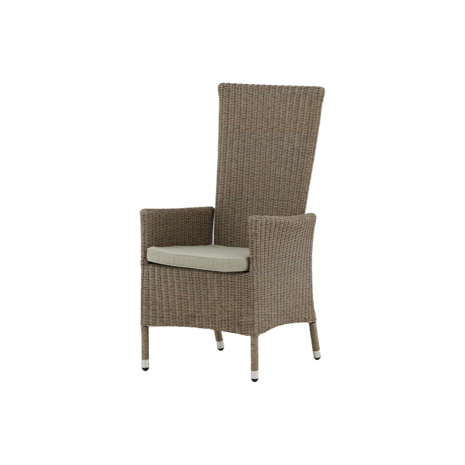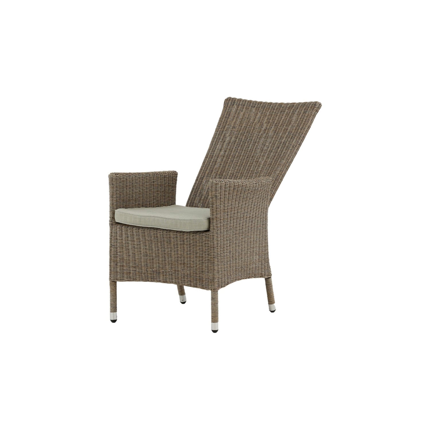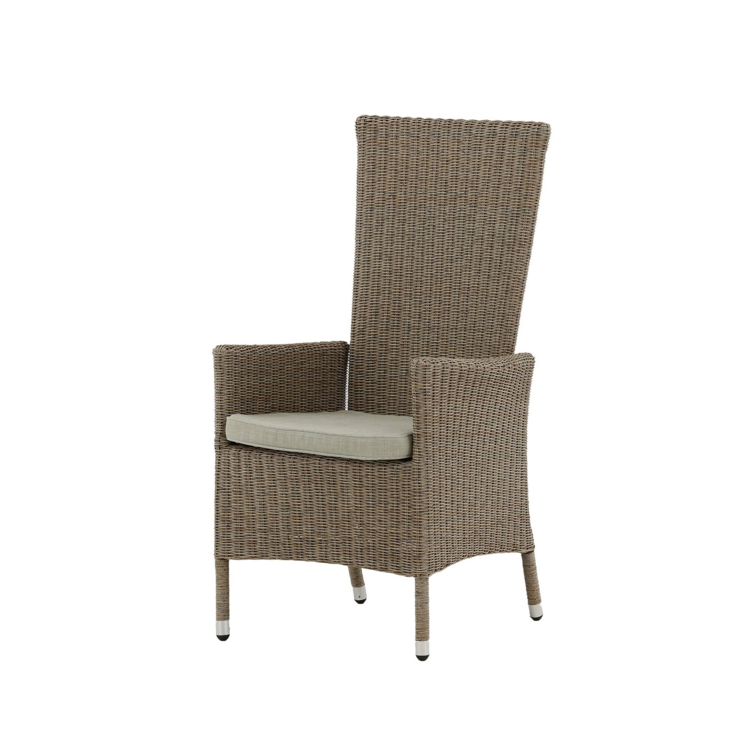 Toscana er en klassisk lys beige lenestol med en litt høyere foldbar ryggdel. En ramme i aluminium og kunstrotting, to holdbare materialer som gir deg en holdbar spisestol som står over tid. Sitt komfortabelt og luksuriøst rundt spisebordet denne sommeren og nyt hyggelige måltider utendørs.