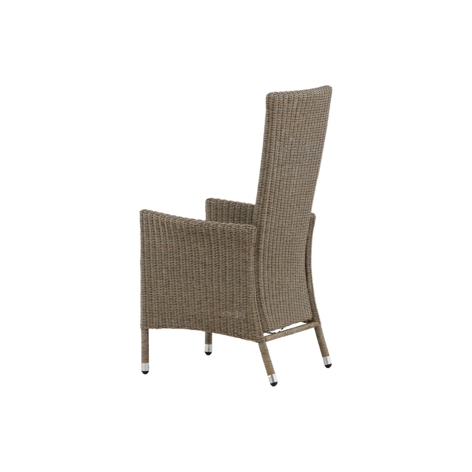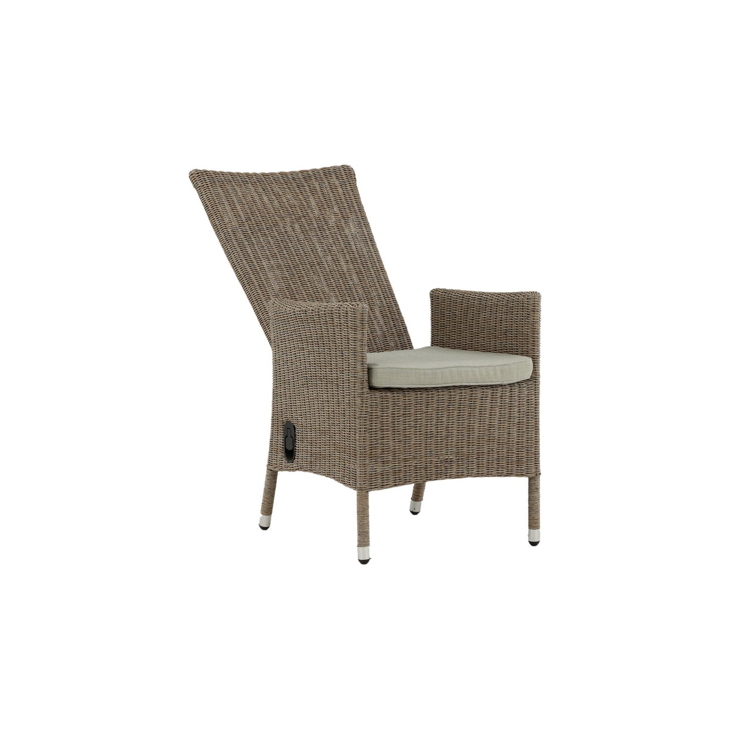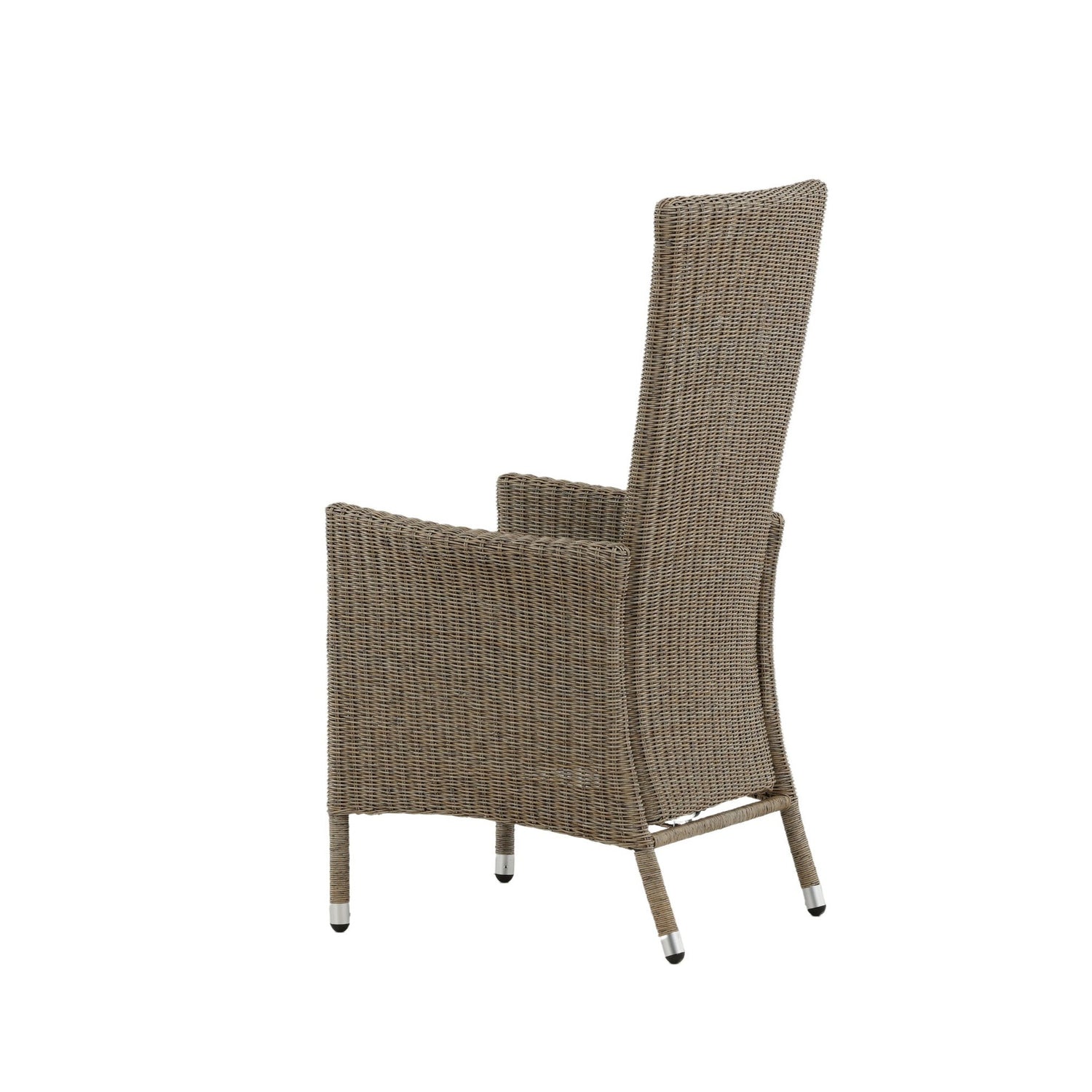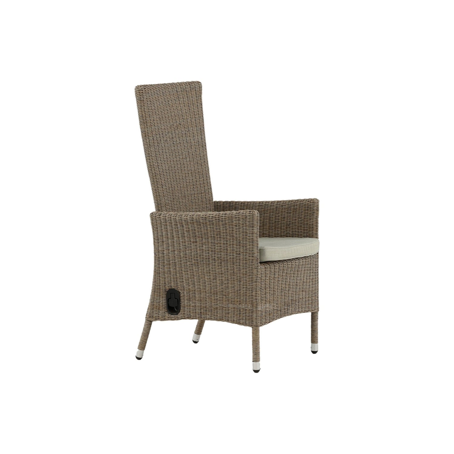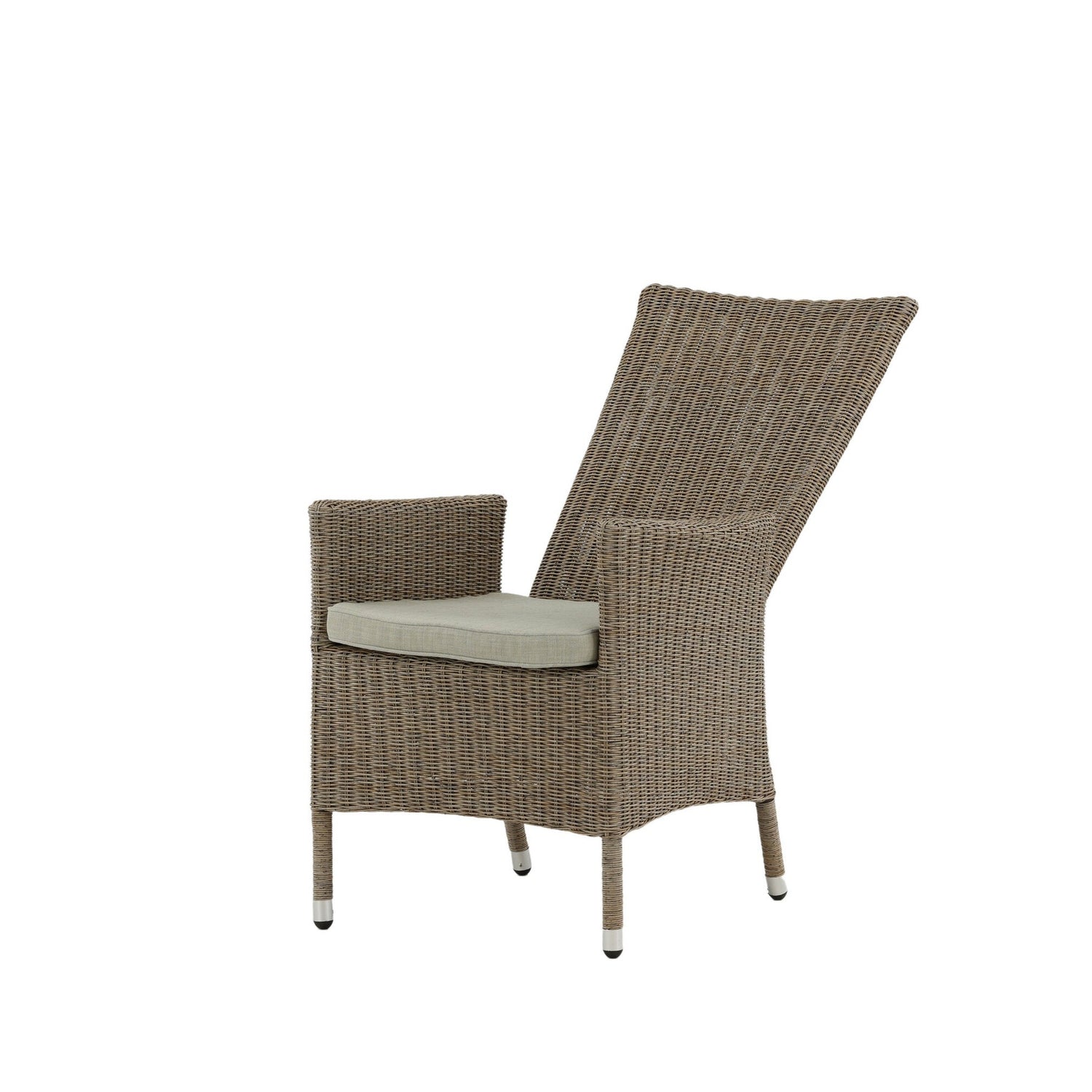 Toscana er en klassisk lys beige lenestol med en litt høyere foldbar ryggdel. En ramme i aluminium og kunstrotting, to holdbare materialer som gir deg en holdbar spisestol som står over tid. Sitt komfortabelt og luksuriøst rundt spisebordet denne sommeren og nyt hyggelige måltider utendørs.
