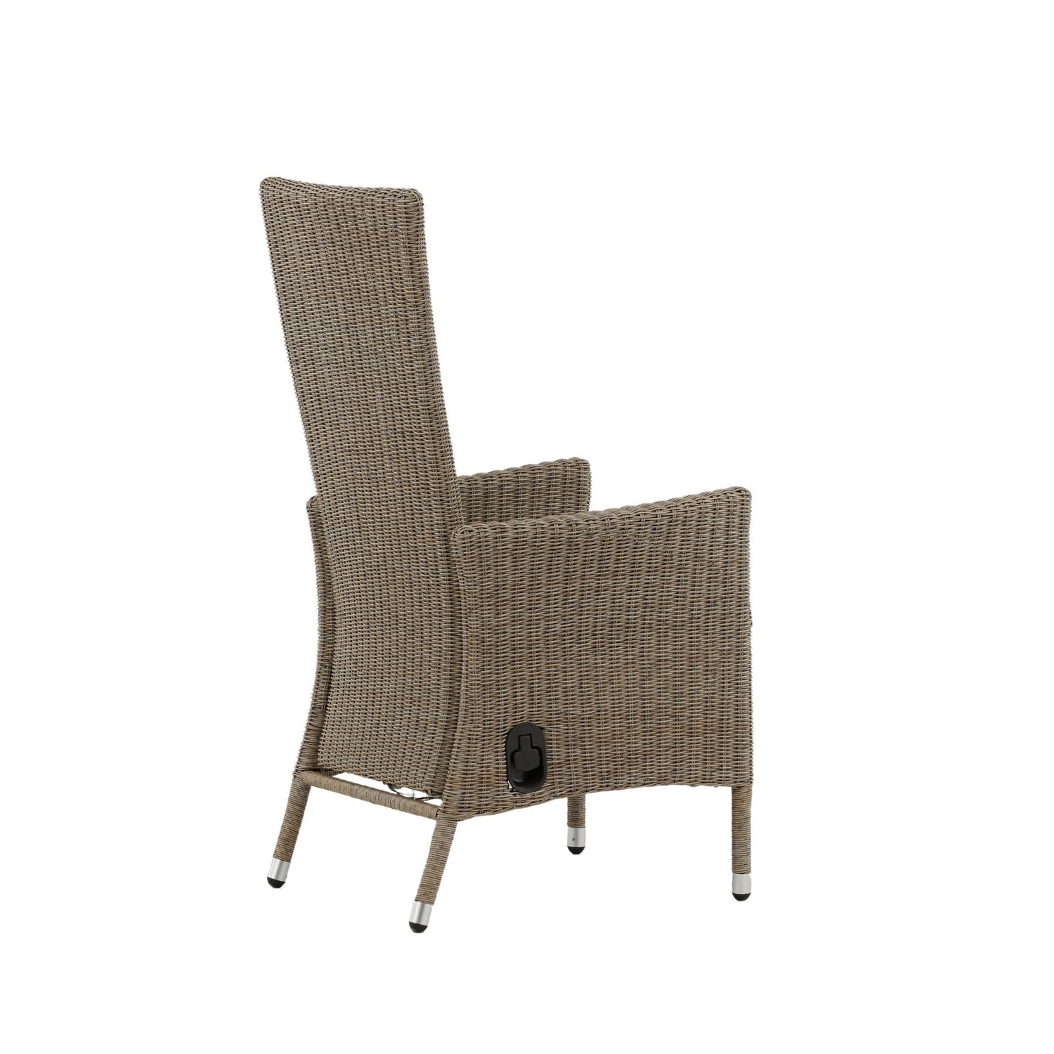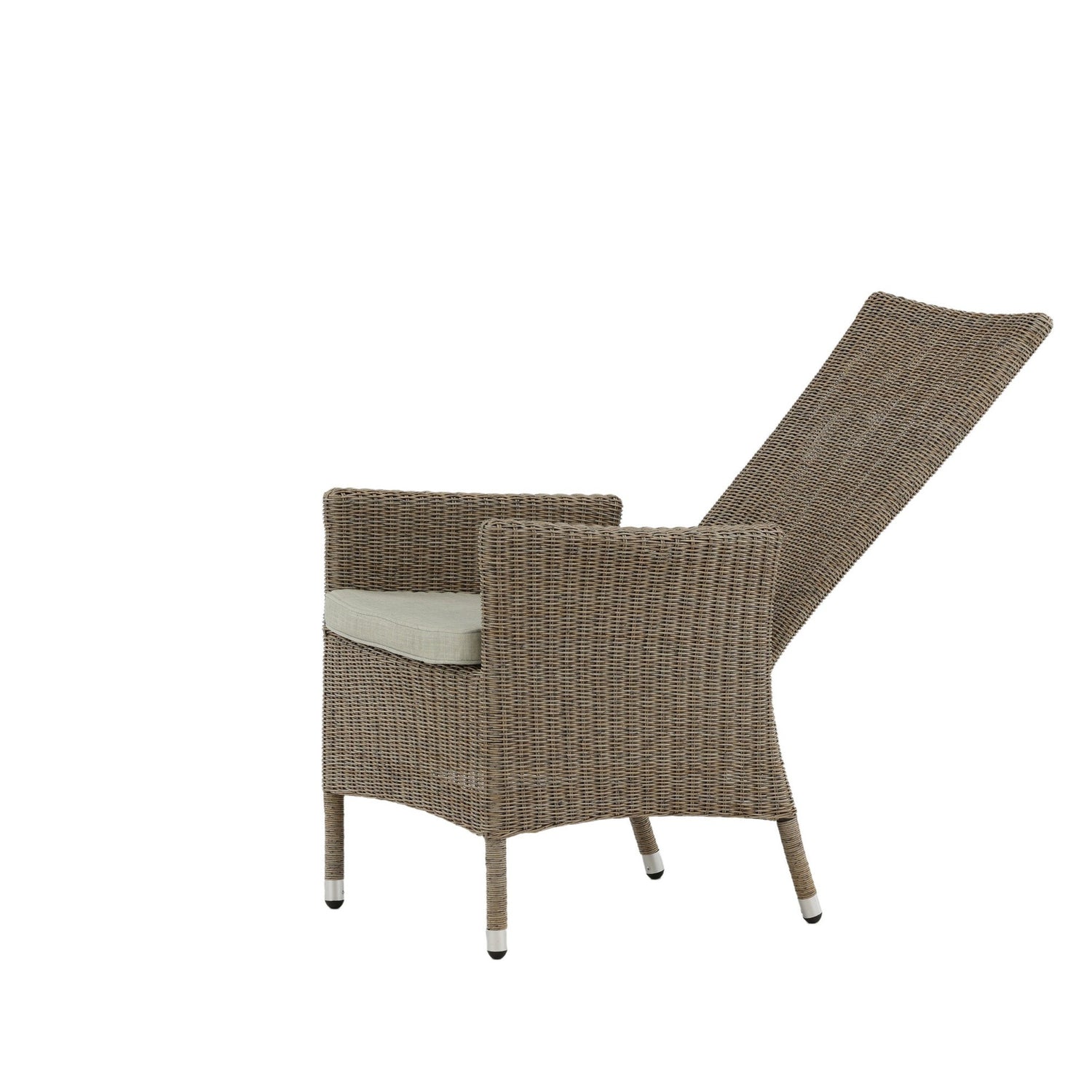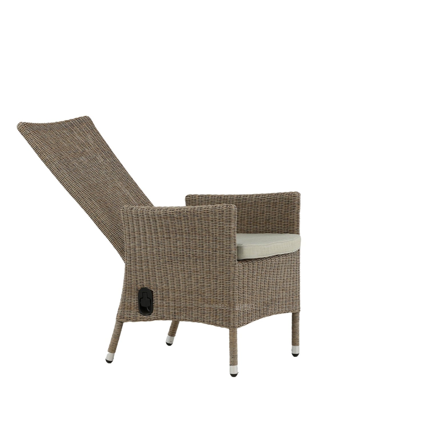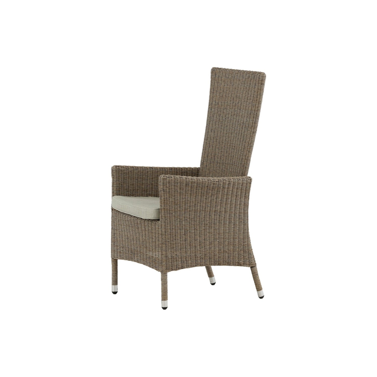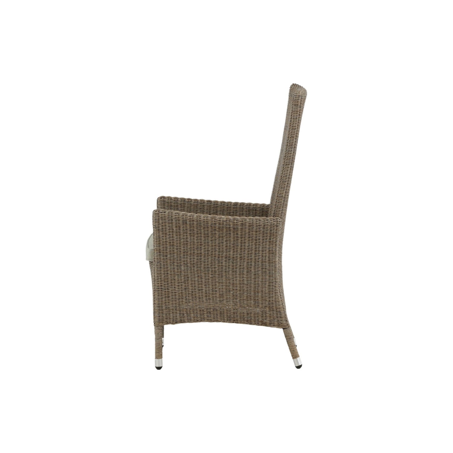 Toscana er en klassisk lys beige lenestol med en litt høyere foldbar ryggdel. En ramme i aluminium og kunstrotting, to holdbare materialer som gir deg en holdbar spisestol som står over tid. Sitt komfortabelt og luksuriøst rundt spisebordet denne sommeren og nyt hyggelige måltider utendørs.