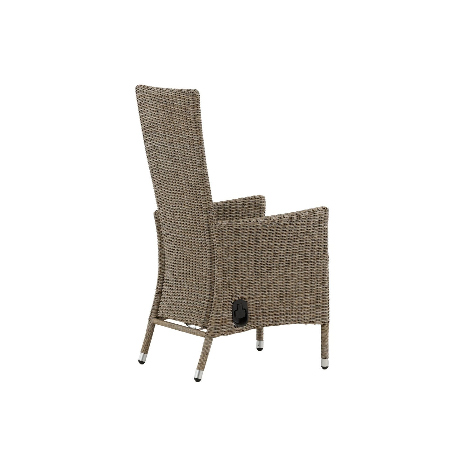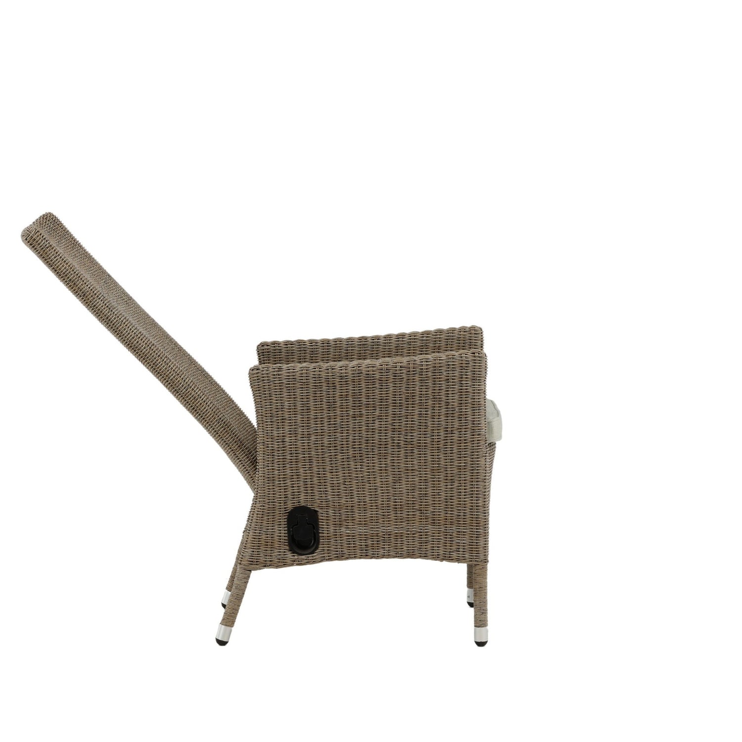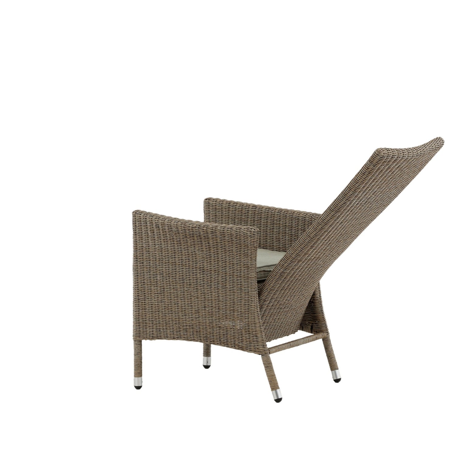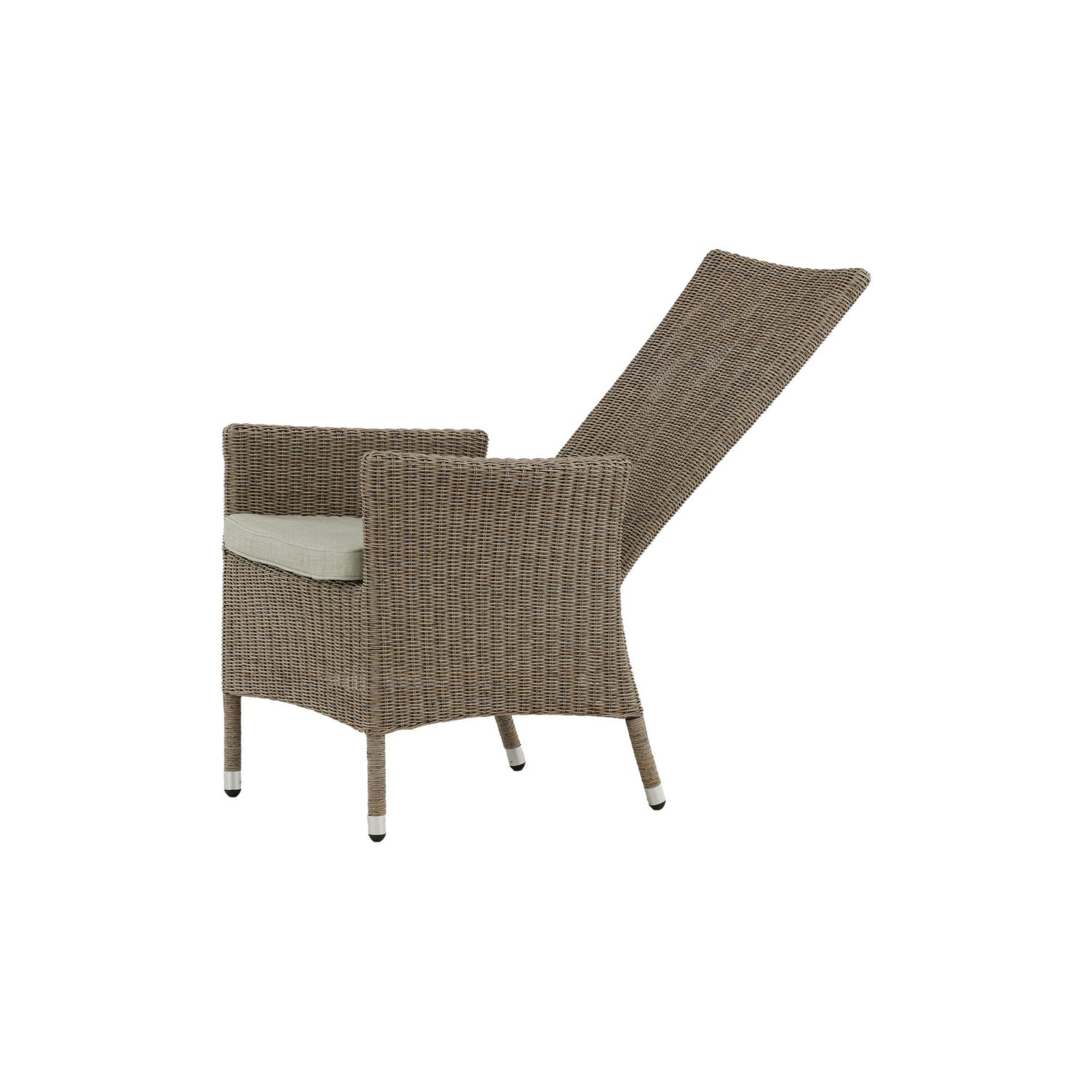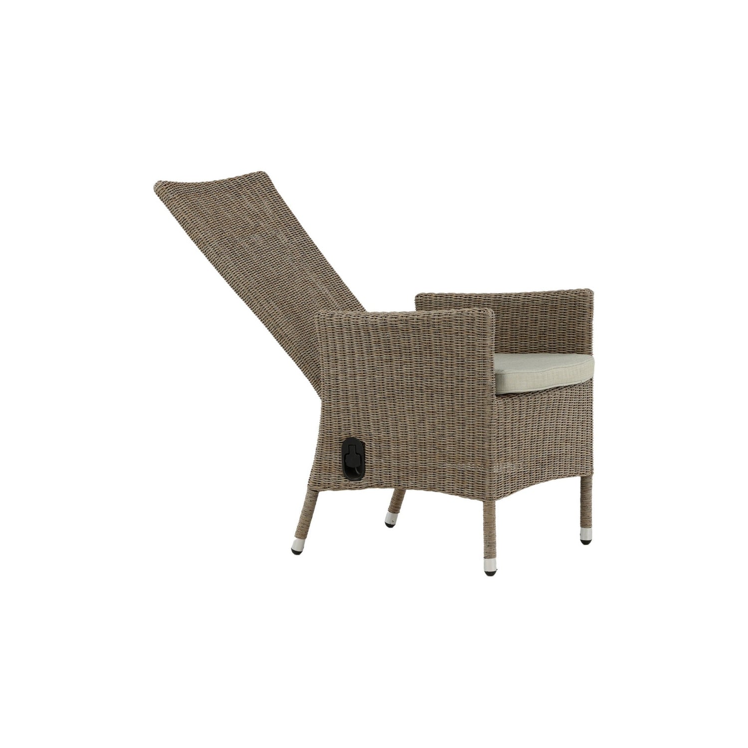 Toscana er en klassisk lys beige lenestol med en litt høyere foldbar ryggdel. En ramme i aluminium og kunstrotting, to holdbare materialer som gir deg en holdbar spisestol som står over tid. Sitt komfortabelt og luksuriøst rundt spisebordet denne sommeren og nyt hyggelige måltider utendørs.