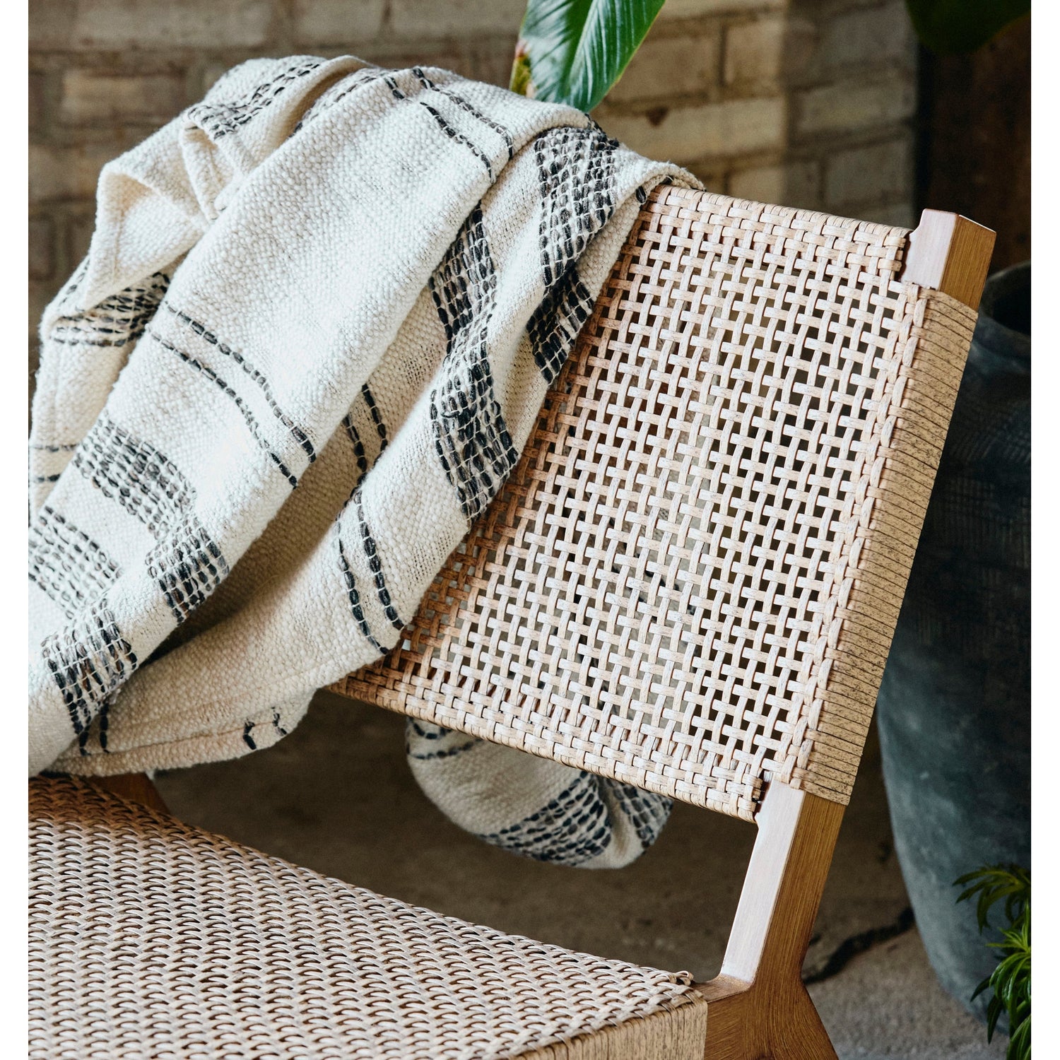 VASAI lounge havestol i flettet polyrattan, farge natur.