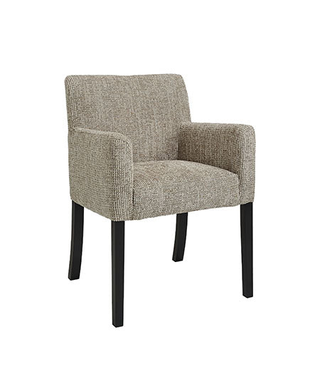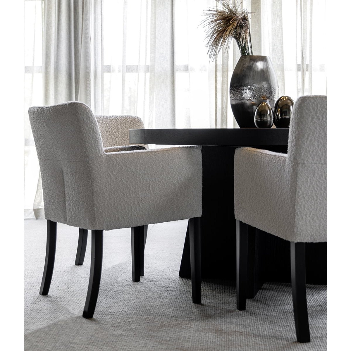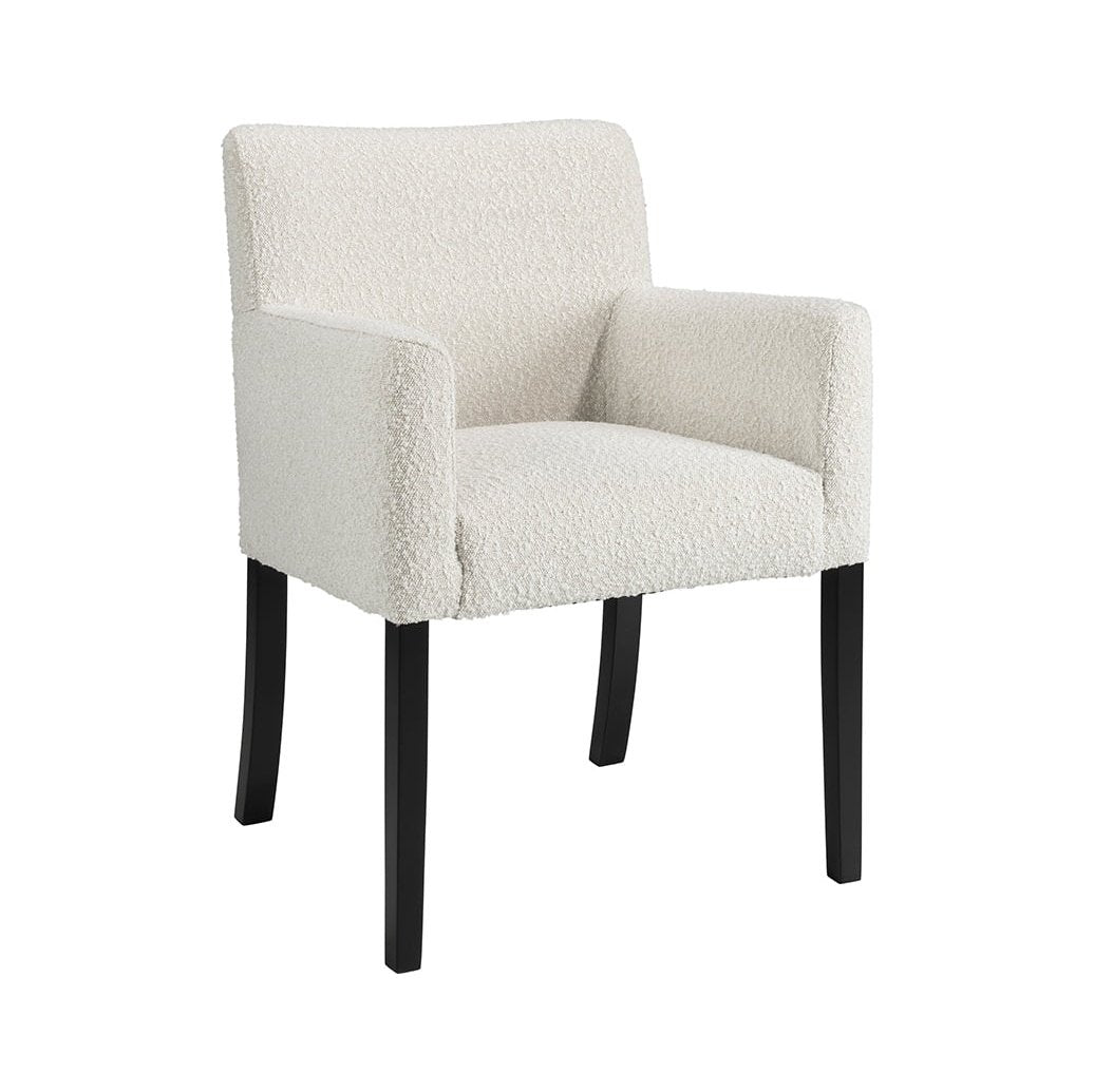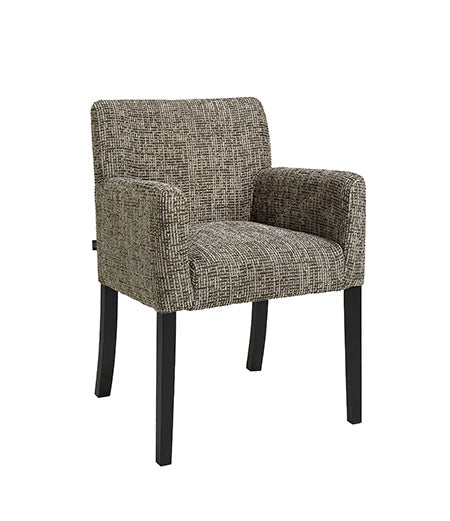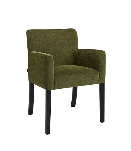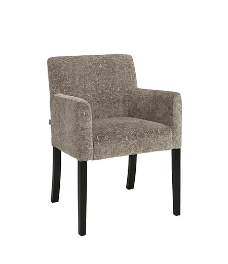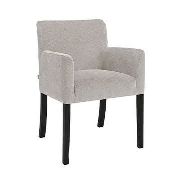 Victoria i Nobu Cream er en klassisk spisestuestol i stoff der rette linjer møter enkelhet og stil. Den godt utformede setet og ryggstøtten tilbyr eksepsjonell komfort, slik at du kan sitte komfortabelt under lange måltider eller hyggelige sammenkomster med venner og familie. De rette armlenene gir ekstra støtte og en avslappet følelse. Stolens ramme er laget av massivt tre, kryssfiner og MDF med nozag-fjårer. Benene er laget av svart bjørketre. Setet og ryggen er laget av kaldskum og syntetiske fibre. Victoria er tilgjengelig i stoffene Nobu Cream og Rave Liver. Nobu Cream - 100% polyester.