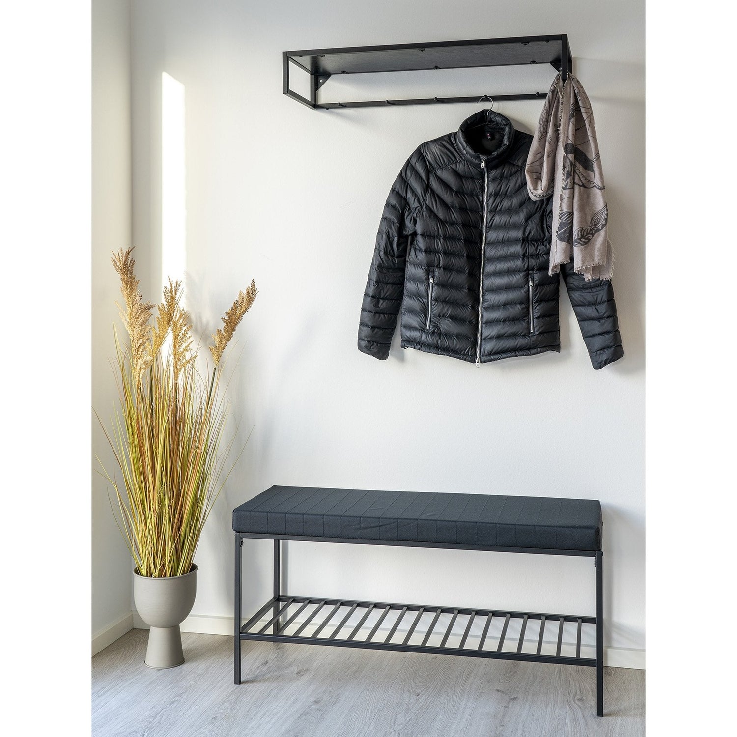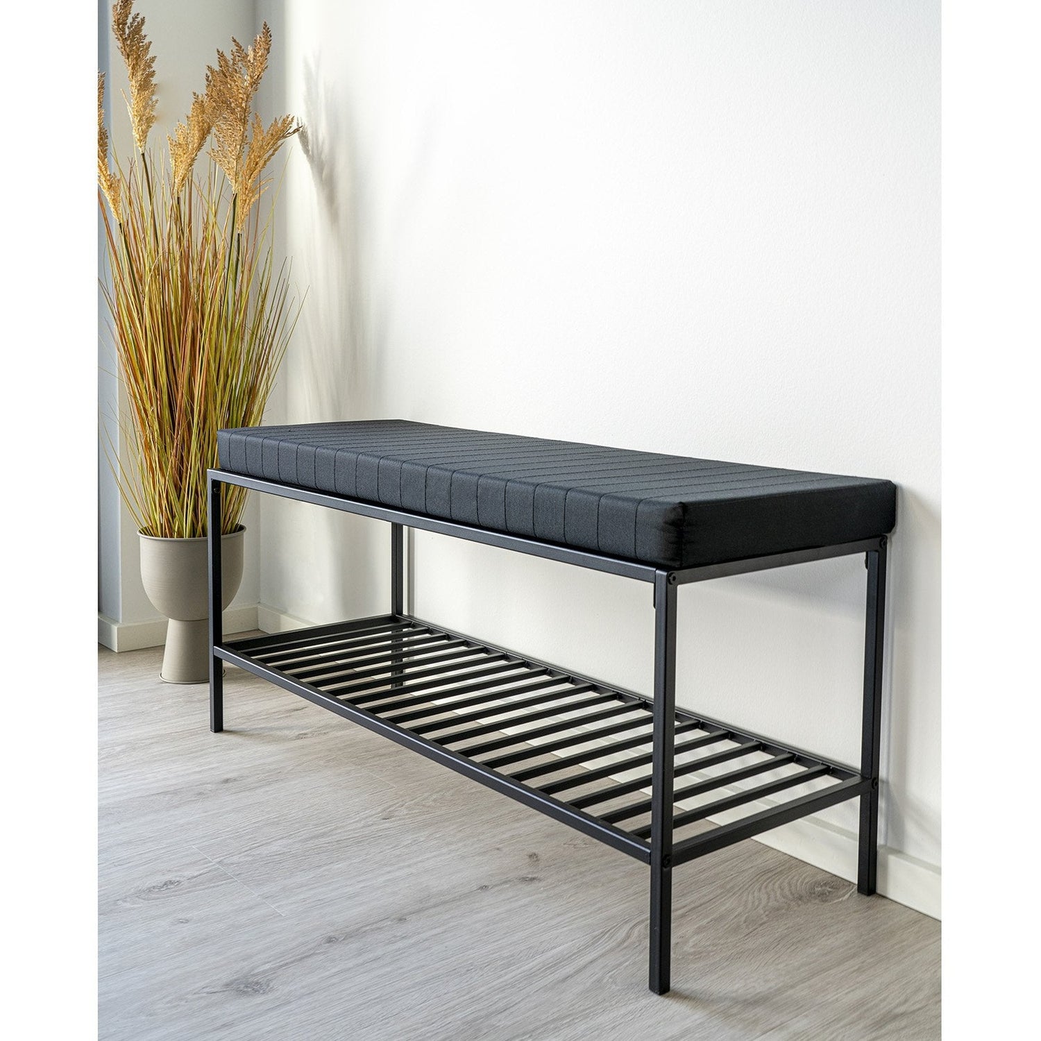 Denne elegante benken kombinerer funksjonalitet og stil på en enestående måte. Med en integrert hylle under setet, tilbyr den praktisk oppbevaringsplass for sko, bøker eller andre småting, noe som gjør den ideell for både entréen, stuen eller soverommet. Den medfølgende hynden gir ekstra komfort, slik at du kan sitte behagelig mens du tar på deg skoene eller slapper av. De solide benene gir stabilitet og holdbarhet, og det moderne designet passer perfekt inn i ethvert interiør. Dette er en allsidig og praktisk løsning for å holde hjemmet ditt organisert og stilfullt.