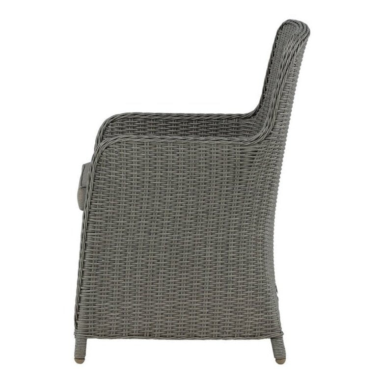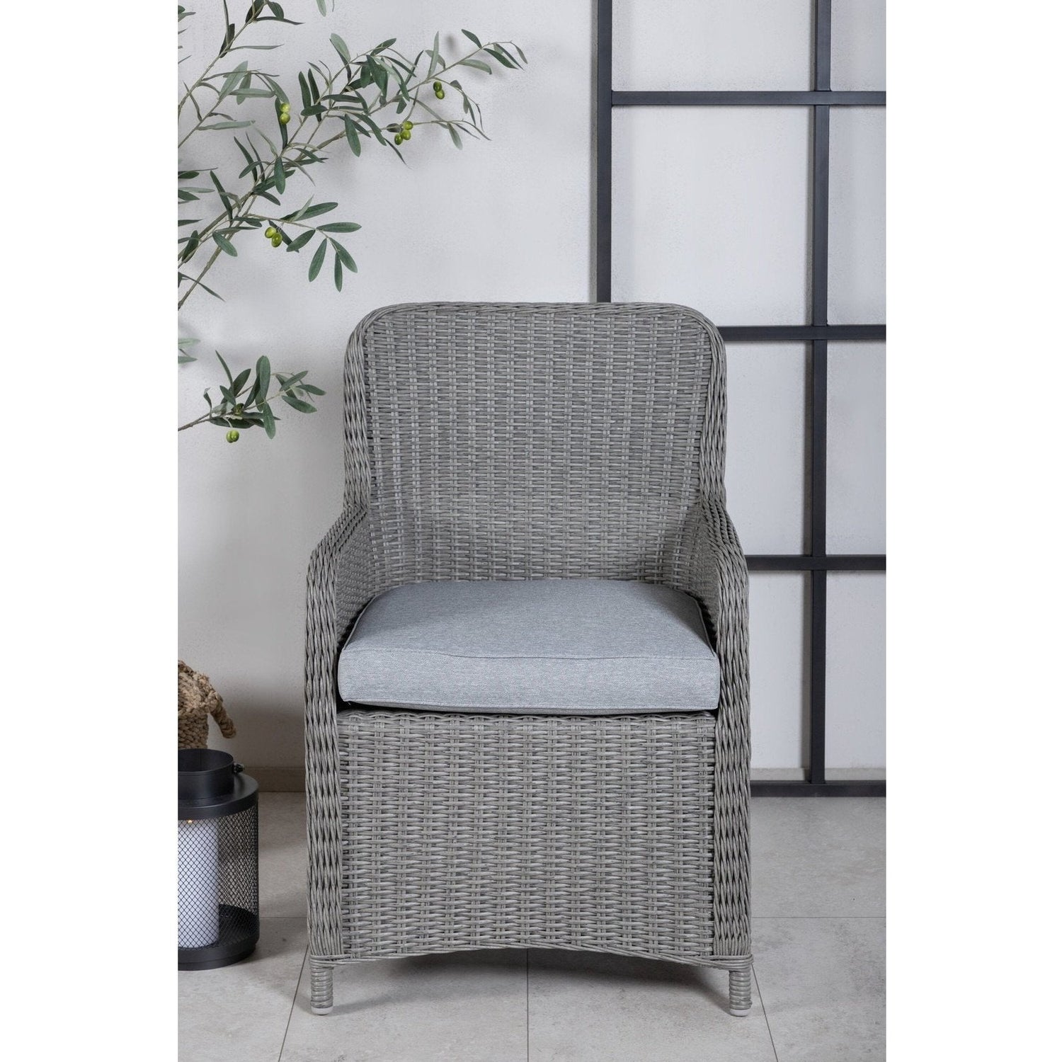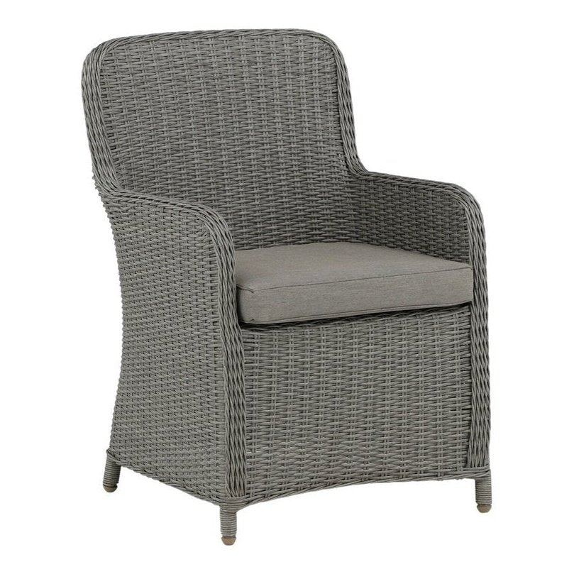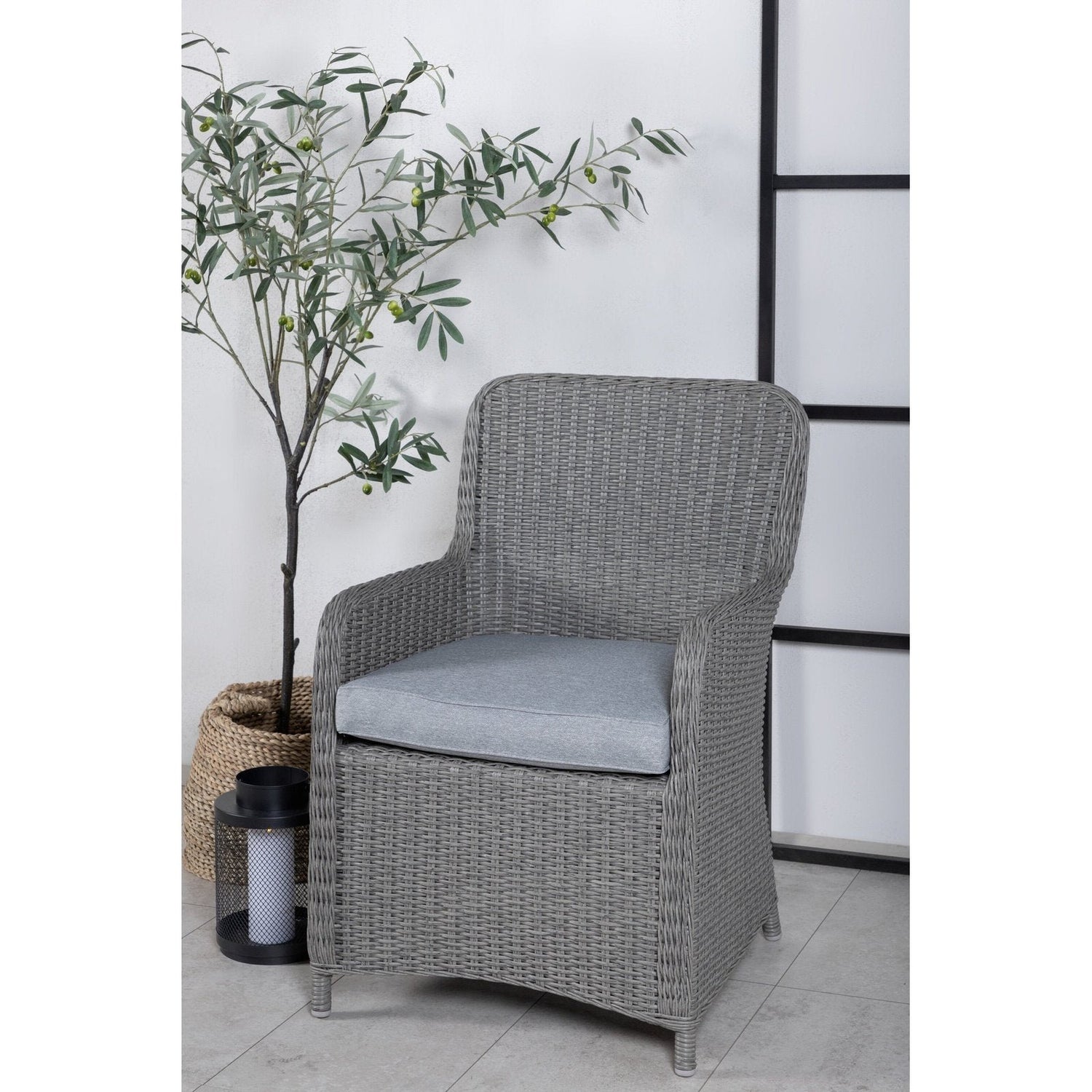 Opprett en avslappende blikkfang på terrassen denne sommeren med denne spisestolen fra Wembley-serien. Den stilige designen og den deilige grå fargen gir et moderne inntrykk. Stolen er en ekte klassiker og passer inn i de fleste hjem. Med høye armlener blir stolen behagelig å sitte i nær bordet. Sett deg komfortabelt og nyt herlige måltider utendørs! Pleieanbefaling: Konstrite er et plastmateriale som er perfekt for vårt skandinaviske klima. Materialet er UV-bestandig og tåler vær og vind. Det faktum at det er UV-bestandig betyr at møblene ikke falmer, men vi anbefaler alltid å oppbevare møblene under en møbelbeskyttelse eller på annen måte tørt og kjølig for å forlenge levetiden.