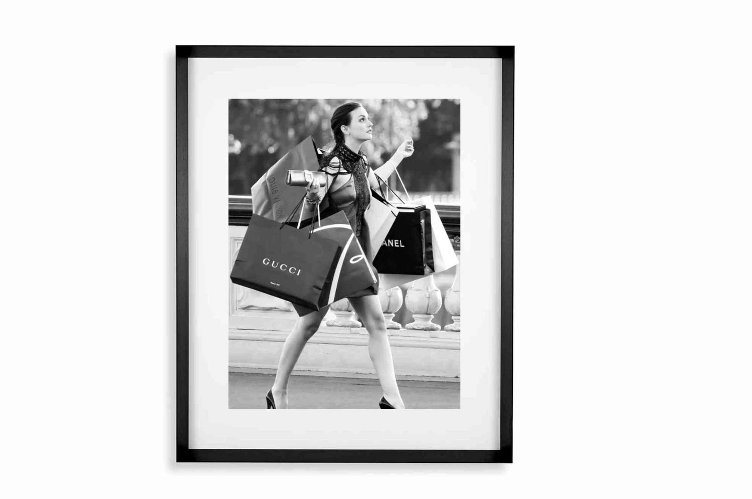 Ikonisk foto av Girl shopping, rammet inn i en tidløs sort smal treramme med passepartout.