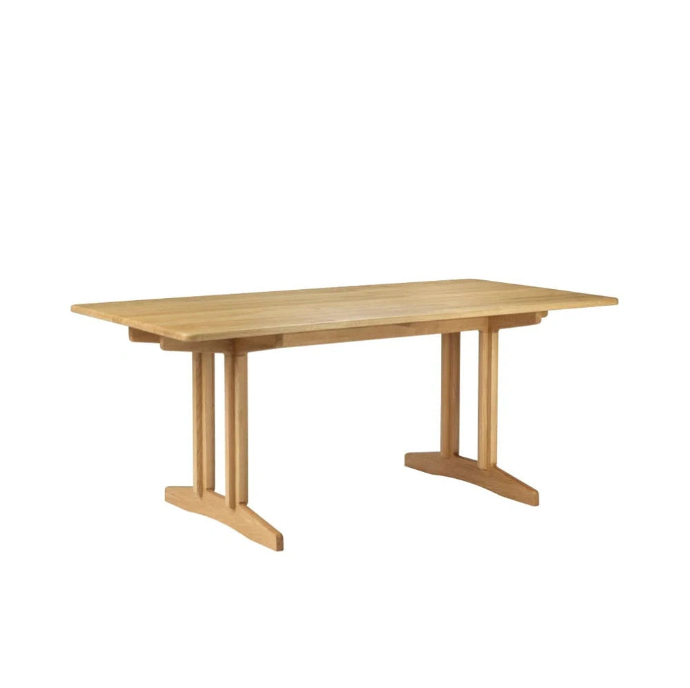Shaker spisebordet, designet av Børge Mogensen for FDB Møbler i 1950, er et tidløst møbel med en unik og elegant form. Til tross for at det først ble produsert mange år senere, har bordet beholdt sin popularitet gjennom tidene. Med sitt karakteristiske understell som trekkes inn under bordplaten, gir bordet et lett og svevende uttrykk samtidig som det gir rikelig med beinplass. Den enkle, rektangulære platen med avrundede kanter er både funksjonell og estetisk tiltalende. Mogensen la stor vekt på at møblene skulle støtte menneskelige aktiviteter, og Shaker bordet er et perfekt eksempel på hans filosofi – funksjonelt, tidløst og tilpasset brukeren.