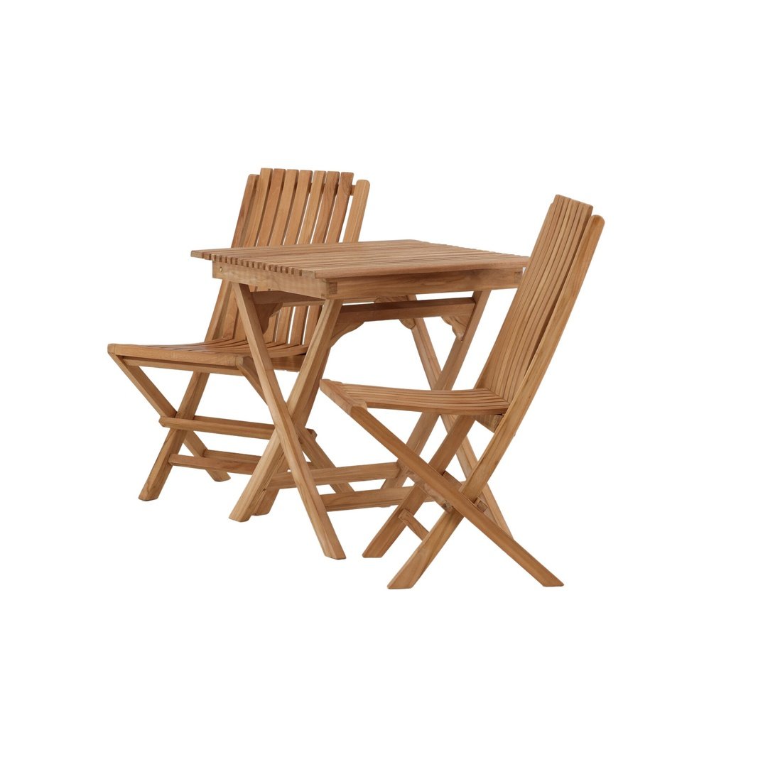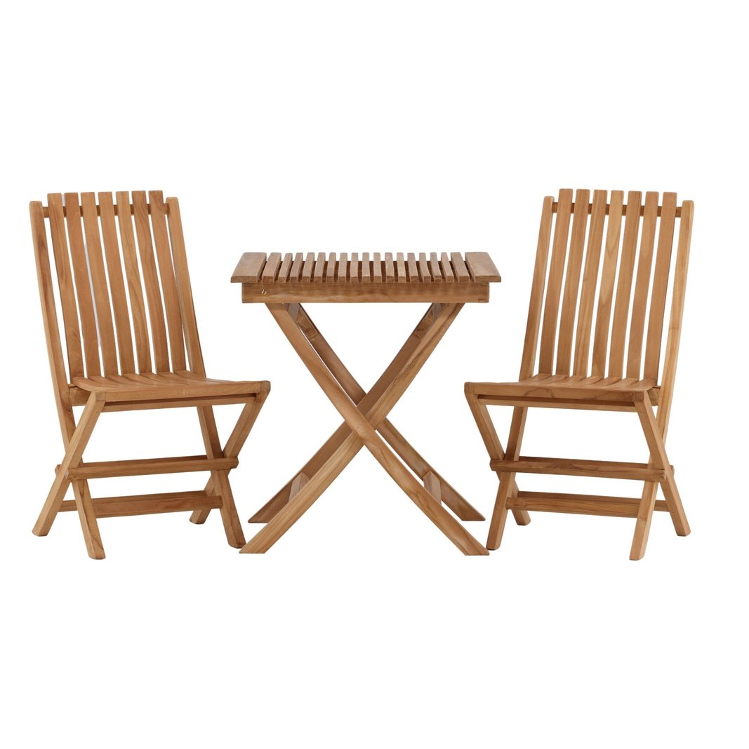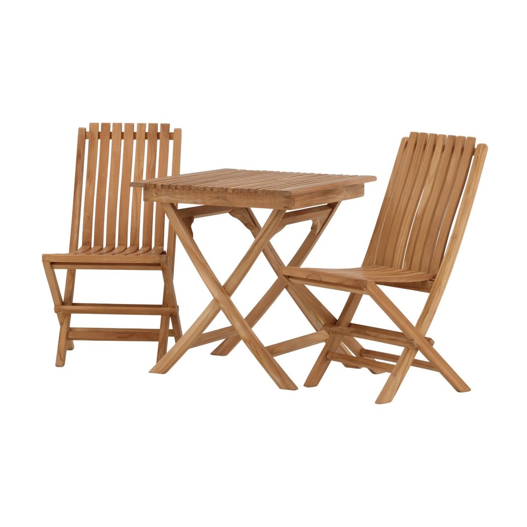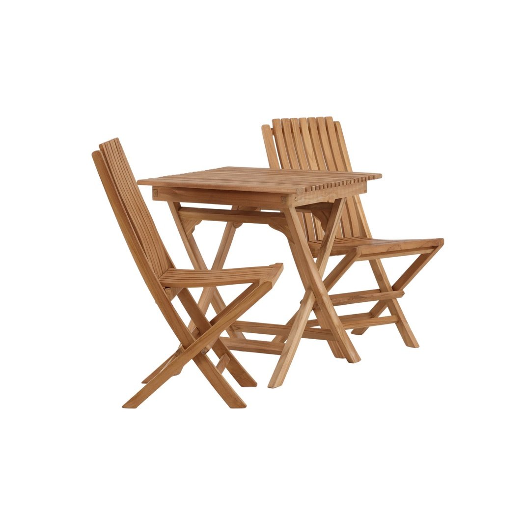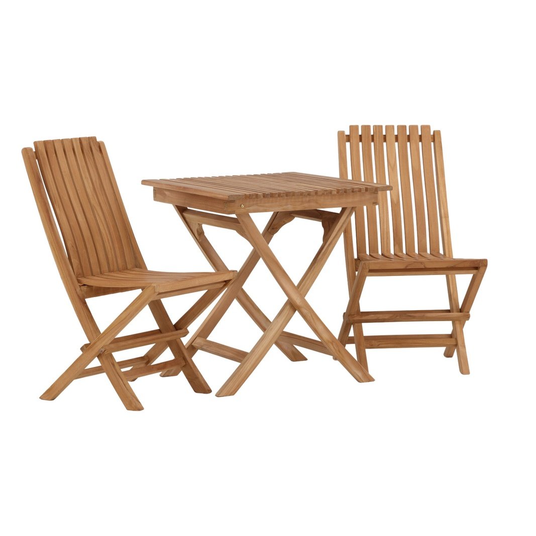 Ghana - Den perfekte kafégruppen for sommerens solfylte kaffetid! Bordet har en minimalistisk design i smakfull teak og er sammenleggbart for praktisk bevegelse og lagring. Stolene er sammenleggbare for optimal avslapning og inviterer deg til mange hyggelige frokoster og ettermiddagskaffe ute på balkongen!