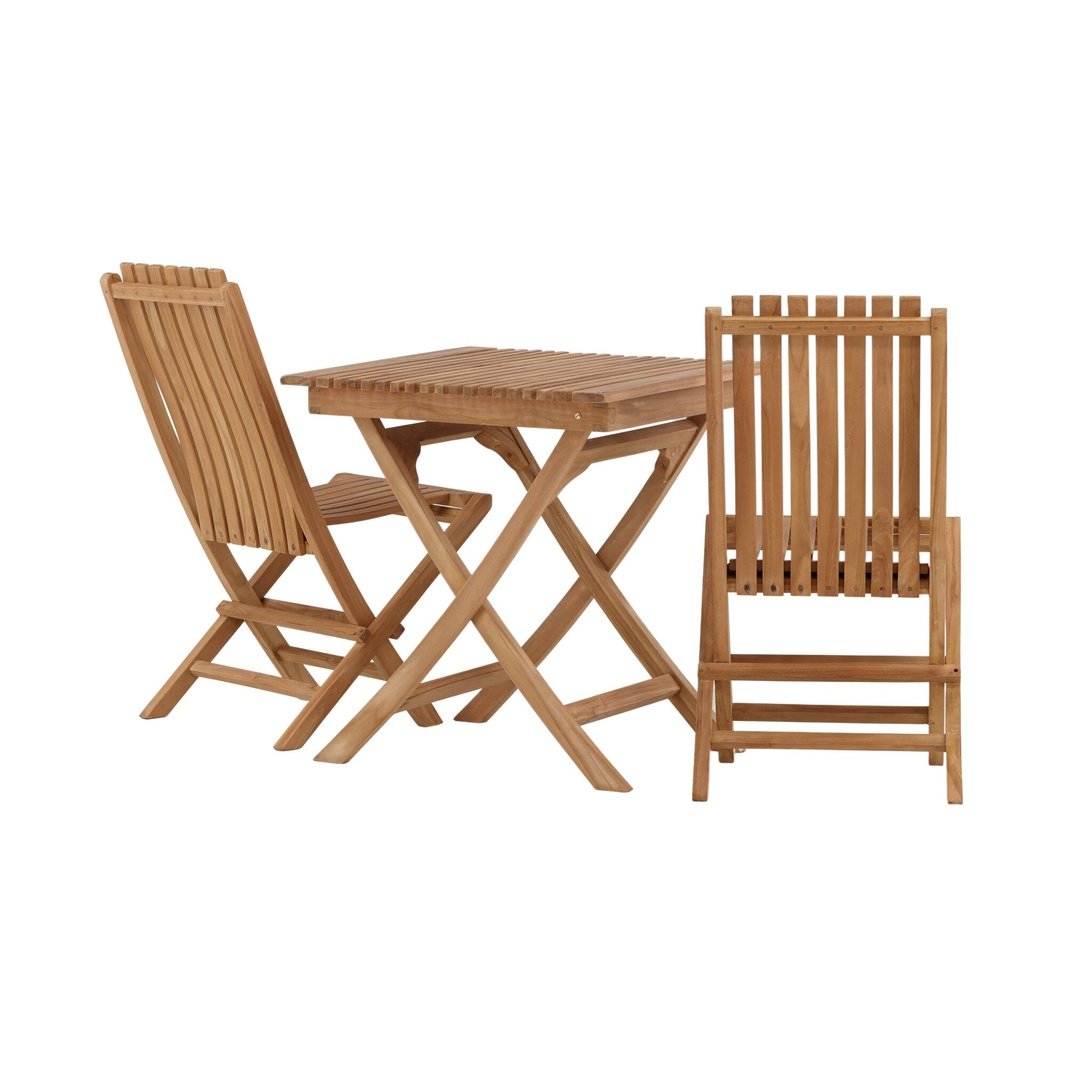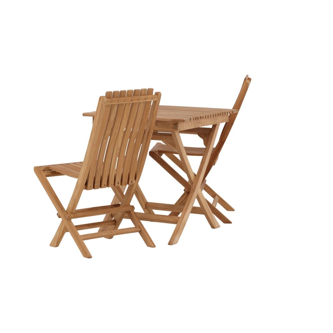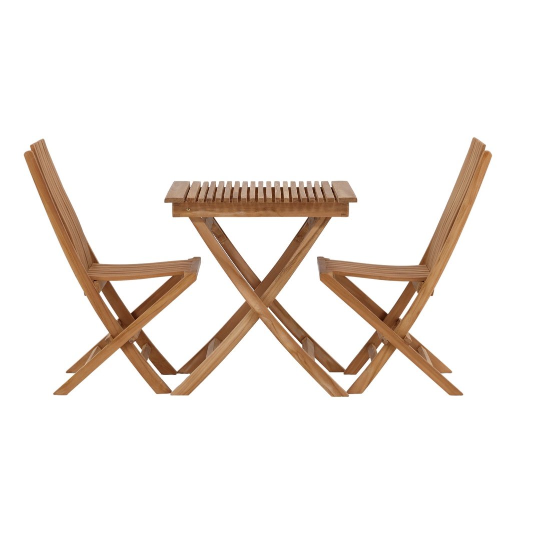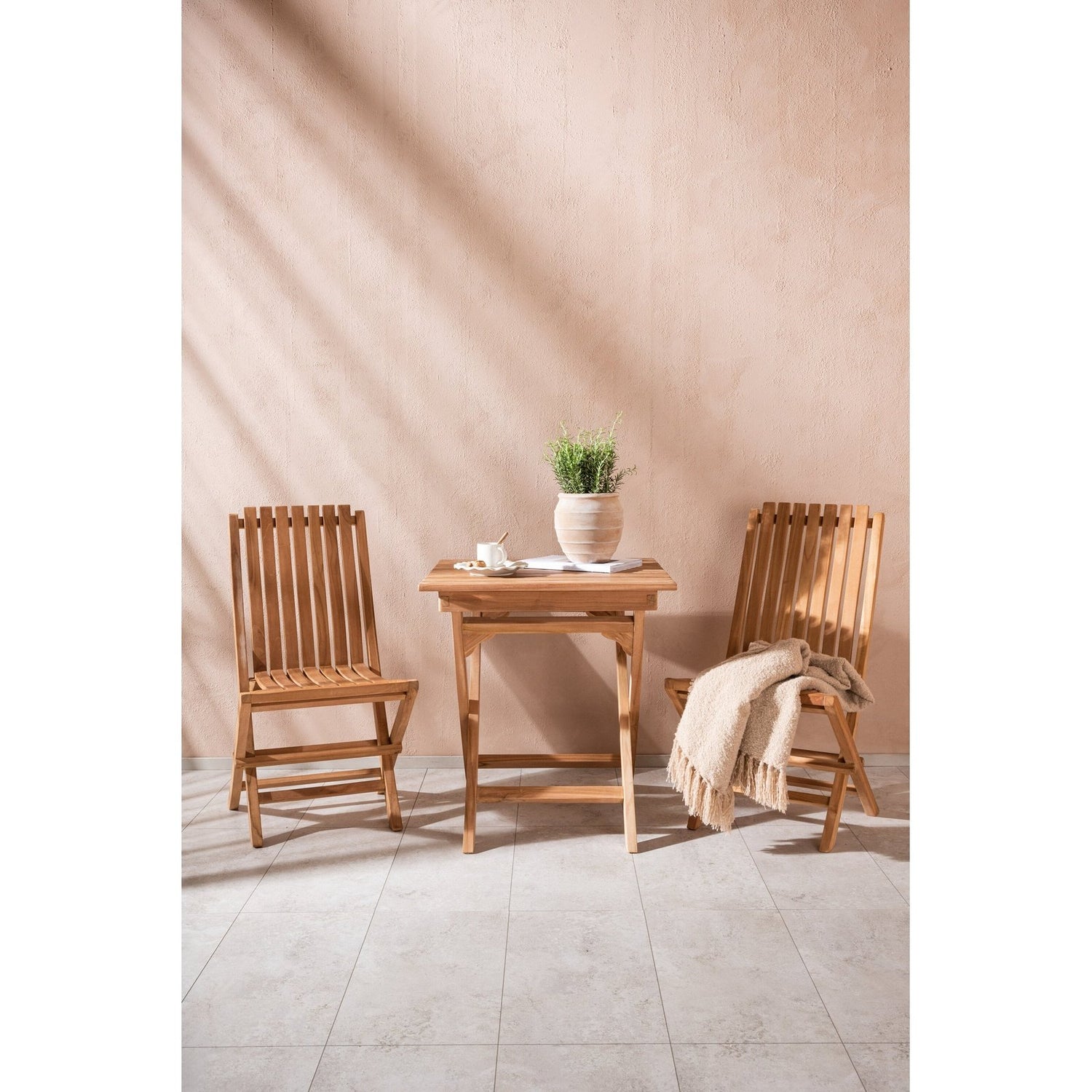 Ghana - Den perfekte kafégruppen for sommerens solfylte kaffetid! Bordet har en minimalistisk design i smakfull teak og er sammenleggbart for praktisk bevegelse og lagring. Stolene er sammenleggbare for optimal avslapning og inviterer deg til mange hyggelige frokoster og ettermiddagskaffe ute på balkongen!