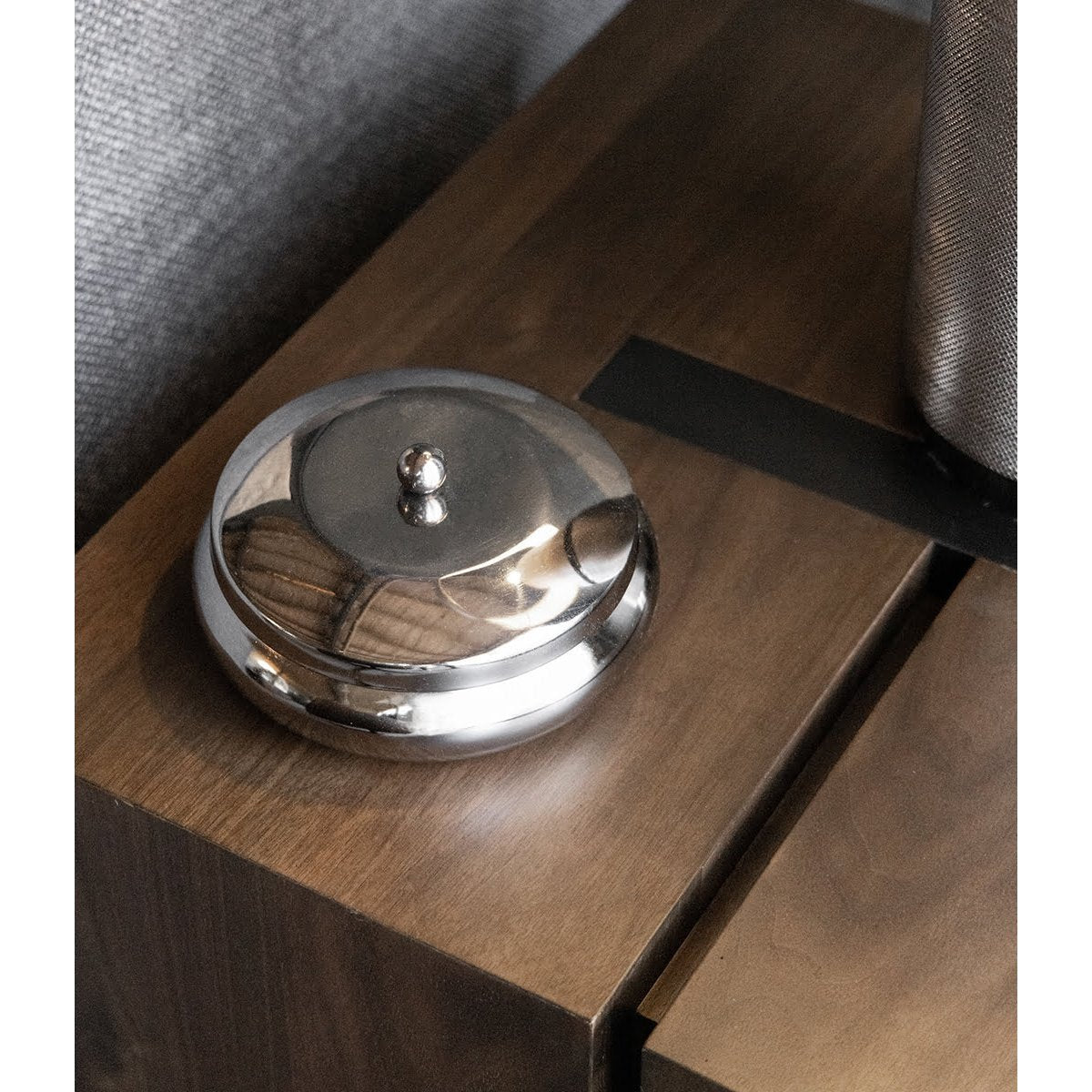 Oppdag Maddox sidebord, laget av valnøttfinér som gir et elegant preg med sin glatte overflate. Denne moderne serien har unike metall-detaljer i Antique Bronze, som skaper en sofistikert atmosfære. Den fargede og lakerte valnøttfinéren gir en holdbar overflate samtidig som den bevarer sitt naturlige utseende. Finn flere møbler i Maddox-serien, inkludert spisebord og sofabord.
