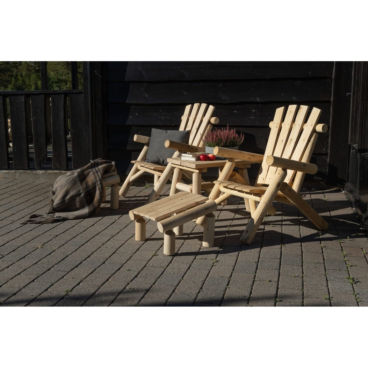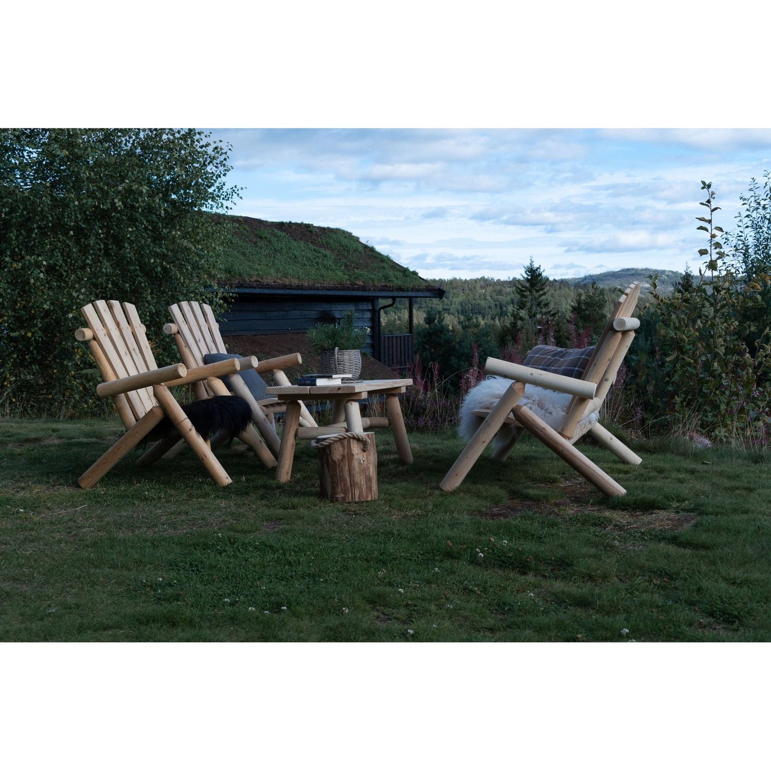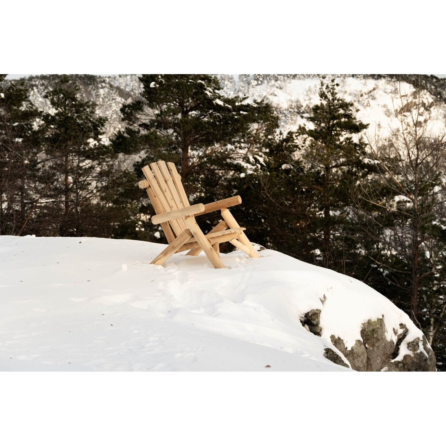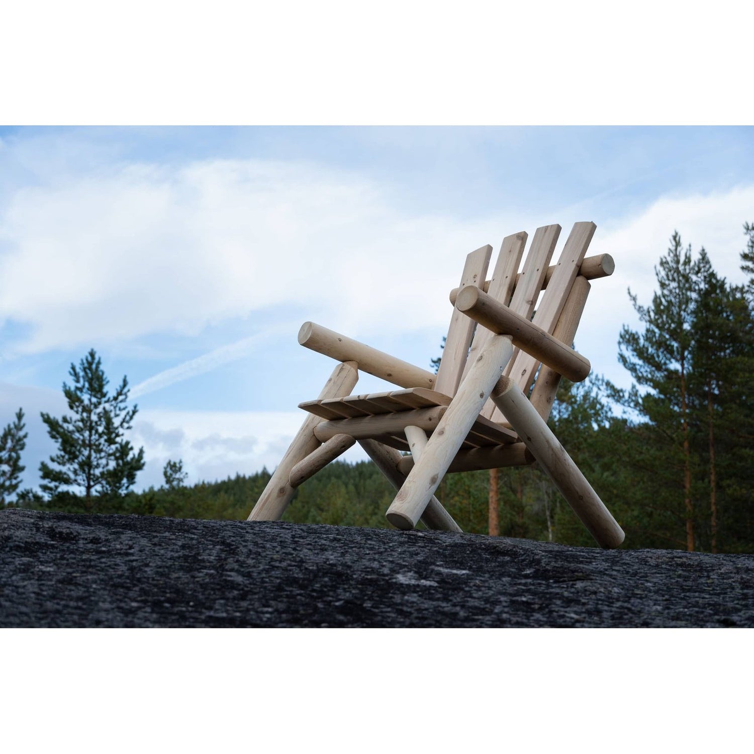 Den perfekte hyttestolen. Kombiner gjerne med et saueskinn for ekstra komfort. Laget av solid, hvitt sedertre. Over tid vil treverket få en naturlig og vakker sølvgrå patina ved oppbevaring utendørs. Dette gjør ditt møbel helt unikt! Sedertremøbler har lang holdbarhet og er tilnærmet vedlikeholdsfrie. Oljen som finnes i sedertre virker beskyttende mot insekter og slitasje, og treverket er resistent mot råte.